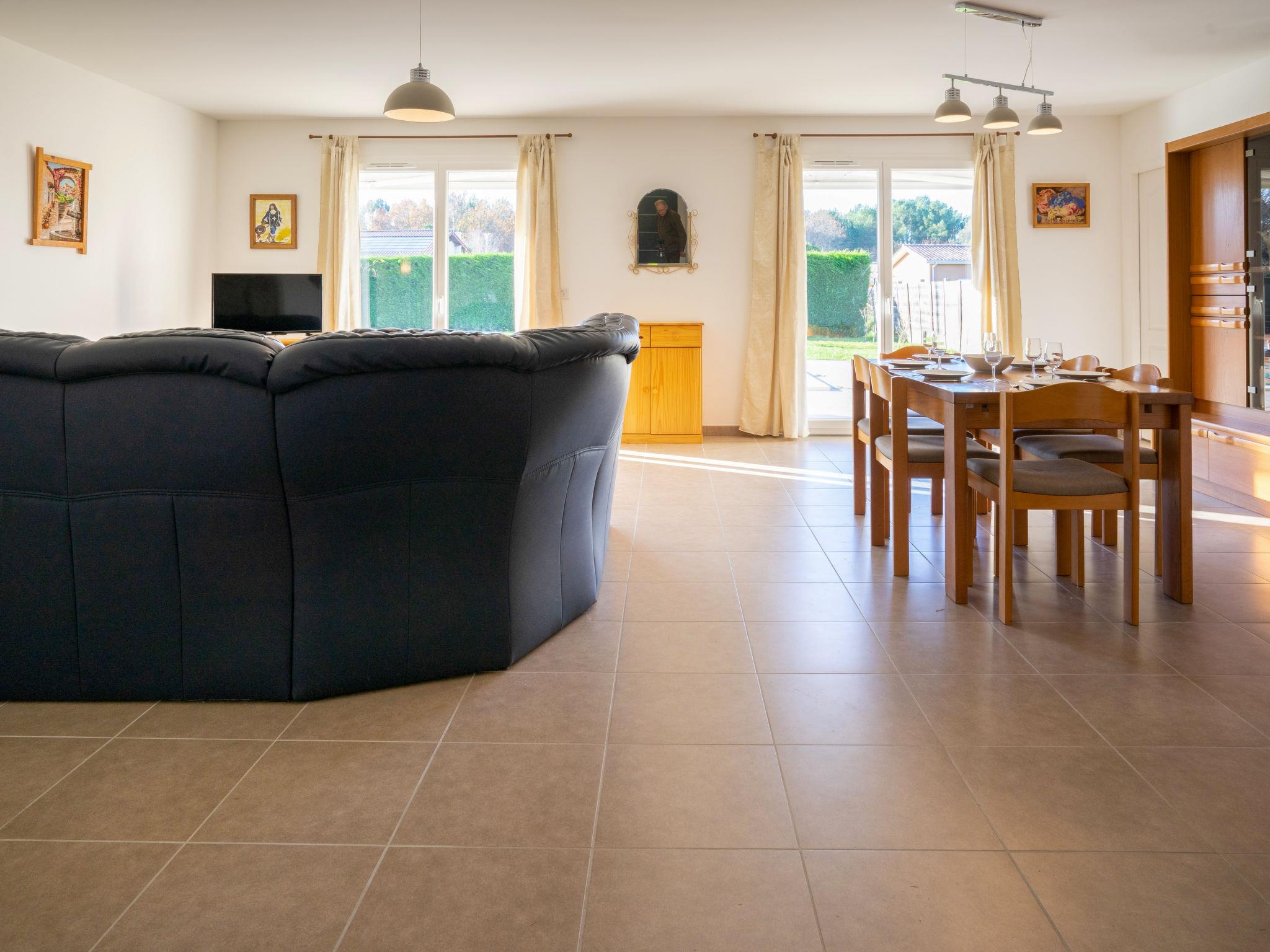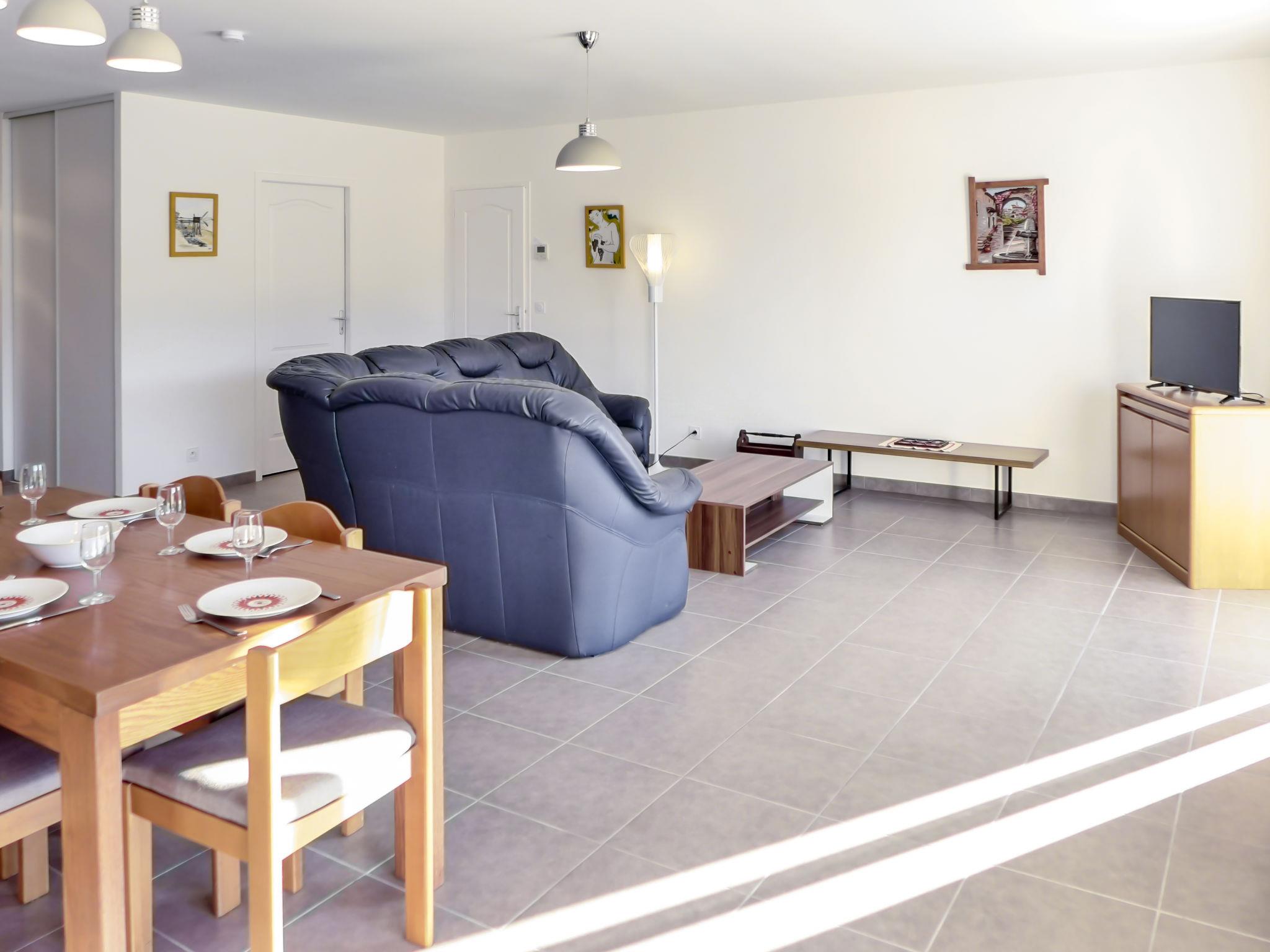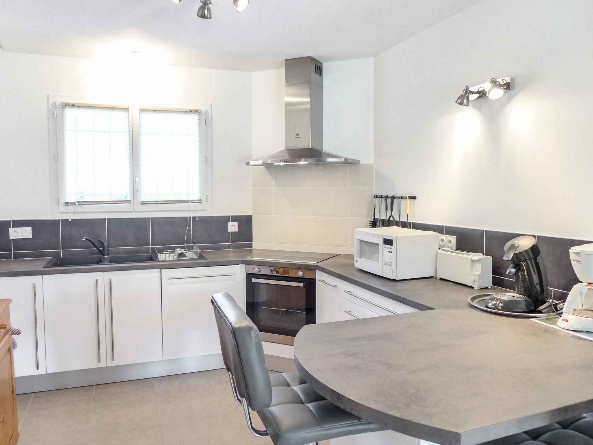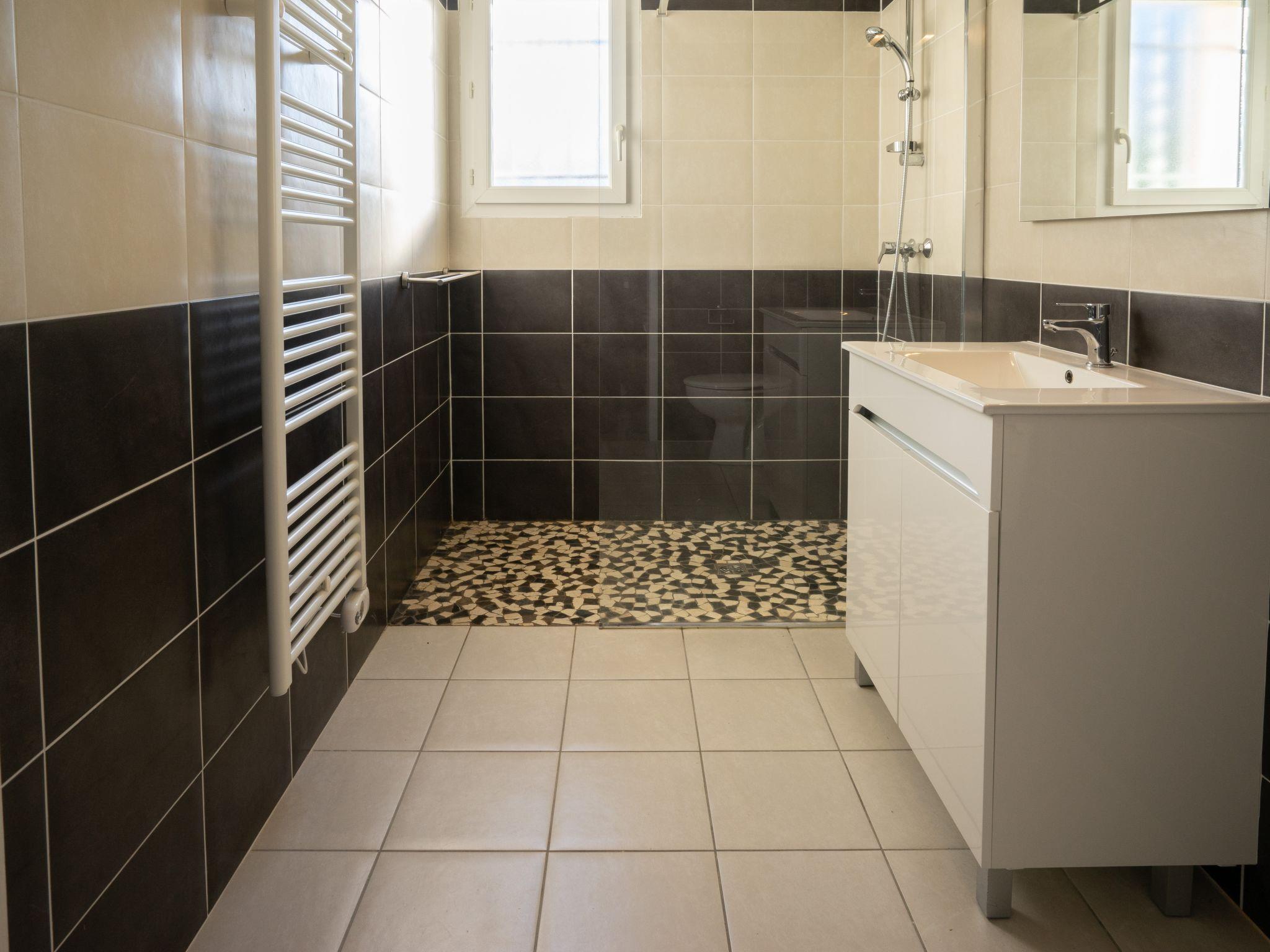 4-room house 108 m2. Bright, practical furnishings: living/dining room with TV. Exit to the terrace. 2 rooms, each room with 1 french bed (140 cm, length 190 cm). 1 room with 2 beds (90 cm, length 190 cm). Open kitchen (oven, dishwasher, 3 induction hot plates, microwave). Shower/WC, sep. WC. Electric heating, air-conditioning. Facilities: washing machine. Internet (WiFi, free). Please note: non-smoking house. Maximum 1 pet/ dog allowed. Smoke alarm.