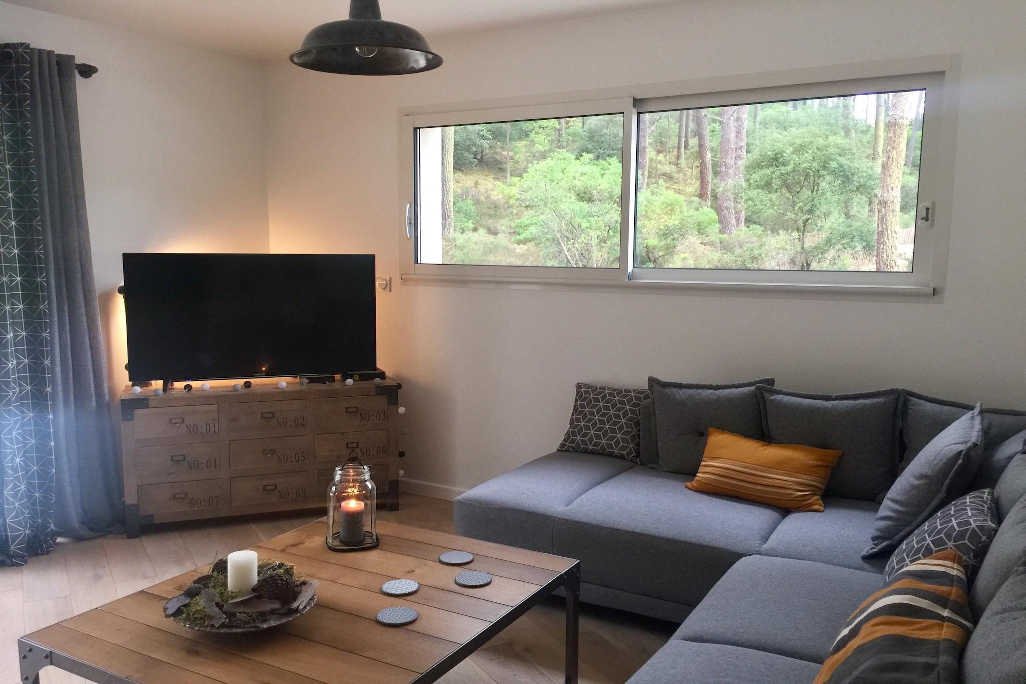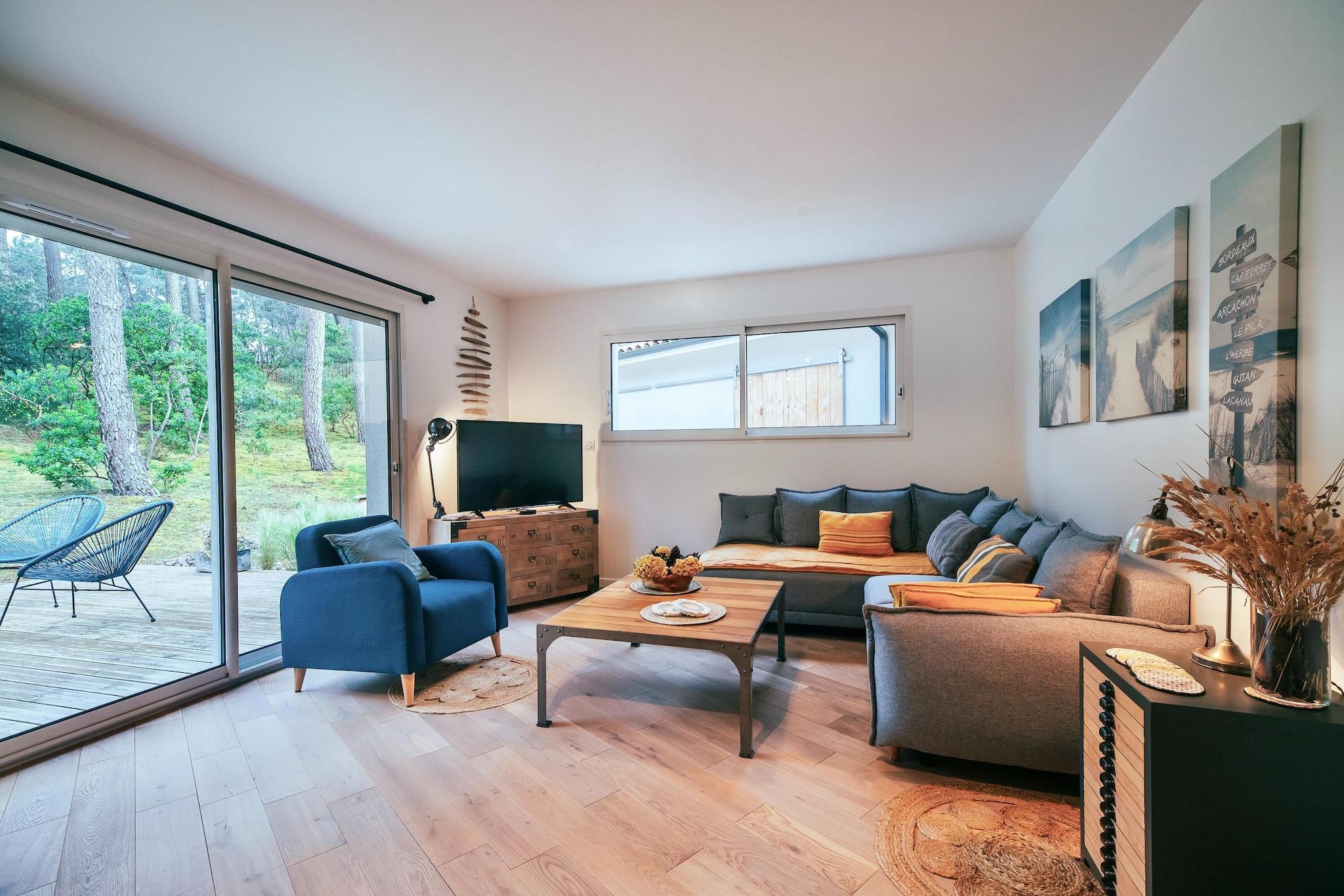 Forest Retreat mellem sø og hav Flygt til et 4-stjernet moderne fristed beliggende i hjertet af en duftende fyrreskov ved foden af klitten. Dette sydvendte 3-værelses hjem inviterer dig til at vågne op til træernes raslen og slappe af på en 60 m² stor terrasse med uforstyrret udsigt over skoven. Indvendigt skaber et lyst opholdsområde i åbent plan, elegant køkken og brusekabine den perfekte balance mellem komfort og luksus - ideel til op til 6 gæster. Uanset om du nyder espresso ved solopgang eller nyder et stille glas Médoc-vin om aftenen, er naturen altid inden for rækkevidde. Strande, Cykling & Bordeaux-vine Perfekt placeret mellem havet og søen, er du kun en 10-minutters cykeltur til Maubuissons charme ved søen eller 15 minutter til de vilde bølger i Carcans Plage. Tilbring dine dage med at padleboard, sejle eller slappe af i sandet. Cyklister og vandrere vil elske de naturskønne stier, der væver sig gennem skoven. Og for vinentusiaster er verdenskendte Médoc-vinmarker og -slotte kun en kort køretur væk, og det samme er destinationer med bucketlist som Dune du Pilat, Cap Ferret og Bordeaux. Spisning og detaljer, der betyder noget Efter en dag med eventyr kan du forkæle dig selv med lækker fisk og skaldyr eller et hyggeligt bistromåltid i Maubuisson (2 km væk). Hjemmet tilbyder alle de faciliteter, du har brug for - fra liggestole og en sikker garage til et komplet køkken og vaskemaskine. Bemærk venligst: kæledyr er ikke tilladt, hvilket sikrer en allergenfri, fredelig oplevelse for alle.