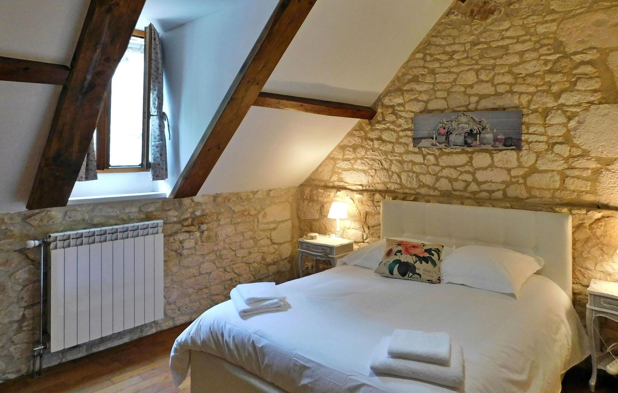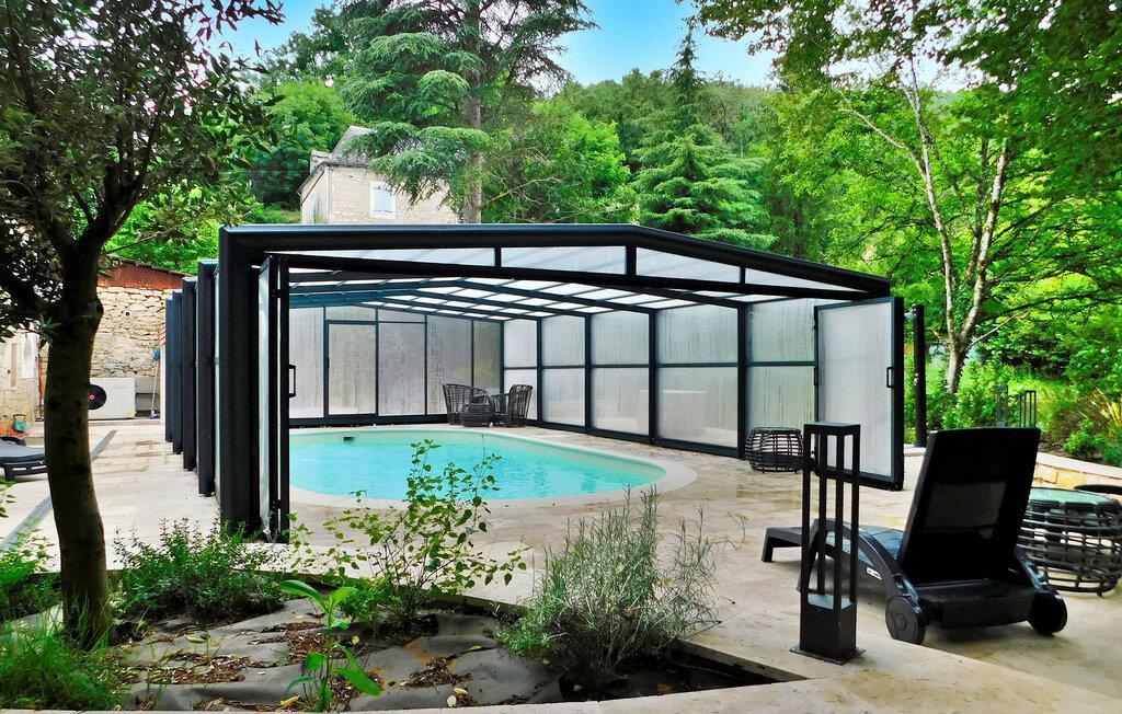 Dette rummelige feriehus, med to huse forbundet med en fælles indgang, ligger i det naturskønne landskab i Dordogne. Det første hus, omkring 120 m², har køkken, opholdsstue og soveværelser med eget bad. Det andet hus, cirka 180 m², indeholder et rummeligt køkken, opholdsstue, spiseplads og flere soveværelser med fælles badeværelser. Udenfor tilbyder ejendommen parkering udendørs spil for børn og en brolagt terrasse foran huset med rigelig siddepladser og en grill. På bagsiden er der en opvarmet swimmingpool med en stor kuppel, en brolagt terrasse med udendørsmøbler, liggestole og en udendørs solbruser. Derudover byder ejendommen på bevoksede og blomstrede områder med en behagelig udsigt til en valnøddelund. Ejendommen er beliggende på landet, men ikke afsondret, omkring 3 km fra Carlux med en sæsonbestemt udendørs restaurant og økologiske grøntsager og kød solgt af en lokal landmand.