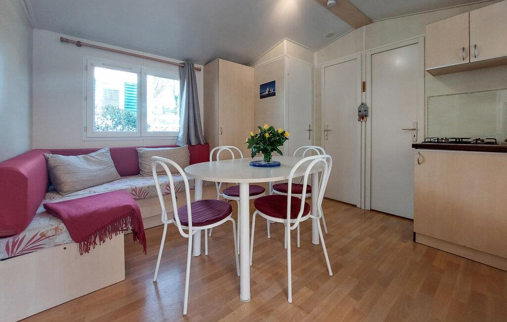 Velkommen til dette velholdte mobilhome, hvor I kan føle jer hjemme under en hyggelig, aktiv ferie med familien. Tilbered jeres yndlingsretter i det åbne køkken og nyd glade spilleaftener i den hyggelige opholdsstue.