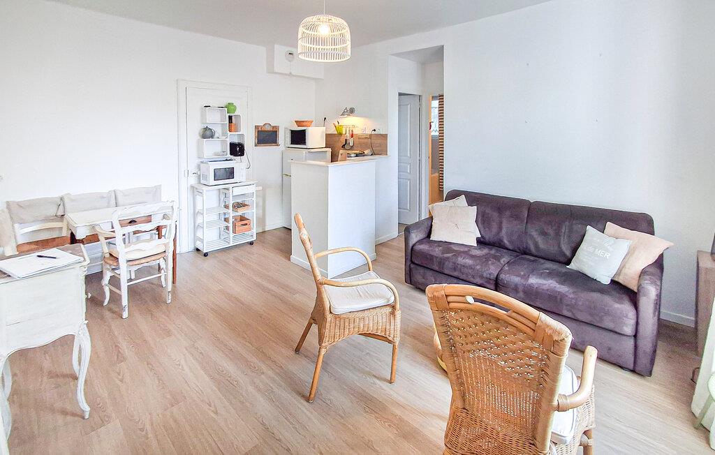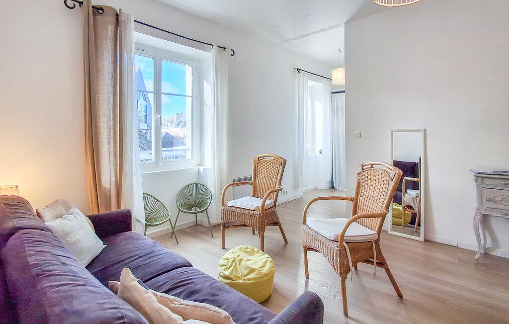 Tilbring en afslappende ferie i denne charmerende lejlighed nær stranden. Denne indbydende lejlighed byder jer velkommen med en venlig atmosfære, hvor diskrete farver og rustikke møbler skaber en harmonisk atmosfære. Slap af på sofaen med en kop kaffe, læs en god bog, eller prøv nye opskrifter i køkkenet, som I derefter kan servere med en fin fransk vin. Tag en afslappet gåtur til havet og nyd solen og de blide brændinger – ideelt til svømning og gåture langs stranden. Udforsk de gådefulde Alignments de Carnac med deres mere end 3.000 forhistoriske stenmonumenter. Og når solen går ned, inviterer den charmerende gamle bydel i Carnac med sine små caféer, gamle kirker og bretonske præg jer til en afslappet spadseretur og en lækker middag.