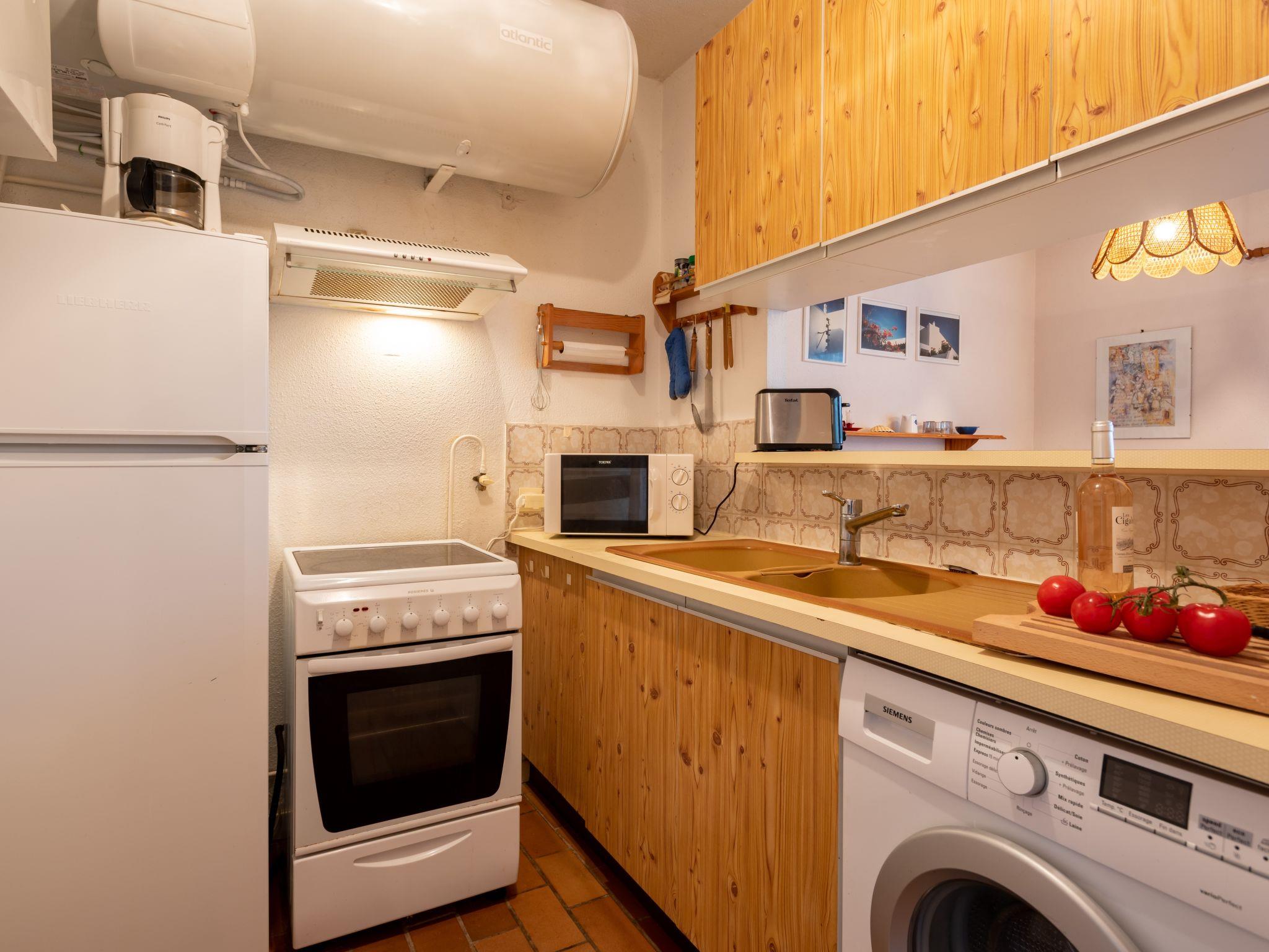 2-room apartment 48 m2, on the ground floor. Living/dining room with 1 double sofabed and TV. Exit to the terrace. 1 room with 2 beds (90 cm). Kitchenette (4 hot plates, oven, microwave, freezer). Bathroom, sep. WC. Gas heating. Terrace 10 m2. Terrace furniture, barbecue, deck chairs (2). Facilities: washing machine. Internet (WiFi, free). Parking space n 8. Please note: TV only FR. Smoke alarm. 560340007960D