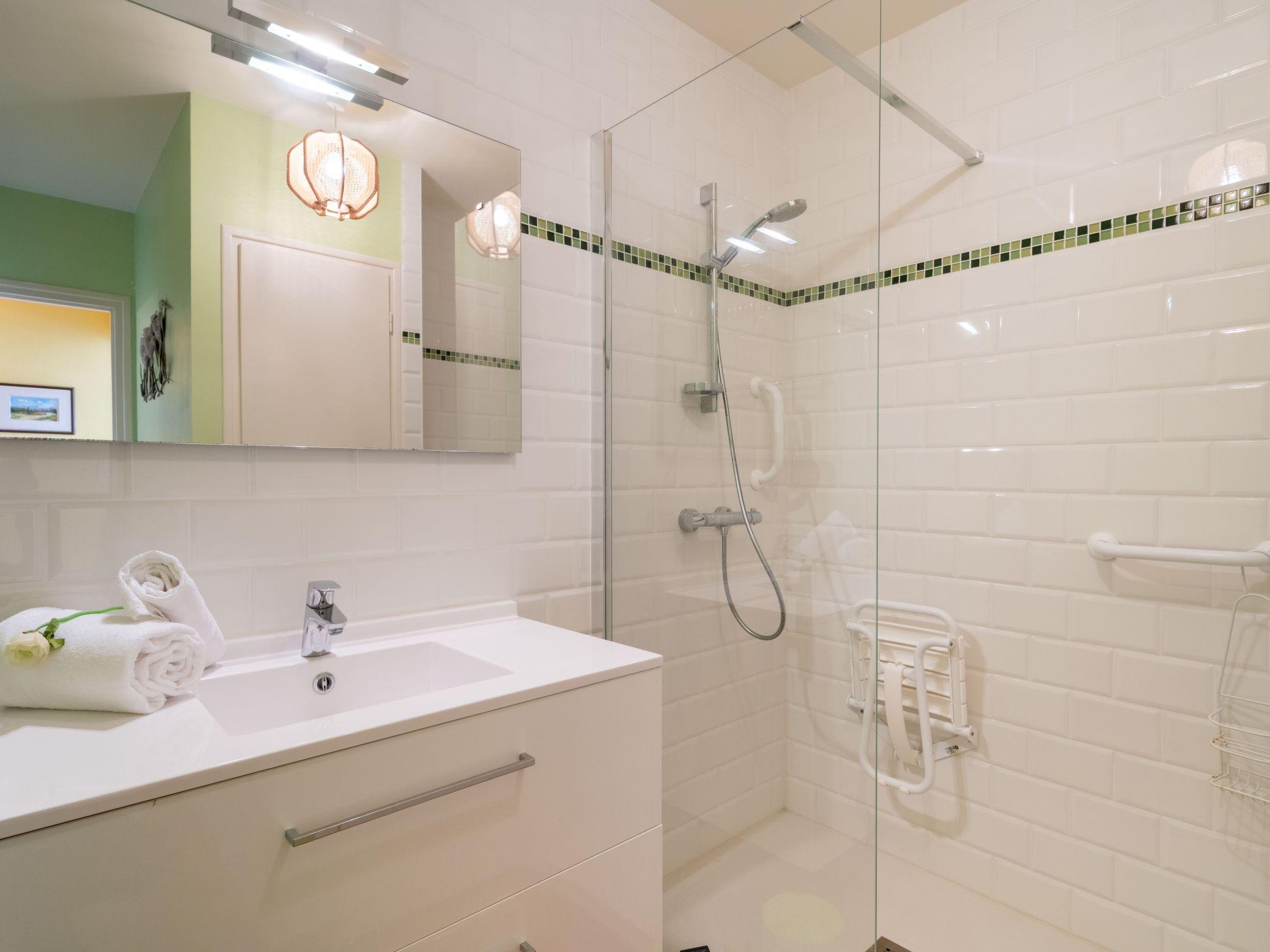 2-room apartment 45 m2, on the ground floor. Object suitable for 2 adults + 3 children. Practical and beautiful furnishings: living/dining room with 1 double sofabed (1 x 140 cm, length 190 cm), TV (flat screen), radio. Exit to the terrace. 1 room with 3 beds (90 cm, length 190 cm). Kitchen (oven, 4 gas rings, toaster, kettle, microwave, freezer, electric coffee machine). Bathroom, sep. WC. Gas heating. Terrace 10 m2, garden 30 m2. Terrace furniture, deck chairs (2). View of the garden. Facilities: washing machine, iron. Internet (WiFi, extra). Parking. Offer by a private individual according to Art. 155, IV of CGI. 56034000806AE