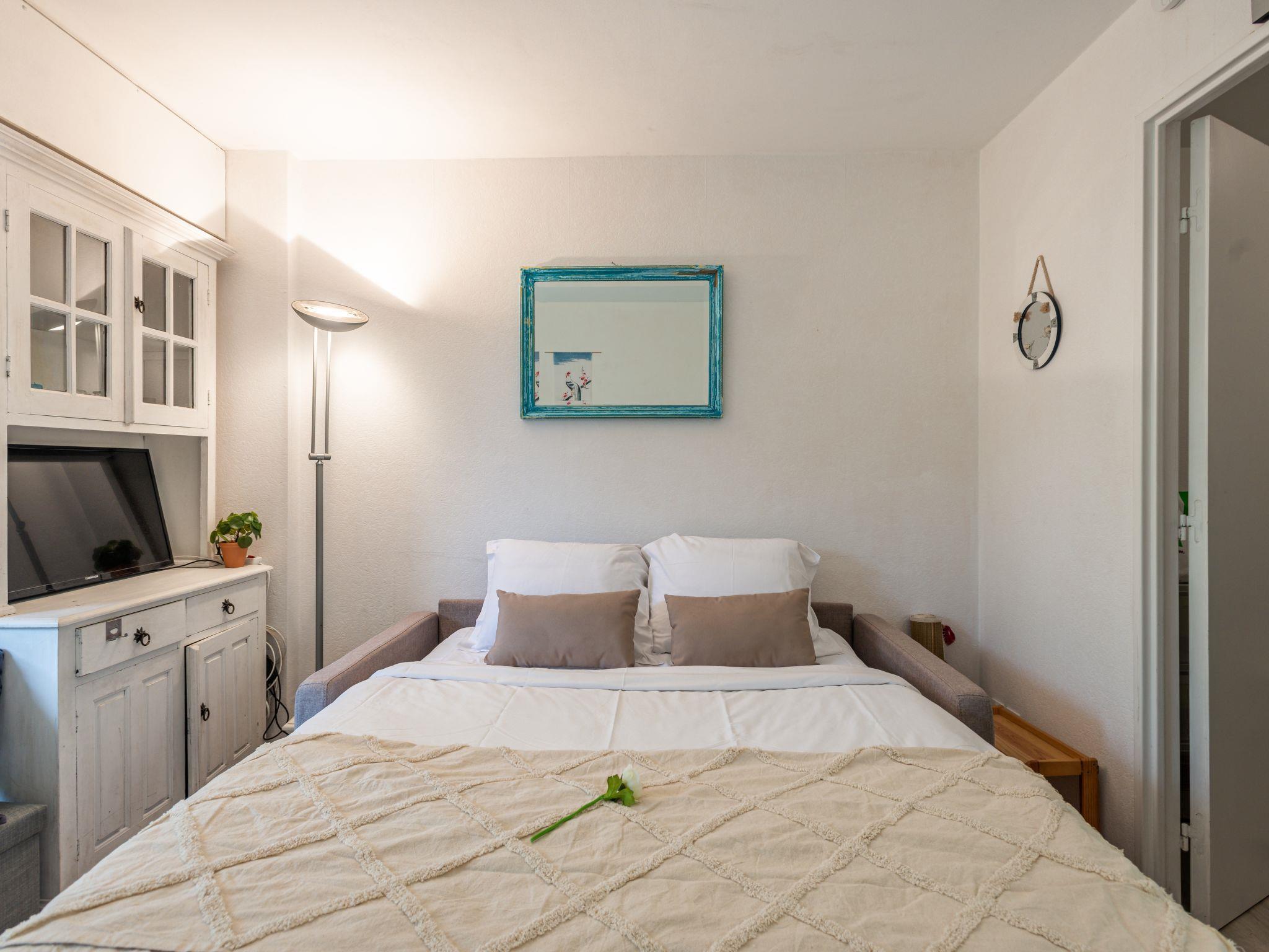1-room studio 20 m2, on the ground floor. Comfortable furnishings: living/sleeping room with 1 double sofabed (1 x 140 cm, length 180 cm), TV (flat screen). Exit to the garden. Sleeping alcove with 1 bed (90 cm, length 190 cm). Kitchenette (mini-oven, oven, dishwasher, 2 induction hot plates, toaster, kettle, microwave, electric coffee machine). Bathroom, sep. WC. Electric heating. Small terrace 3 m2, south facing position, small garden 35 m2, south facing position. Terrace furniture. View of the garden. Facilities: Internet (WiFi, extra). Please note: maximum 1 pet/ dog allowed. Smoke alarm. Offer by a private individual according to Art. 155, IV of CGI. 5603400081921