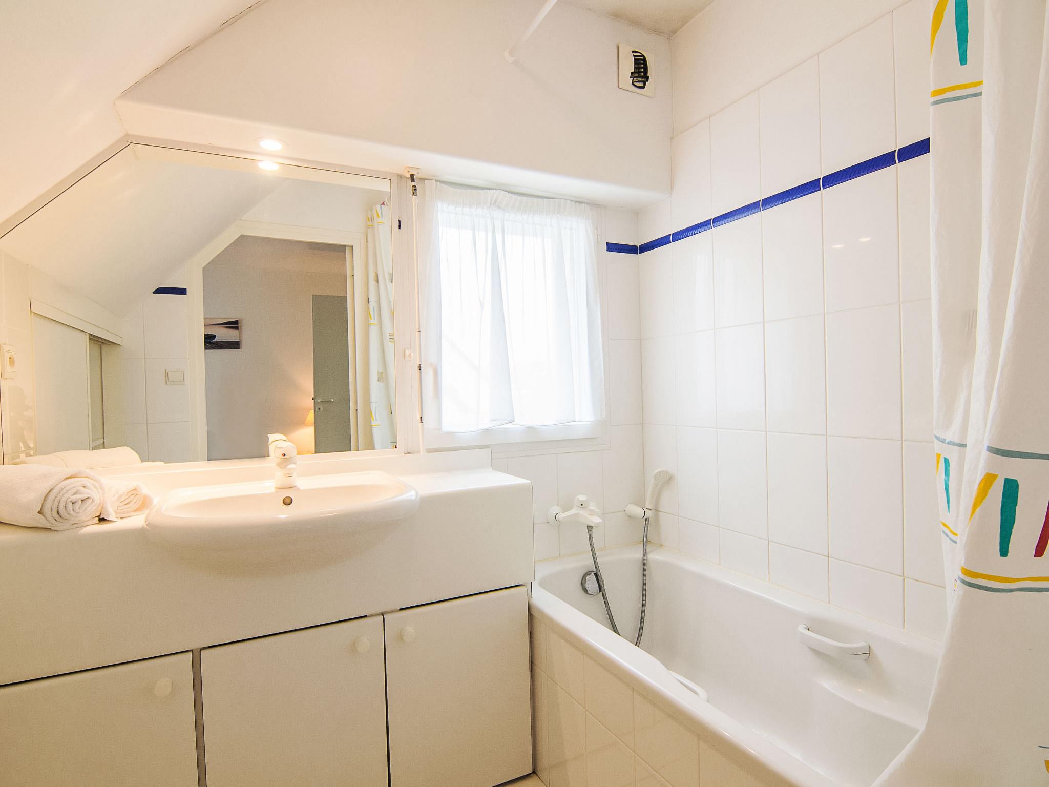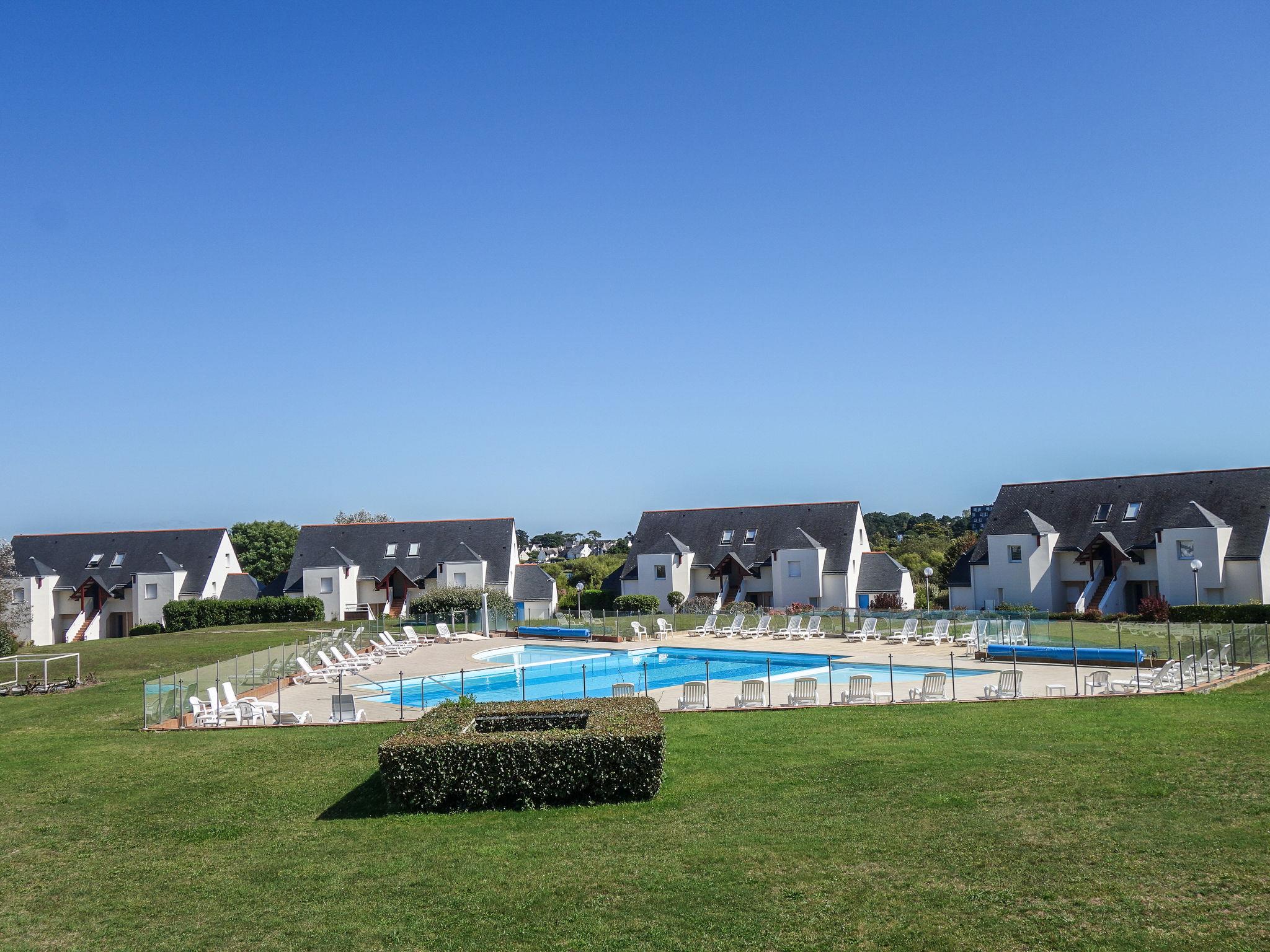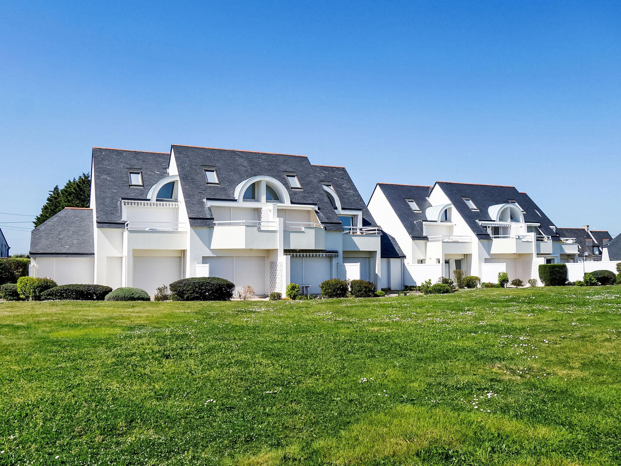 Carnac Plage: Resort "Domaine des Tadornes", 2 storeys. 4 houses in the residence. In the resort 1.2 km from the centre of Carnac Plage, 1 km from the sea, 1 km from the beach. For shared use: swimming pool fenced (seasonal availability: 17.Jun. - 12.Sep.). Parking space n 80. Supermarket 600 m, shopping centre 1.2 km, bakery 800 m, sandy beach "Plage de Saint Colomban" 1.5 km, thermal baths "Thalassothérapie de Carnac" 1.2 km. Marina 5 km, golf course (18 hole) 13 km, surf school 8 km, sailing school 1 km. Nearby attractions: Les alignements de Carnac 1.2 km, La Trinité sur Mer 6 km, Quiberon et la presqu'ile 15 km, Belle ile en Mer, Vannes 35 km, Lorient 65 km.