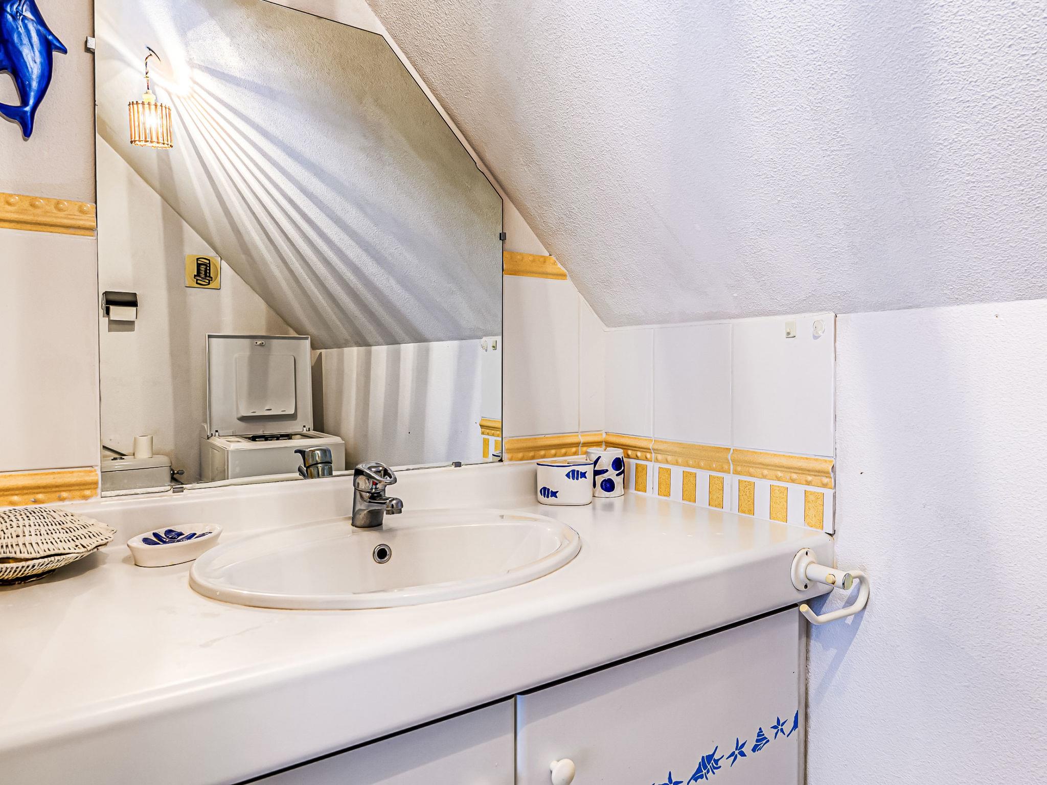Apartment block "Clair de lune", 2 storeys. In the resort 500 m from the centre of Carnac Plage, 200 m from the sea, 200 m from the beach. Shop 1 km, supermarket 1.6 km, restaurant 350 m, bakery 1 km, café 1 km, 10 minute walk to the centre, bus stop 2 km, sandy beach "Plage de Légenèse" 250 m, thermal baths "Thalassothérapie de Carnac" 1 km. Golf course (18 hole) 13 km, sailing school 1 km, tennis 250 m. Nearby attractions: Les Alignements de Carnac 3 km, La Trinité sur Mer 4 km, Presqu'ile de Quiberon 15 km, Auray et le vieux port de St Goustan 12 km, Vannes 35 km, Lorient 60 km. Hiking paths: Le Golfe du Morbihan 30 km.