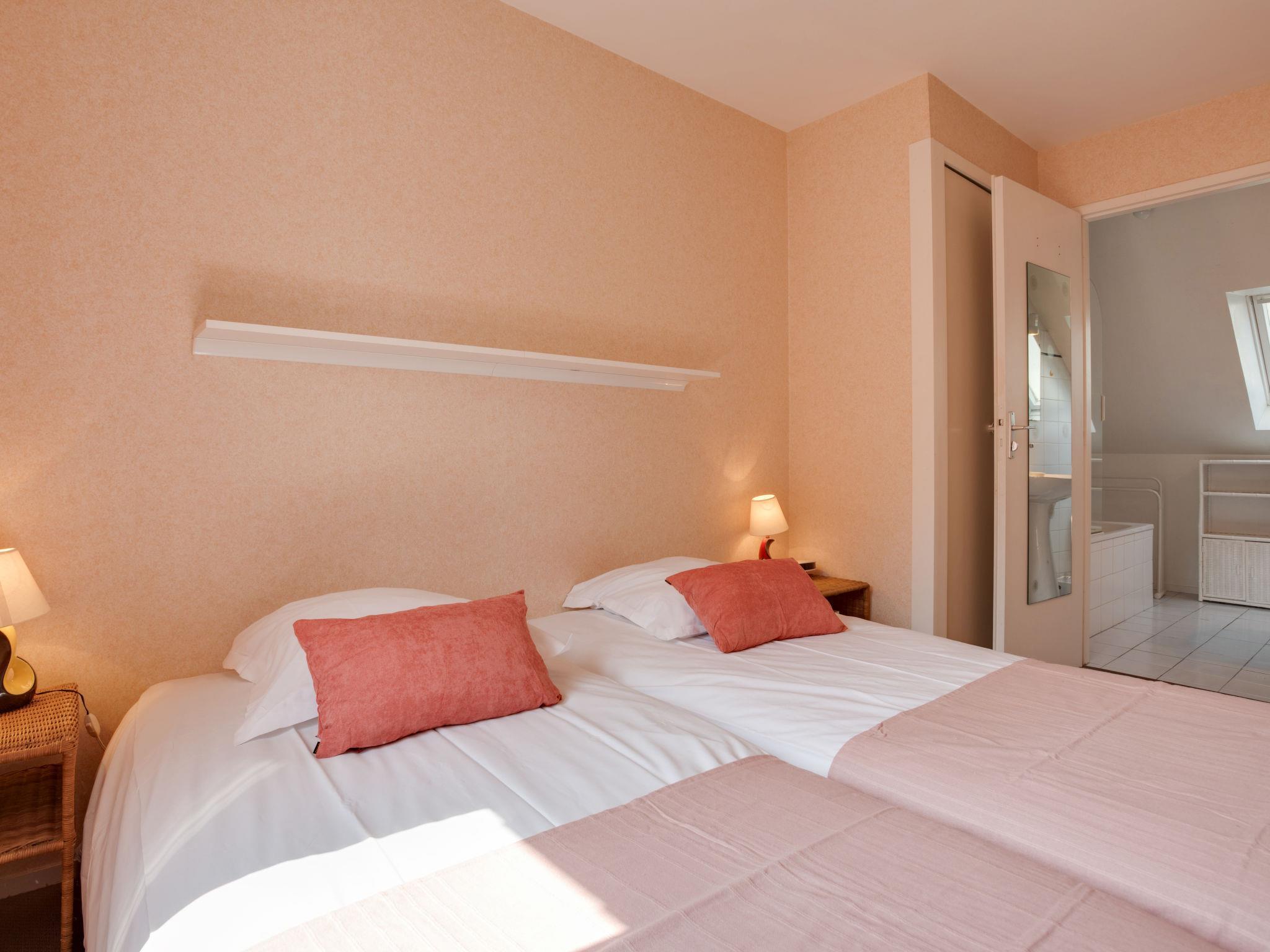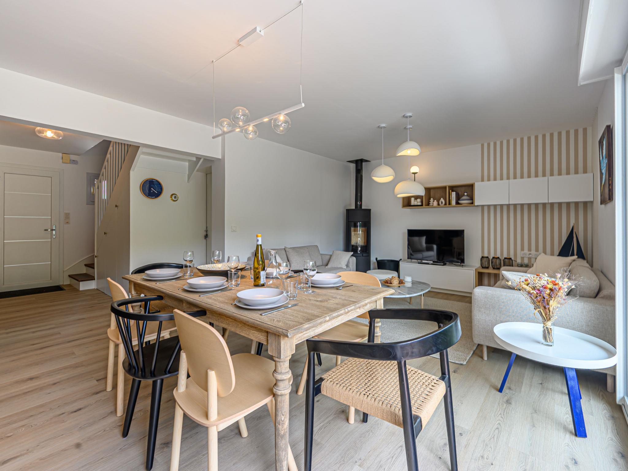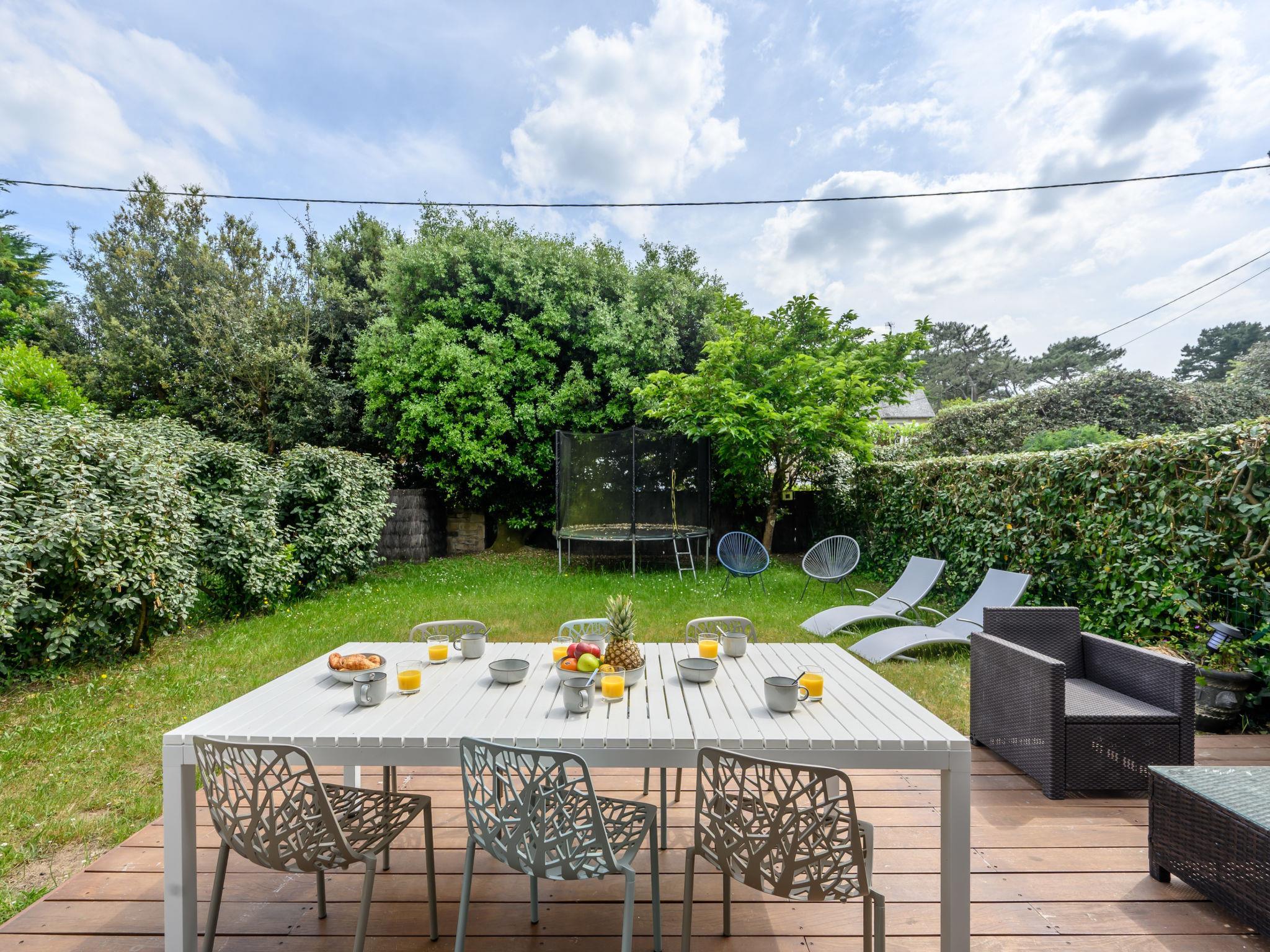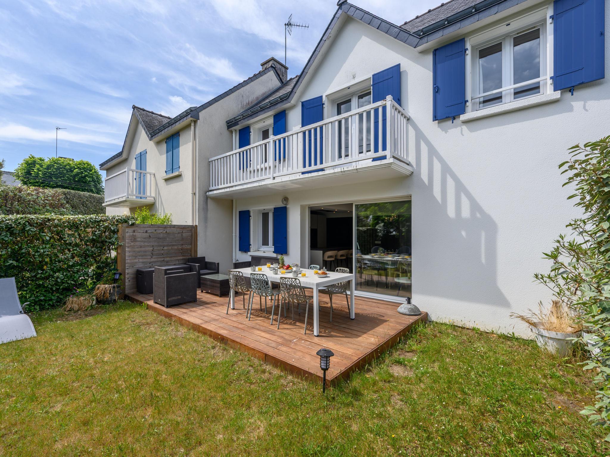 Terraced house "Les Marines". In the resort 900 m from the centre of Carnac Plage, 130 m from the sea, 130 m from the beach. Parking at the house, single garage. Shop, grocery 900 m, supermarket 400 m, bakery 600 m, 5 minute walk to the centre, sandy beach "Grande Plage" 130 m, diving center 4 km, thermal baths "Thalassothérapie de Carnac" 1.3 km. Marina 4 km, golf course (18 hole) 15 km, surf school 6 km, sailing school 900 m, tennis 600 m. Nearby attractions: Les Alignements de Carnac 3 km, La Trinité sur Mer 4 km, Golfe du Morbihan 8 km, Quiberon 15 km, Vannes 35 km, Lorient 55 km.