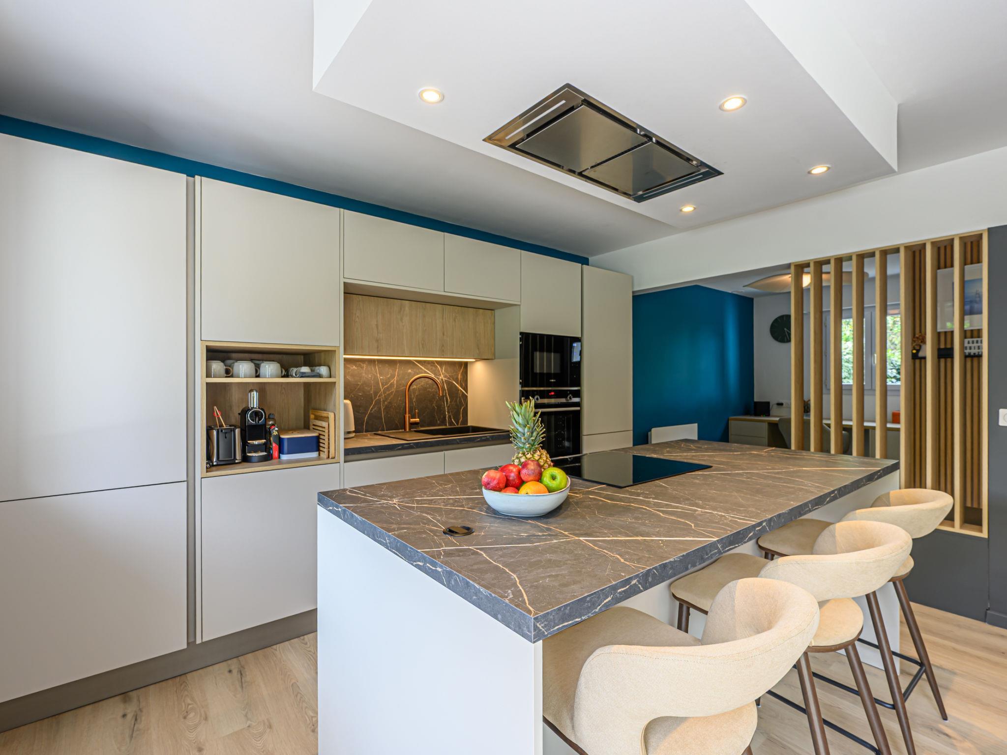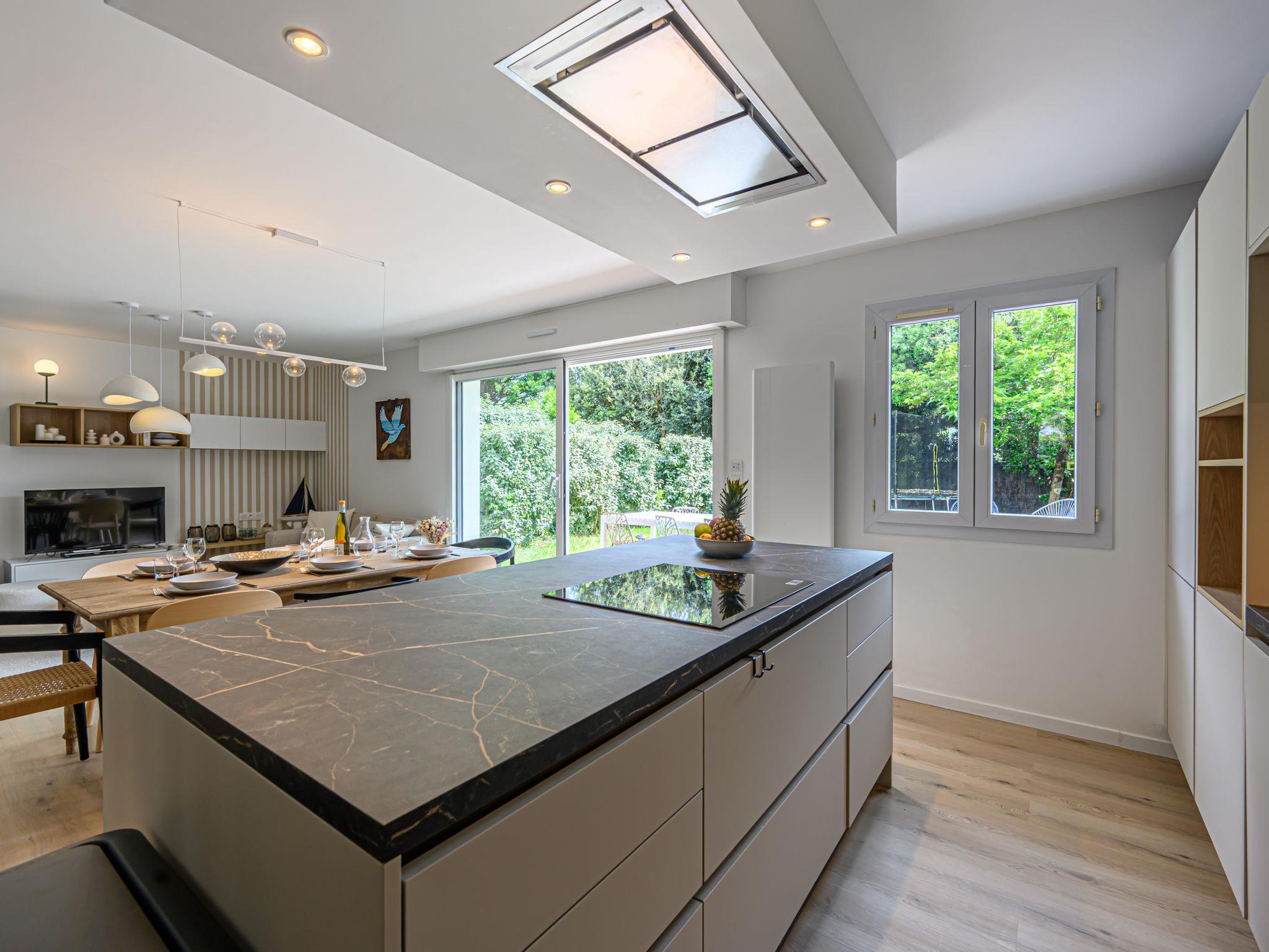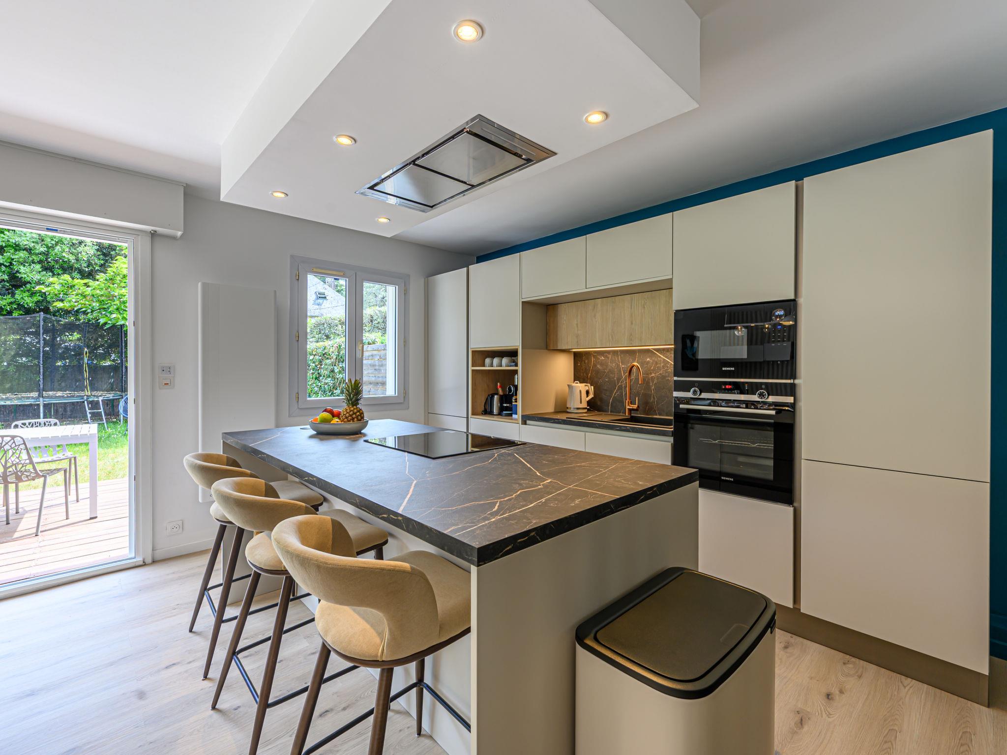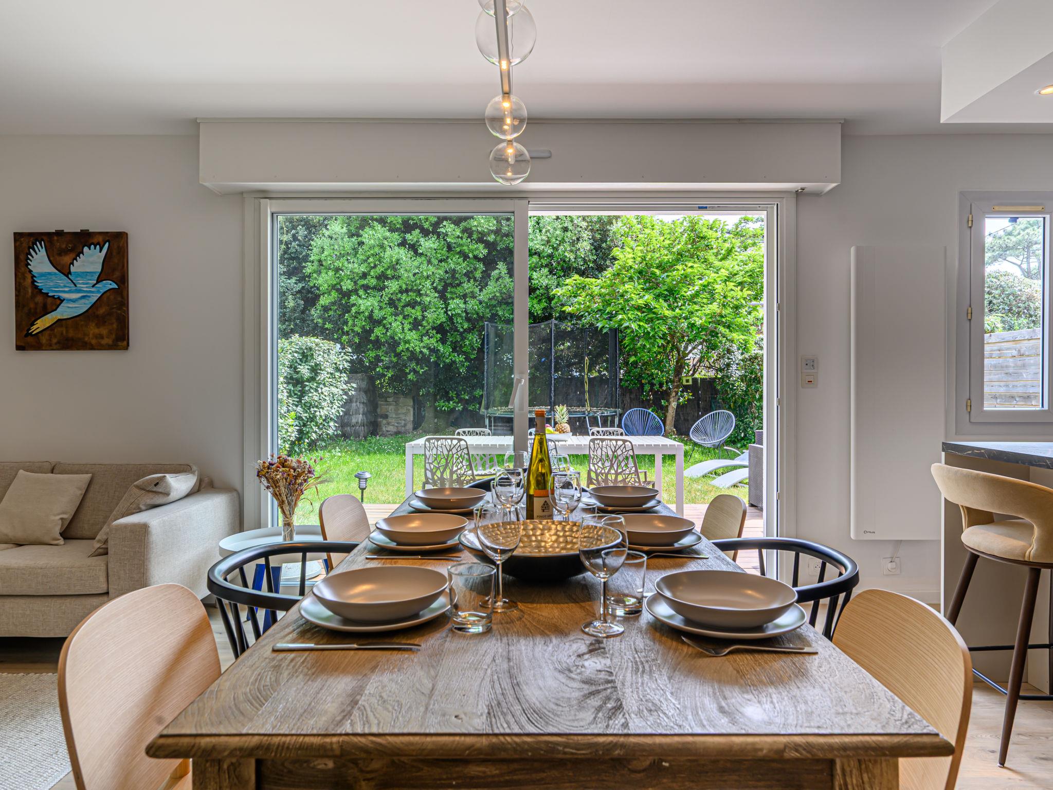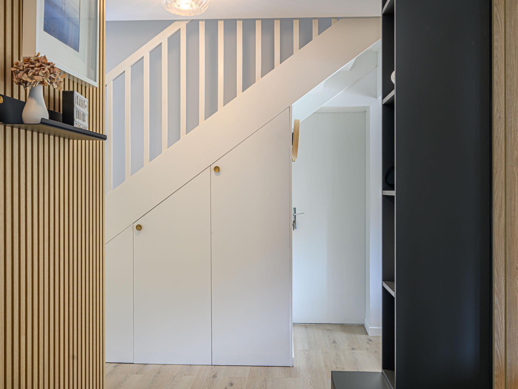 Terraced house "Les Marines". In the resort 900 m from the centre of Carnac Plage, 130 m from the sea, 130 m from the beach. Parking at the house, single garage. Shop, grocery 900 m, supermarket 400 m, bakery 600 m, 5 minute walk to the centre, sandy beach "Grande Plage" 130 m, diving center 4 km, thermal baths "Thalassothérapie de Carnac" 1.3 km. Marina 4 km, golf course (18 hole) 15 km, surf school 6 km, sailing school 900 m, tennis 600 m. Nearby attractions: Les Alignements de Carnac 3 km, La Trinité sur Mer 4 km, Golfe du Morbihan 8 km, Quiberon 15 km, Vannes 35 km, Lorient 55 km.