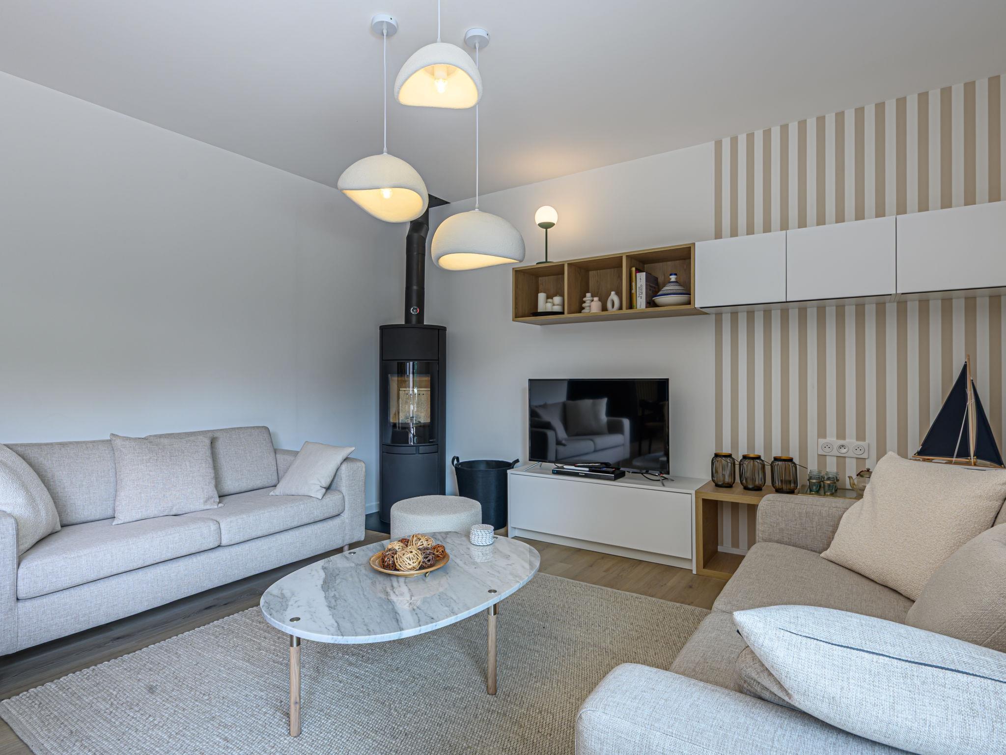 4-room terraced house 90 m2. Beautiful furnishings: living/dining room with TV. Exit to the garden. Kitchen (oven, dishwasher, 3 induction hot plates, microwave, freezer, electric coffee machine). Sep. WC. Upper floor: 1 room with 1 bed (160 cm, length 200 cm), bathroom. 1 room with 1 bed (90 cm, length 190 cm), 1 x 2 bunk beds (90 cm, length 190 cm). 1 room with 2 beds (80 cm, length 200 cm). Shower/WC. Electric heating. Terrace 10 m2. Terrace furniture. Facilities: washing machine, dryer, children's high chair. Internet (WiFi, free). Parking. Please note: suitable for families. Smoke alarm. 560340007245E