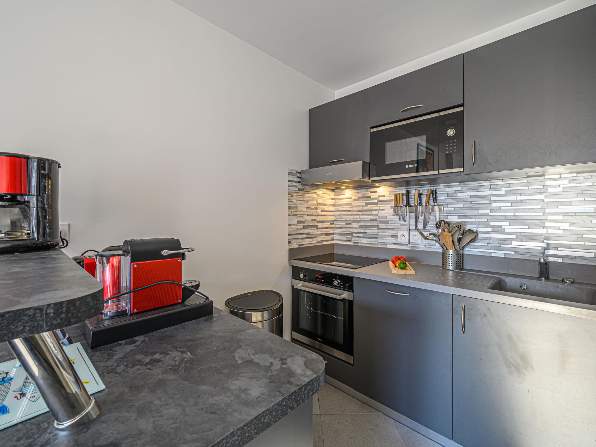 2-room apartment 42 m2, on the ground floor. Comfortable and modern furnishings: living/dining room with 1 double sofabed (1 x 140 cm, length 190 cm), TV (flat screen). Exit to the terrace. 1 room with 1 french bed (1 x 160 cm, length 200 cm), TV (flat screen), CD-player. Kitchen (oven, dishwasher, 4 induction hot plates, toaster, kettle, microwave, electric coffee machine, Capsules for coffee machine (NESPRESSO) extra). Shower/WC. Air-conditioning. Terrace 10 m2, west facing position, garden 35 m2. Terrace furniture. Facilities: washing machine, dryer, hair dryer. Internet (WiFi, free). Parking space n 11. Please note: smoke alarm. Offer by a private individual according to Art. 155, IV of CGI. 5603400014713