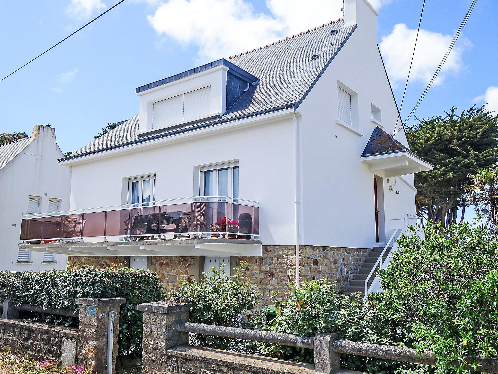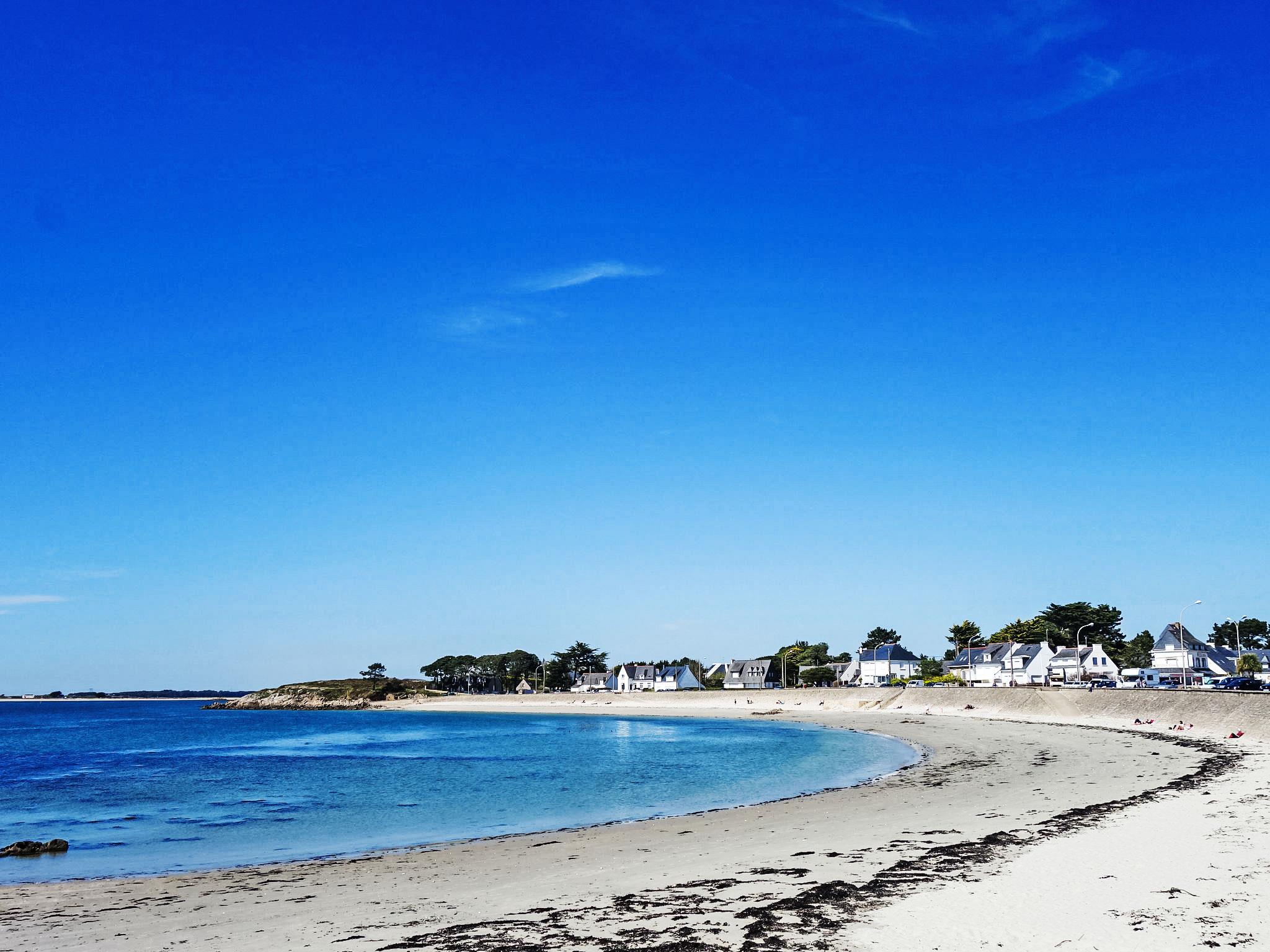 2-family house "Mer et Soleil". In the resort, 2.5 km from the centre, 70 m from the sea. Private: garden (fenced), parking on the premises. Shop 2.5 km, restaurant 2.5 km, railway station "Auray" 18 km. Golf course (18 hole) 15 km, sailing school 1.5 km. Nearby attractions: Alignements de Carnac 4 km, Vannes 34 km, La trinité sur Mer 7 km, presqu'île de Quiberon 15 km.