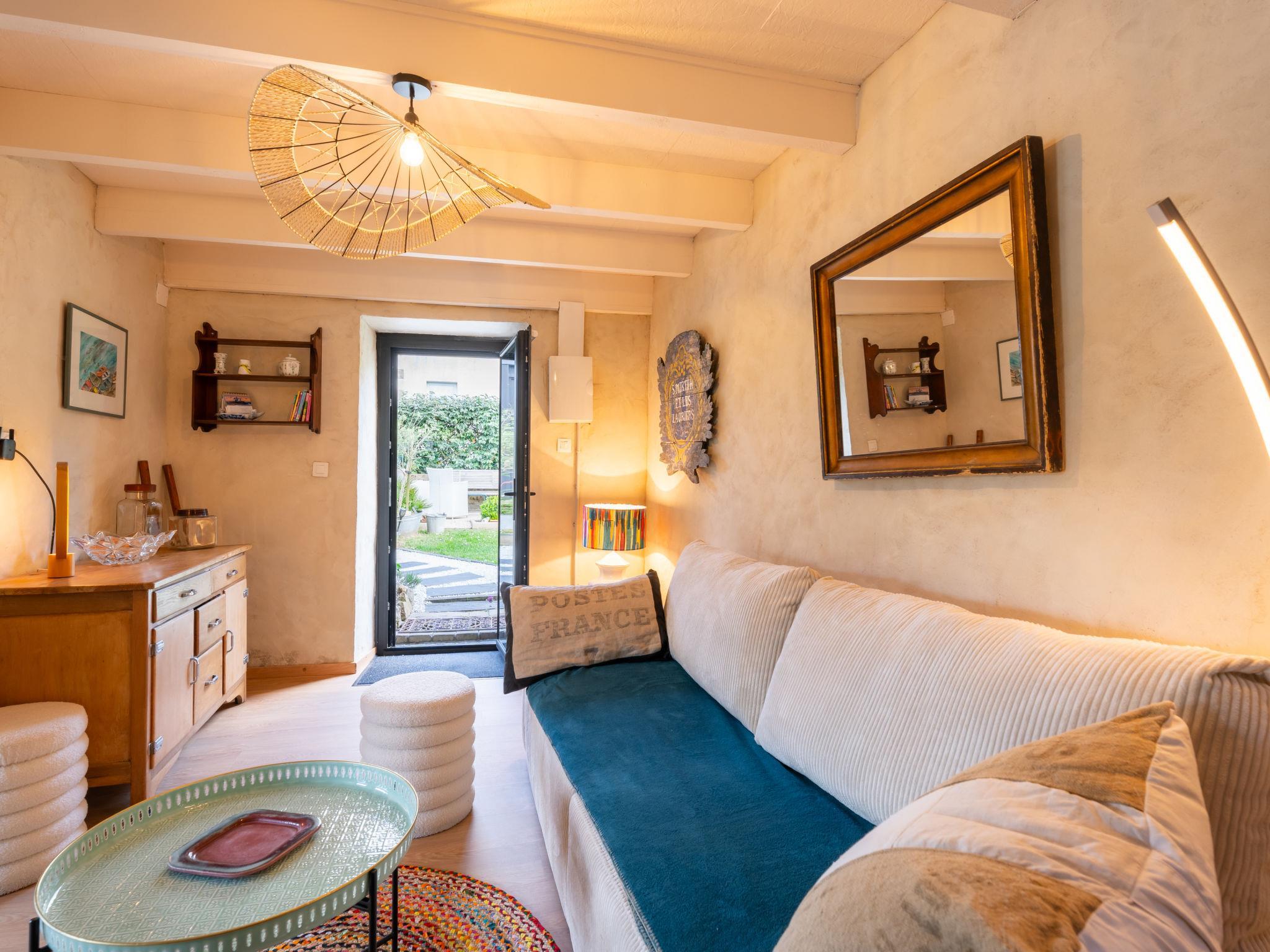 2-room house 45 m2 on 2 levels. Renovated in 2025, comfortable furnishings: living/dining room with TV (flat screen). Exit to the garden. Kitchen (oven, dishwasher, 2 ceramic glass hob hotplates, toaster, kettle, microwave, electric coffee machine). Shower/WC. Electric heating. Upper floor: (steep stair), 1 room with 2 beds (90 cm, length 190 cm), 1 sofabed (90 cm, length 190 cm). Terrace furniture. Facilities: hair dryer. Internet (WiFi, free). Parking. Please note: smoke alarm. Offer by a private individual according to Art. 155, IV of CGI. 560340006722F