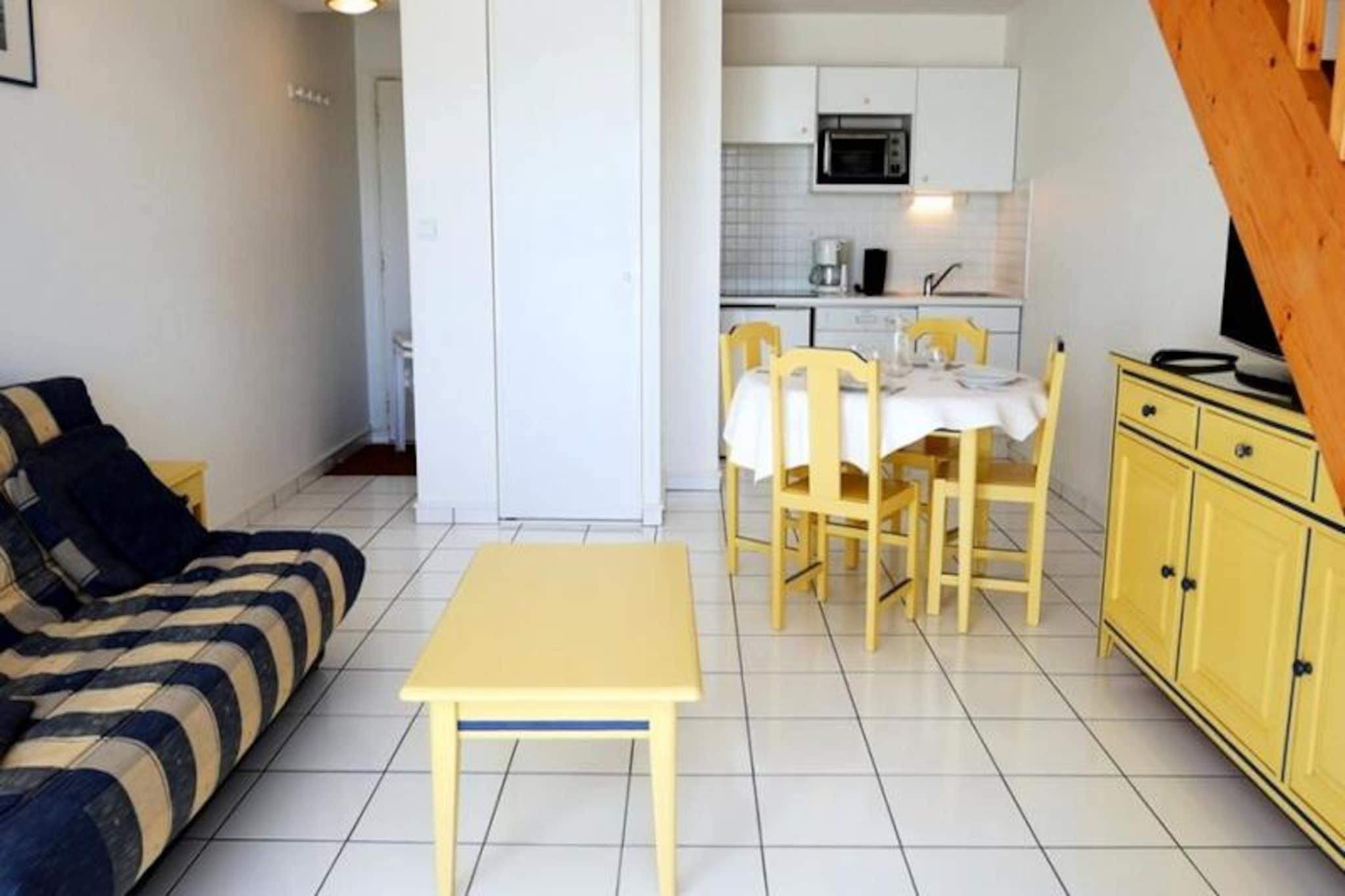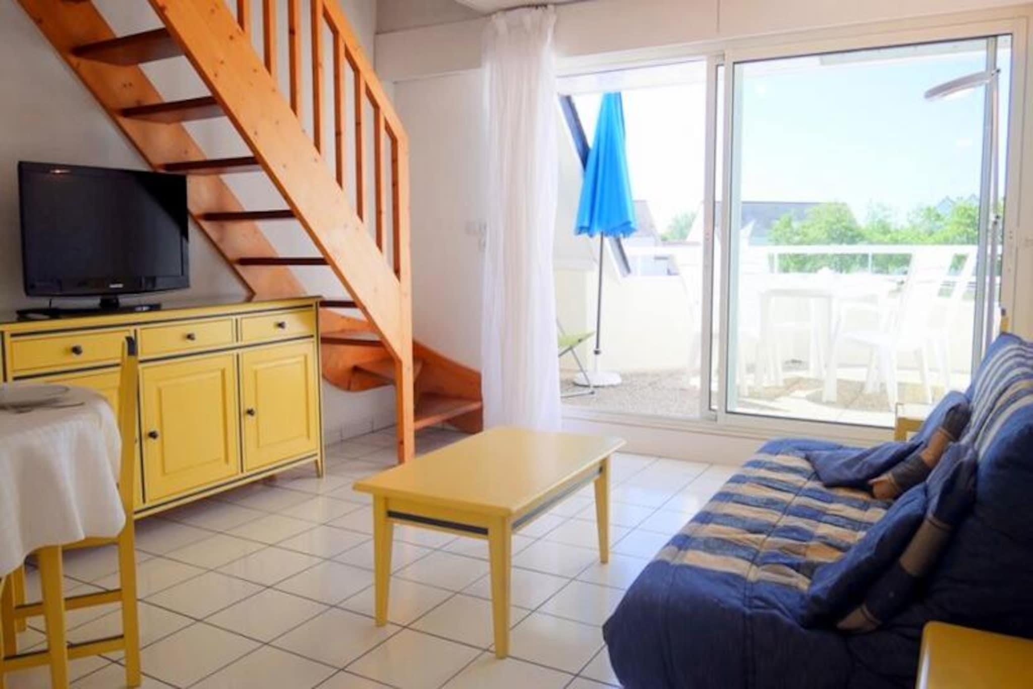 This spacious 3-room duplex apartment comfortably accommodates up to 6 guests. It includes two bedrooms: one with a double bed and the other with two single beds. The living room features a dining area, a lounge area with a TV, and a convertible sofa bed for two additional guests. The apartment is pet-friendly, allowing one animal for an extra fee. Guests can enjoy a private south-facing balcony with garden furniture, overlooking the residence’s peaceful garden and heated swimming pool, which is available from mid-June to mid-September. Located just 1 km from Légenèse Beach and the town of Carnac, this apartment offers easy access to local attractions, including the renowned Thalassotherapy center. Guests can explore the beach, visit the town’s vibrant markets, and enjoy a variety of nearby cafes offering local delicacies. Carnac is also famous for its prehistoric megaliths, providing a fascinating cultural experience for visitors. The apartment is equipped with a fully functional kitchen, including a 4-burner hob, mini-oven, microwave, refrigerator, and dishwasher, allowing guests to prepare meals with ease. It also includes a bathroom with a washing machine and a separate WC. The property features a private garage for added convenience, and optional services such as end-of-stay cleaning and linen rental are available for a more comfortable stay. Heating and energy costs are included, with additional fees for consumption during certain periods.