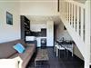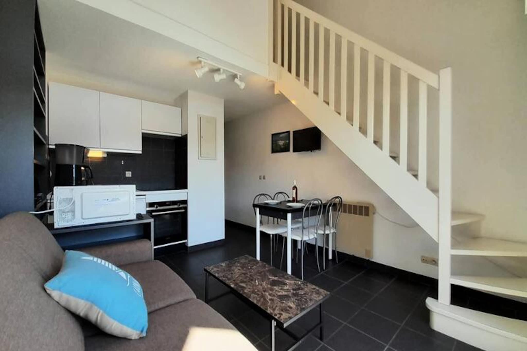 Denne charmerende duplex-lejlighed på 40 m² rummer komfortabelt 4 personer, og har to soveværelser - et med enkeltkøjesenge og et andet med to enkeltsenge. I stuen er der en sovesofa, som er ideel til yderligere gæster. Lejligheden er kæledyrsvenlig og tillader et dyr mod et lille tillæg. En sydvestvendt altan med havemøbler er et perfekt sted at slappe af. Ejendommen er røgfri, og der er parkeringsplads. Ideelt beliggende kun 200 meter fra Grande Plage de Carnac, er lejligheden perfekt placeret mellem yachtklubben og thalassoterapicentret. Besøgende vil finde en række attraktioner i nærheden, herunder restauranter, caféer og lokale butikker. Stranden er let tilgængelig for solbadning eller for at nyde vandaktiviteter, hvilket gør denne lejlighed til et godt valg for dem, der ønsker at udforske den smukke kystregion. Lejligheden har et veludstyret køkken med væsentlige apparater såsom en 4-brænder elektrisk kogeplade, ovn, mikroovn og køleskab. Et brusebad med toilet er placeret på nederste etage, og et badeværelse er tilgængeligt ovenpå. Opvarmning og energigebyrer er inkluderet, med valgfri tjenester som slutrengøring, leje af sengetøj og Wi-Fi til rådighed for din bekvemmelighed.