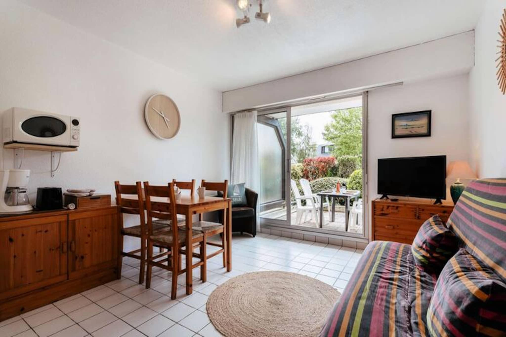 Denne charmerende to-v?relses lejlighed tilbyder et behageligt ophold for op til fire g?ster, kun 200 m fra Grande Plage de Carnac. Ejendommen indeholder en hyggelig stue med sovesofa, tv og spiseplads, der ?bner ud til en sydvestvendt terrasse med havem?bler. Et kabinev?relse med to enkeltsenge giver ekstra soveplads. G?ster, der rejser med k?ledyr, er velkomne mod et lille dagligt till?g. En privat parkeringsplads og et f?lles opbevaringsrum til cykler og windsurfbr?tter tilf?jer bekvemmelighed til dit ophold. Perfekt beliggende mellem yachtklubben og thalassoterapicentret, er denne lejlighed ideel til at udforske Carnacs livlige tilbud. Nyd afslappede g?ture til sandstranden, nyd lokale retter p? n?rliggende caf?er, eller gennemse charmerende markeder. Uanset om du nyder solen eller udforsker byens historiske og kulturelle attraktioner, byder omr?det p? en dejlig blanding af afslapning og eventyr. Lejligheden har et veludstyret k?kken med 4 kogeplader, ovn, k?leskab og mikroovn, hvilket g?r det nemt at tilberede m?ltider. Et brusebadev?relse med toilet sikrer bekvemmelighed, mens valgfri tjenester som leje af senget?j, slutreng?ring og en WiFi-miniboks forbedrer dit ophold. Nyd blandingen af ??komfort og praktiske muligheder, som dette kysttilflugtssted tilbyder, perfekt til en mindev?rdig ferie.