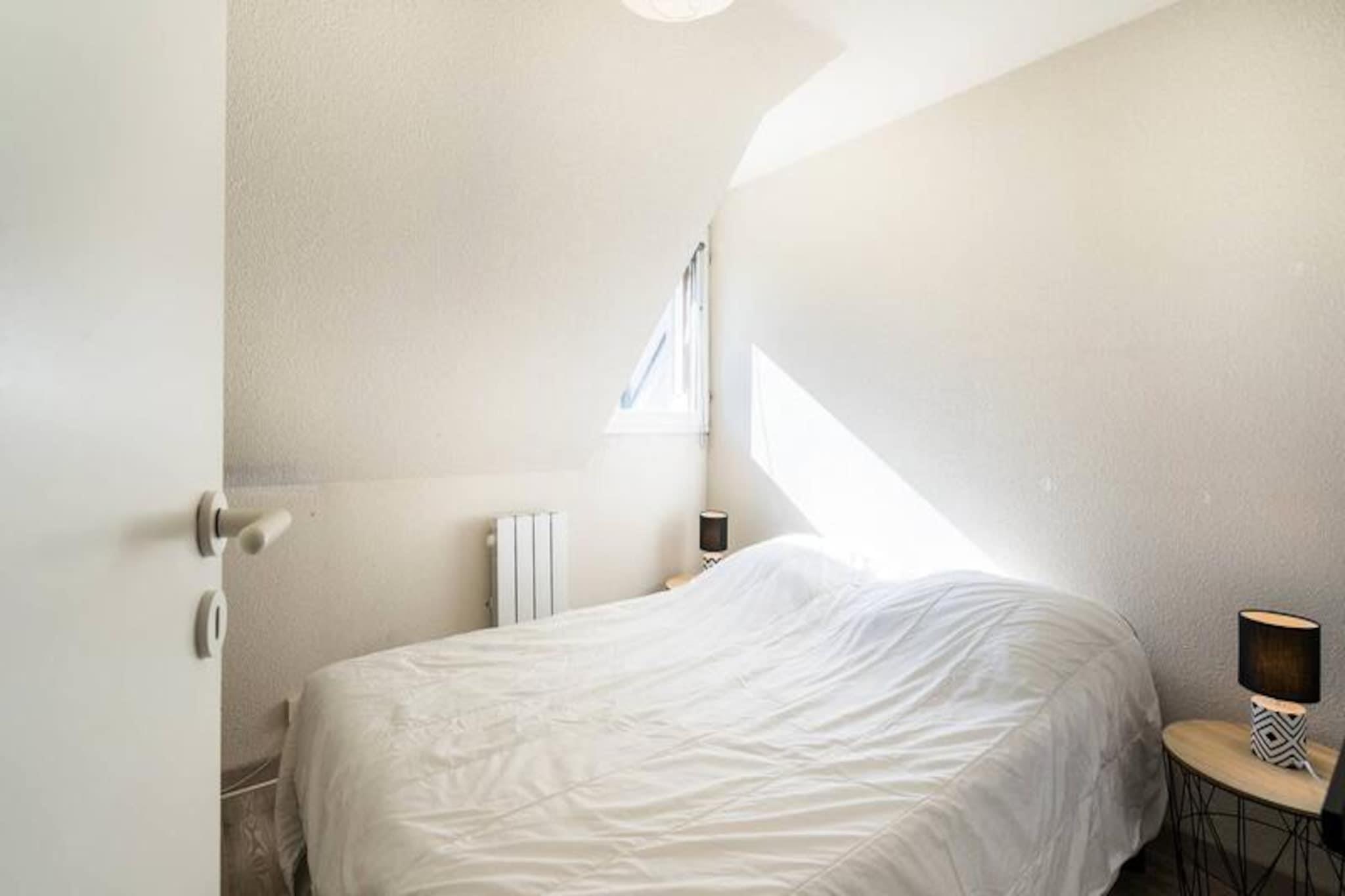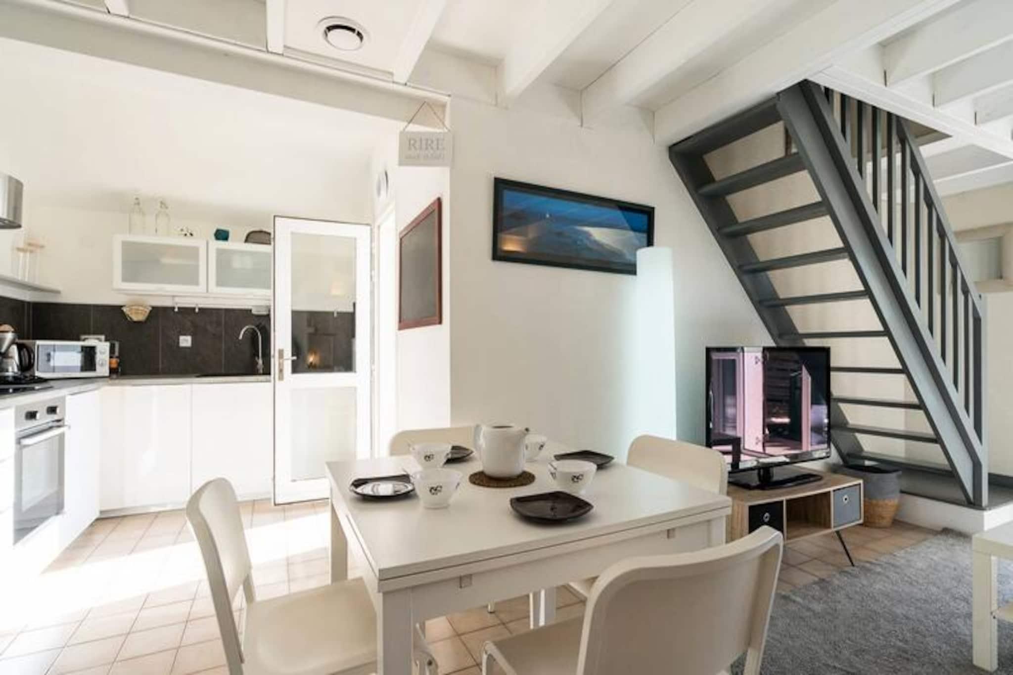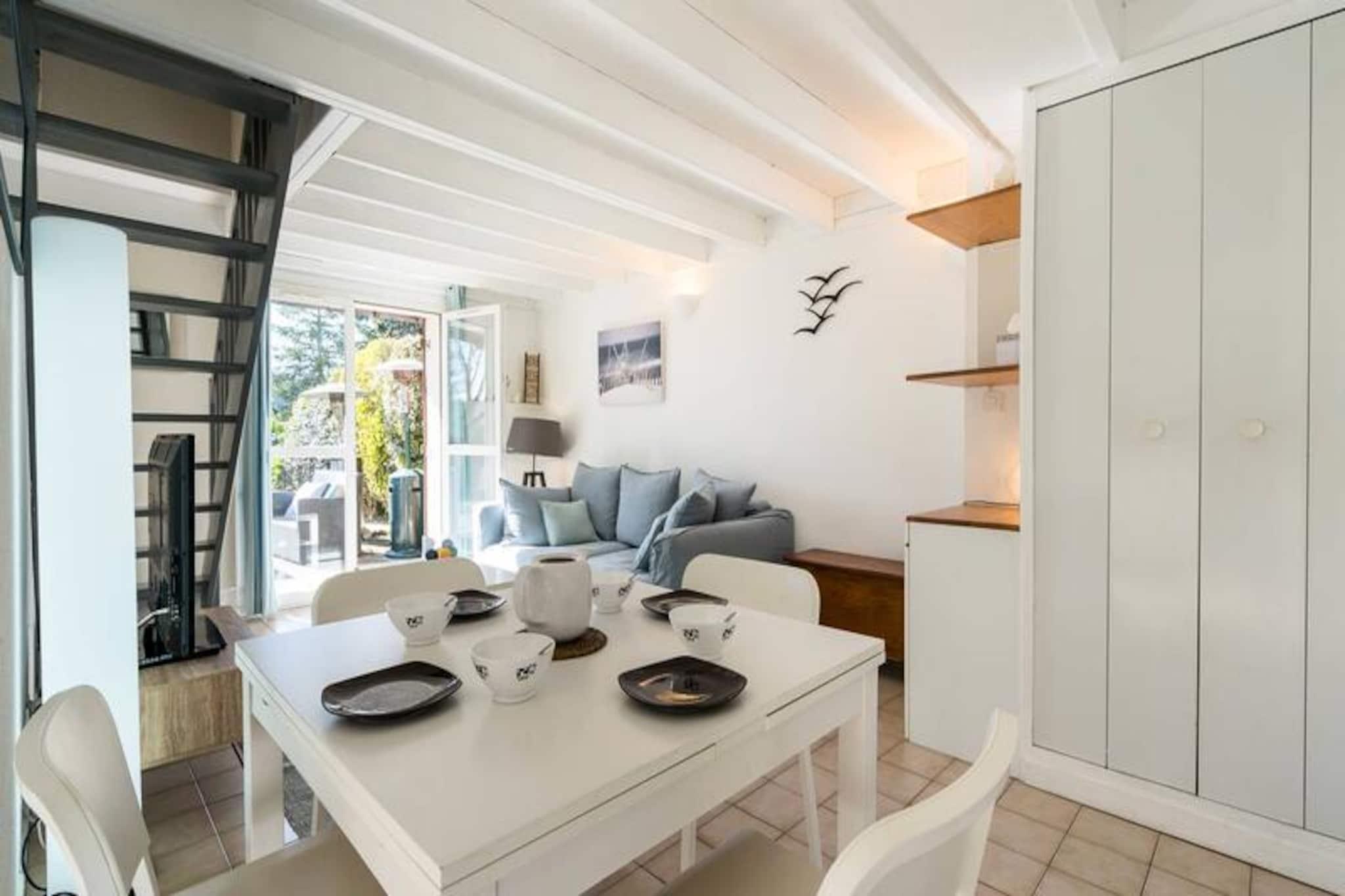 Dette charmerende 3-værelses hus, beliggende i Residence Les Maisons de la Plage, kan rumme op til 4 gæster. Det har en hyggelig stue med sofa, tv og spiseplads, som alle fører til en privat terrasse og lukket have, perfekt til afslapning. De to soveværelser inkluderer et med dobbeltseng og tv, og det andet med to enkeltsenge. Ejendommen er kæledyrsvenlig og tillader små dyr mod et ekstra tillæg. Der er gratis trådløs internetadgang, og der tilbydes parkering for et køretøj. Ejendommen er ideelt beliggende, kun 200 m fra Men Du-stranden og 500 m fra et supermarked, hvilket gør det nemt at nyde havet og shoppe det nødvendige. Området byder på rolige omgivelser og er perfekt for dem, der ønsker at nyde et fredeligt tilflugtssted, mens de stadig er tæt på stranden. De lokale markeder, caféer og restauranter ligger kun i kort afstand, og tilbyder en smag af den lokale kultur og køkken. Lejligheden er udstyret med et åbent køkken med en 3-brænder kogeplade, mikroovn, ovn, køleskab med fryser og opvaskemaskine, hvilket giver mulighed for nem tilberedning af måltider. Badeværelset er kompakt, men funktionelt, og der er et separat toilet for ekstra bekvemmelighed. Yderligere faciliteter omfatter en udendørs lænestol med vaskemaskine. Varme- og energiomkostninger er inkluderet, med valgfri slutrengøring til rådighed.