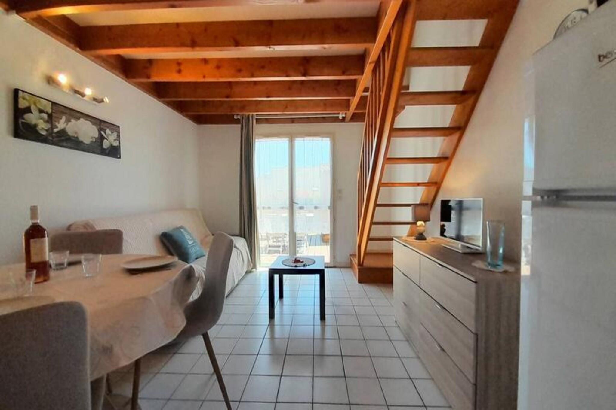 Dette hyggelige 3-værelses hus, beliggende i Residence LES MAISONS DE LA PLAGE, kan rumme op til 4 personer. Det åbne køkken er fuldt udstyret med en 4-brænder kogeplade, opvaskemaskine, vaskemaskine, mikroovn, miniovn og køleskab med fryser. Stuen har spiseplads, opholdsstue med sovesofa og tv. Den sydvendte terrasse, med direkte adgang til haven, er perfekt til udendørs afslapning. Ovenpå er der et soveværelse med en dobbeltseng og et andet værelse med to enkeltkøjesenge. Badeværelset har et lille badekar, og der er et separat toilet. Kun 200 m fra Men Du-stranden og 500 m fra et supermarked er huset ideelt placeret for strandgæster. Lokale caféer, restauranter og butikker ligger inden for gåafstand, som giver alt hvad du behøver for et behageligt ophold. Nærheden til stranden og fredelige omgivelser gør det til et ideelt sted for afslapning og udendørs aktiviteter. Huset leveres med en dedikeret parkeringsplads (#6) og tillader kæledyr mod et lille ekstra gebyr. Terrassen har en aftagelig barriere for ekstra sikkerhed. Valgfrie tjenester omfatter slutrengøring, leje af linned, udstyr til børnepasning og en wifi-miniboks. Varme og energi er inkluderet i lejen.