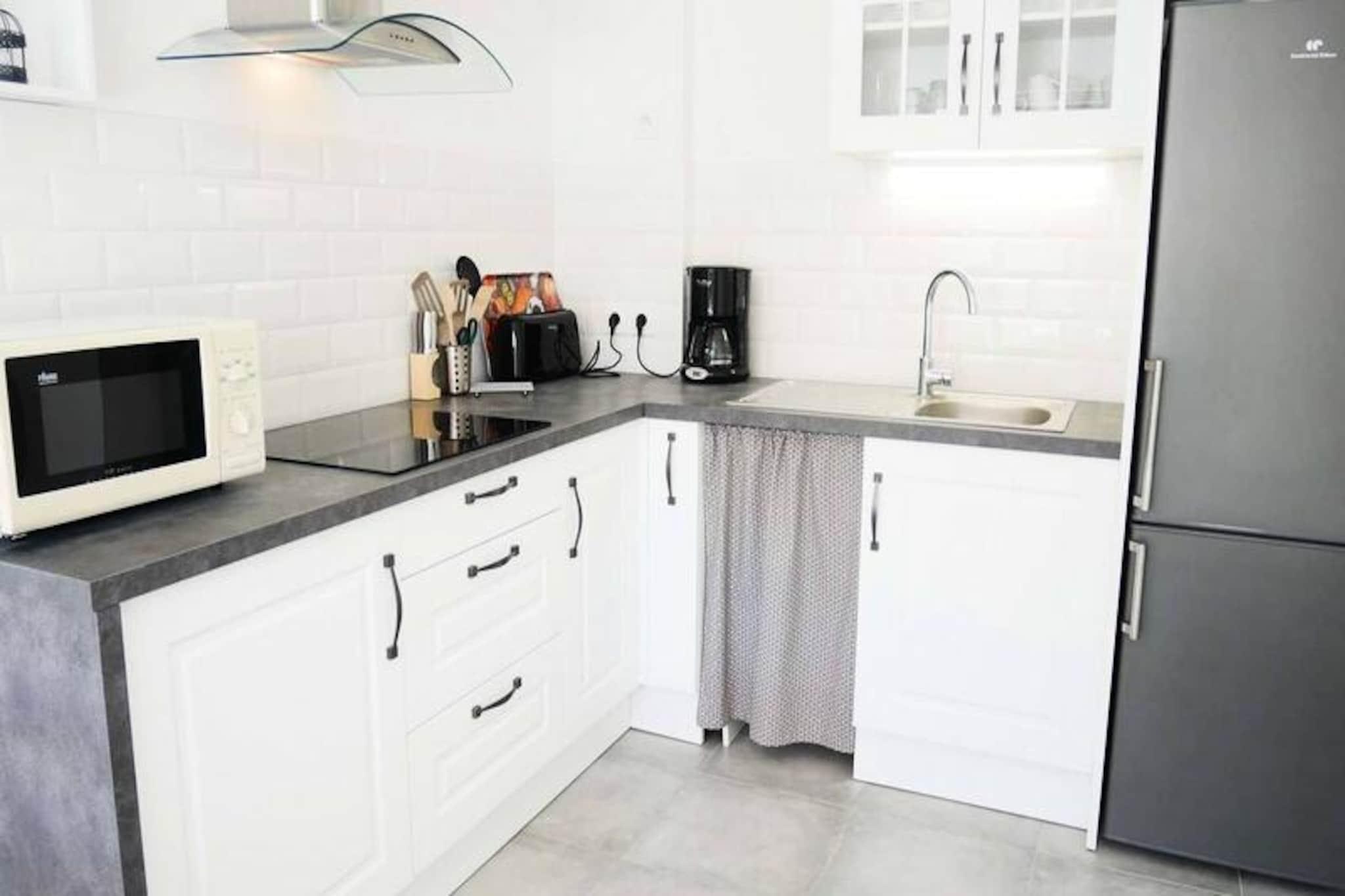 This well-appointed 2-room apartment, located on the ground floor of the TAL AR TREIZ Residence in Carnac, offers a cozy retreat for up to 4 guests. The living room features a dining area with a table and chairs, as well as a lounge area with a TV and a convertible sofa that sleeps 2. The apartment includes a private terrace, which opens onto a small enclosed garden, perfect for outdoor relaxation with garden furniture and an awning. The bedroom is equipped with two single beds, and the apartment is not pet-friendly. Ideally situated just 300 meters from St Colomban and Ty Bihan Beaches, the apartment allows guests to easily explore the area's natural beauty and charming surroundings. Carnac’s famous megalithic sites are just a short drive away, along with local cafes and markets where you can enjoy fresh produce and regional specialties. A variety of restaurants, shops, and recreational activities are within easy reach, making this a perfect base for both relaxation and exploration. The apartment is equipped with an efficient kitchen area featuring a fridge/freezer, 4-burner induction hob, microwave, and dishwasher. The shower room boasts a large flat shower with a seat, and a washing machine is available for your convenience. The property also includes separate WC facilities. A parking space is provided, ensuring easy access, and optional services such as end-of-stay cleaning and linen rental are available for added comfort. Heating and energy are included in the weekly price from May to September.