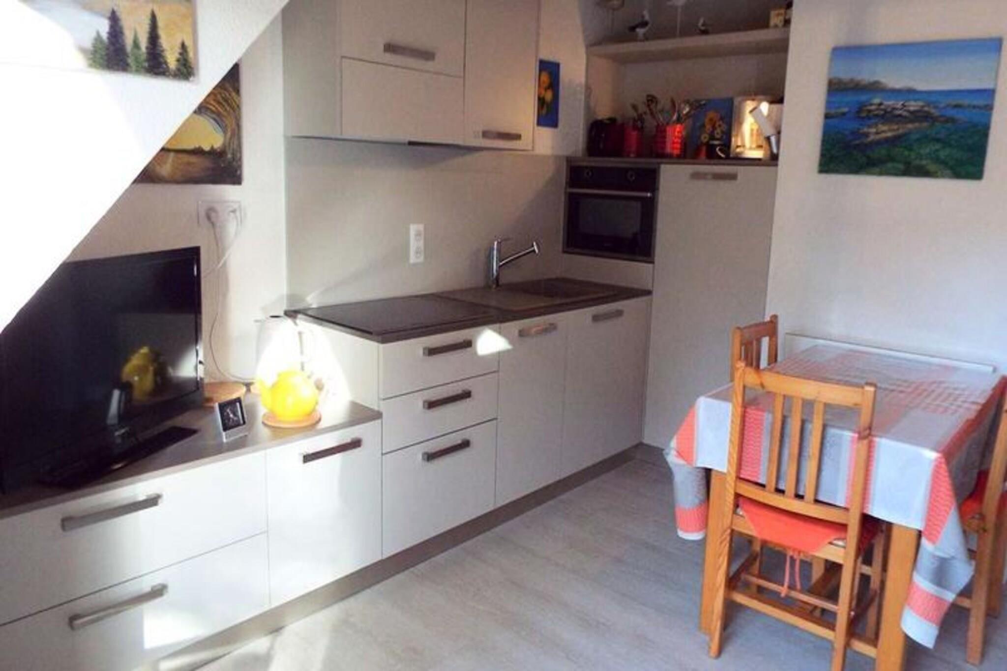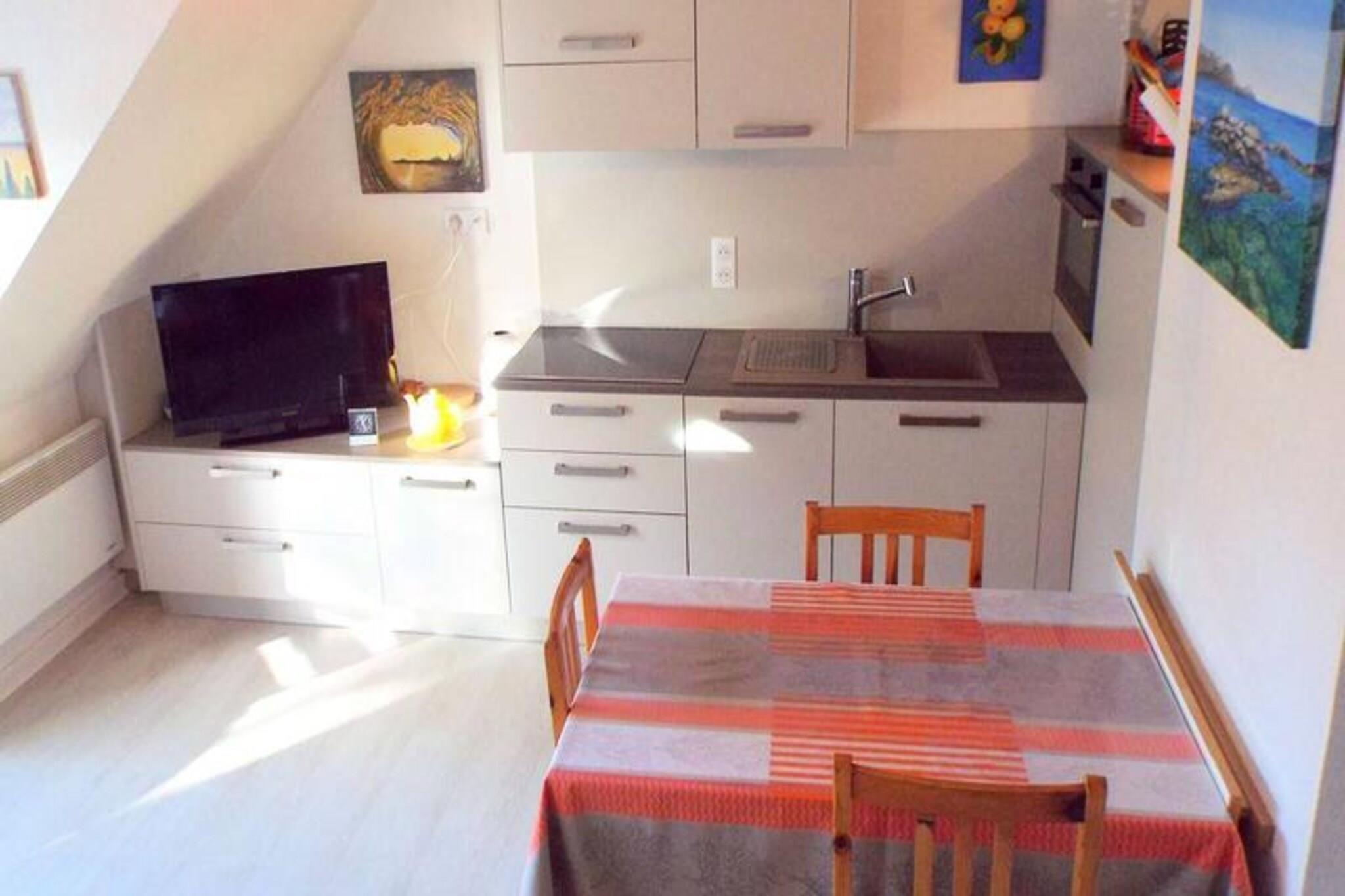 This charming 3-room duplex apartment is perfect for a relaxing family getaway, offering comfortable accommodations for up to five people. The apartment features a cozy living room with a sofa and TV, as well as a dining area that opens onto a south-facing covered balcony. The main floor includes a bedroom with a double bed, a shower room with a washing machine, and a separate WC. The upper level houses an open attic bedroom with one double bed and one single bed, ideal for a family or small group. Pets are welcome for an additional charge, making it an excellent choice for pet owners. The apartment is ideally located just 300 meters from the large beach of Carnac, perfect for sunbathing, swimming, and water sports. Guests can also enjoy the convenience of being only 100 meters from a supermarket, ensuring easy access to supplies. The surrounding wooded area offers a peaceful and relaxing environment, while local cafés, restaurants, and markets are nearby, providing plenty of options for dining and shopping. The apartment features a fully equipped kitchen with a 3-burner hob, combined oven and microwave, refrigerator, and dishwasher, making meal preparation a breeze. For added convenience, a washing machine is available in the shower room. Guests can also take advantage of the dedicated parking space, as well as the bicycle and windsurfing storage room. Optional services, such as end-of-stay cleaning, linen rental, and Wi-Fi, are available for an extra charge.
