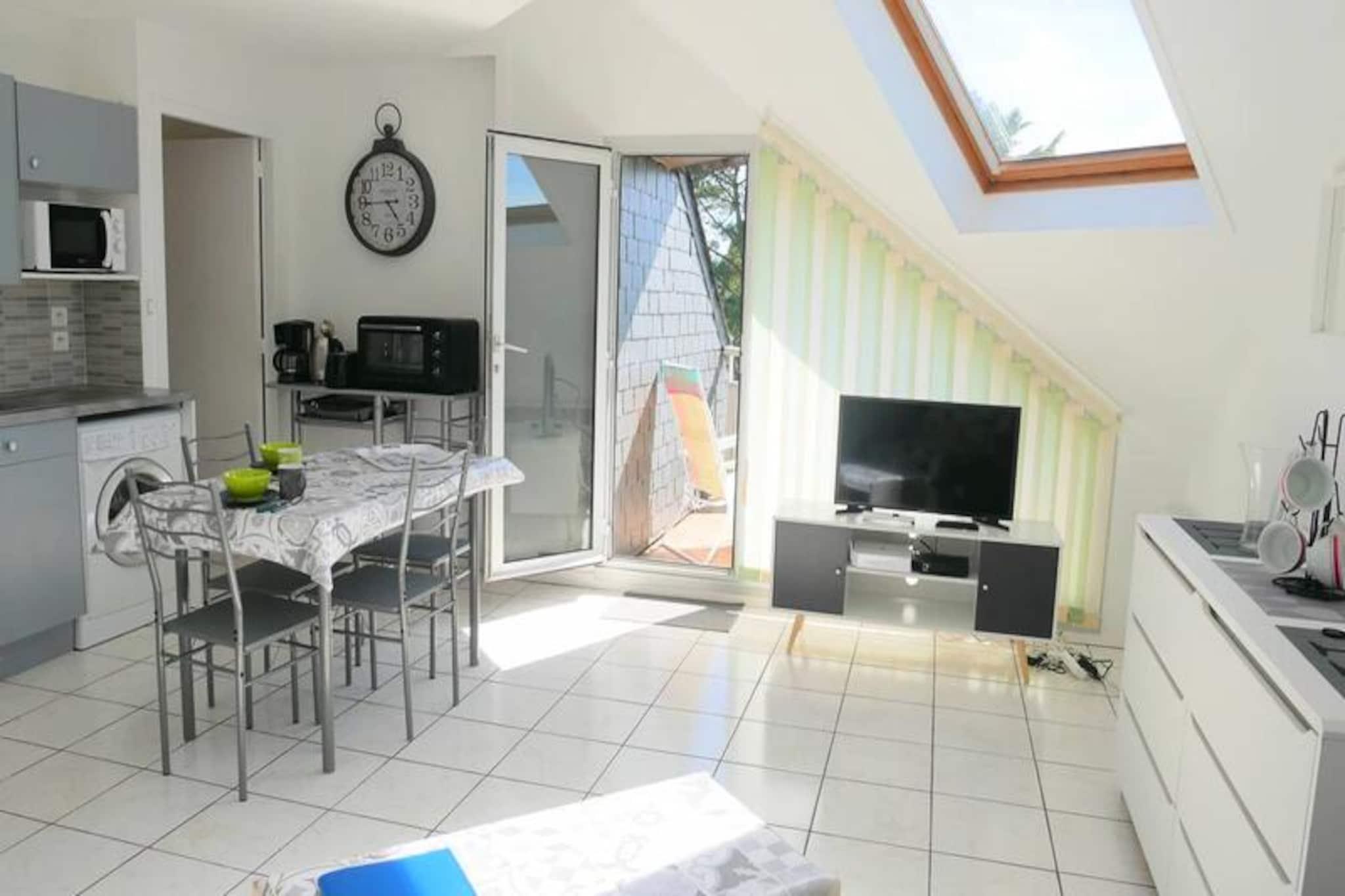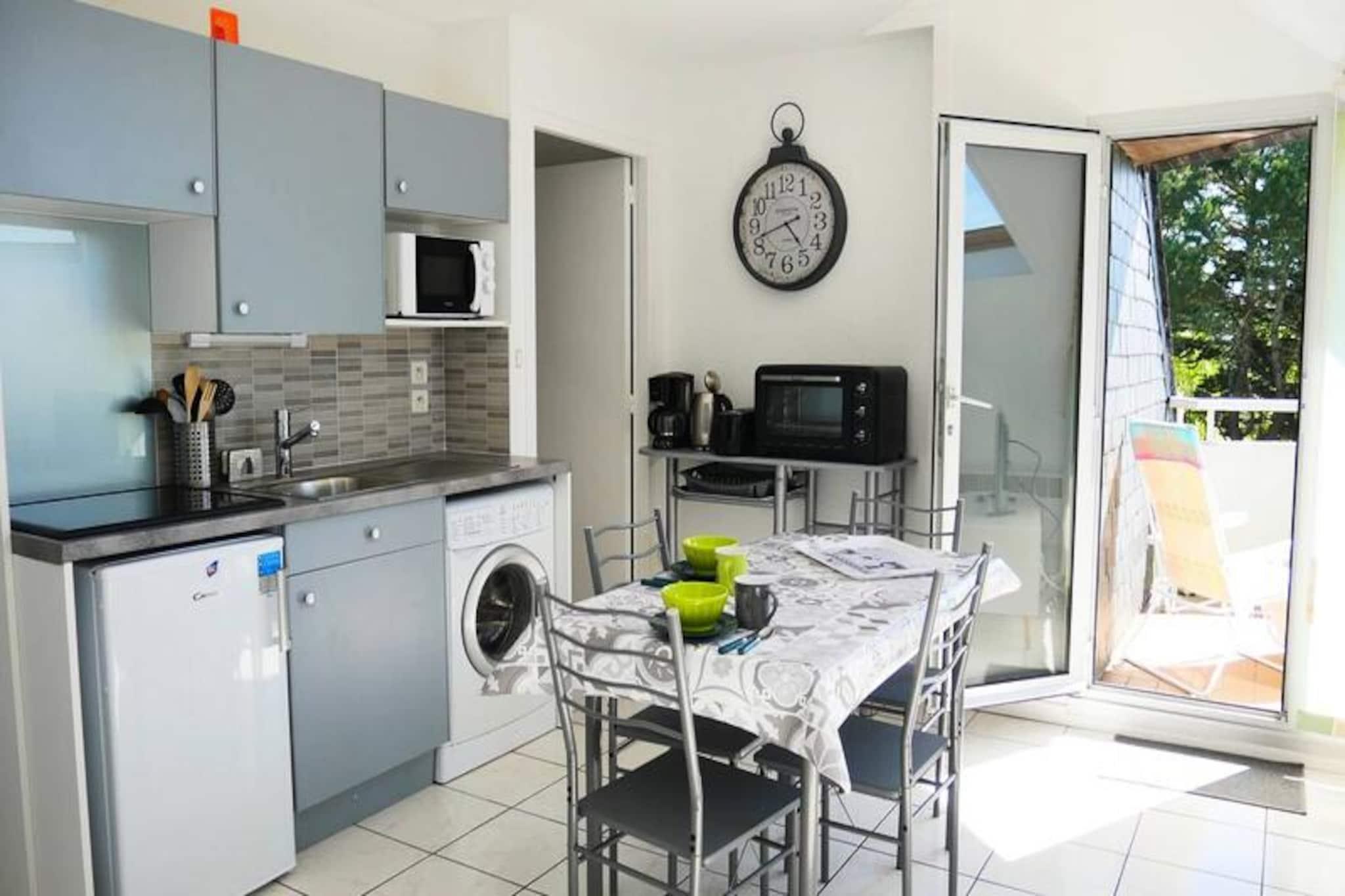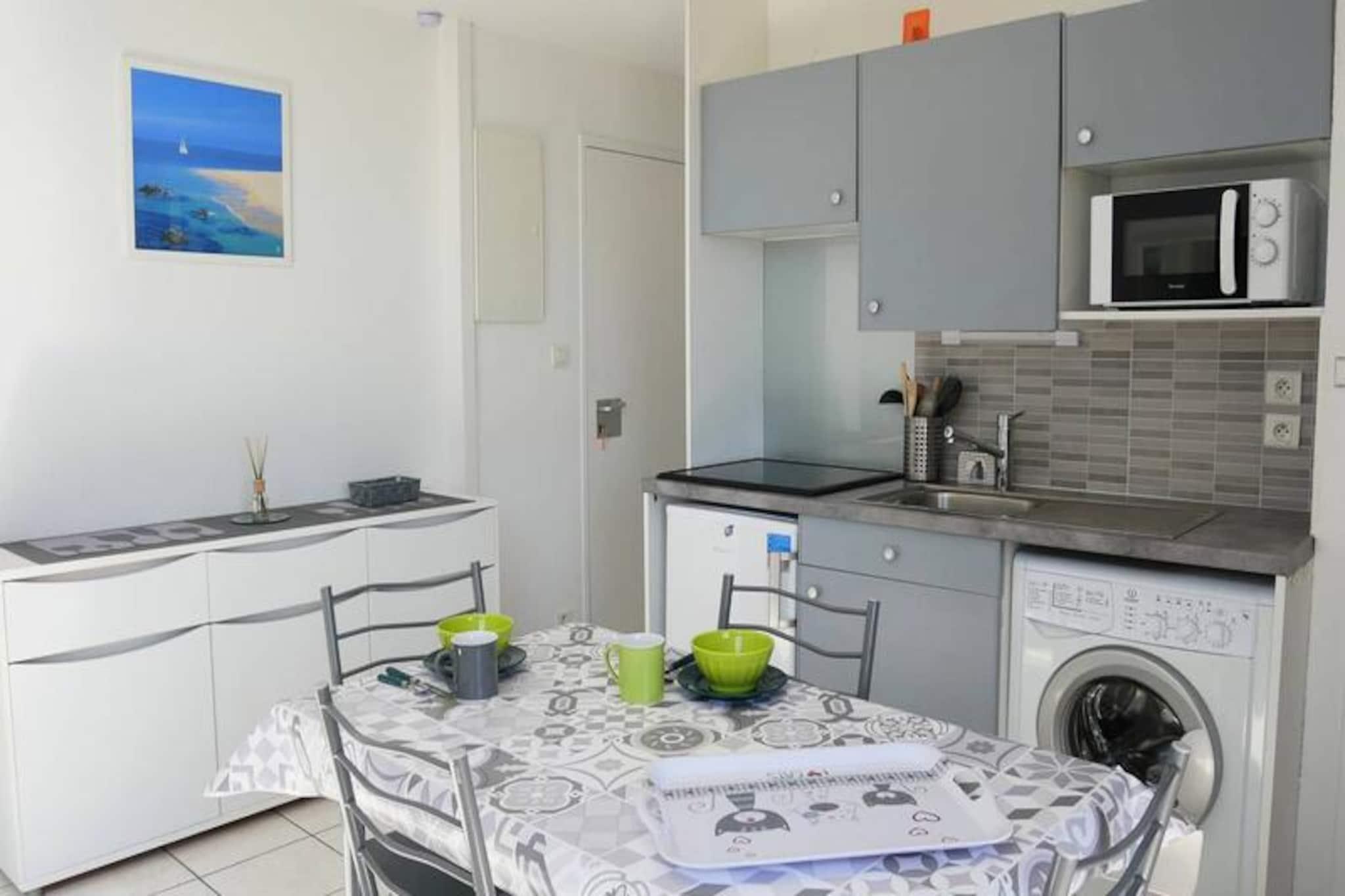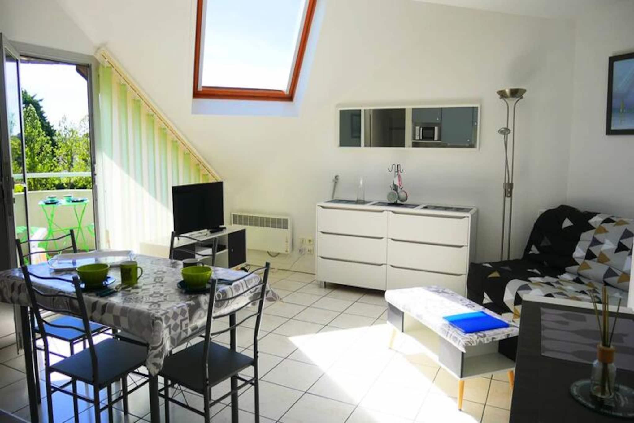 Denne hyggelige og komfortable studio, ideel til 2 gæster, er perfekt egnet til en afslappende ferie. Den har et loungeområde med en BZ-sofa, der kan omdannes til en 140 cm seng med en komfortabel madras og dyne. Boligrummet åbner ud til en sydvendt altan med havemøbler, perfekt til at nyde solen. Denne ikke-ryger ejendom tillader ikke kæledyr, hvilket sikrer et rent og roligt miljø. Offentlig parkering er bekvemt placeret i nærheden for nem adgang. Beliggende kun 500 meter fra den fantastiske Grande Plage og Légenèse Strand, er studiet en fantastisk base for at udforske Carnac. Yachtklubben og thalassoterapicentret ligger inden for gåafstand og tilbyder muligheder for vandsport og wellness-behandlinger. I nærheden finder du livlige caféer, restauranter og markeder med friske lokale råvarer og håndværksvarer, hvilket sikrer masser at se og lave under dit ophold. Studiet er veludstyret med moderne bekvemmeligheder for at forbedre din komfort. Køkkenet indeholder en 3-brænder induktionskomfur, køleskab med fryser, vaskemaskine, mikroovn og miniovn til nem tilberedning af måltider. Et badeværelse og separat toilet fuldender rummet. Valgfri tjenester såsom slutrengøring, leje af sengetøj og Wi-Fi er tilgængelige mod et gebyr, mens varme er inkluderet. Dette studie er klassificeret som 2-stjernet Møbleret Turisme, der tilbyder kvalitet og værdi for din ferie.