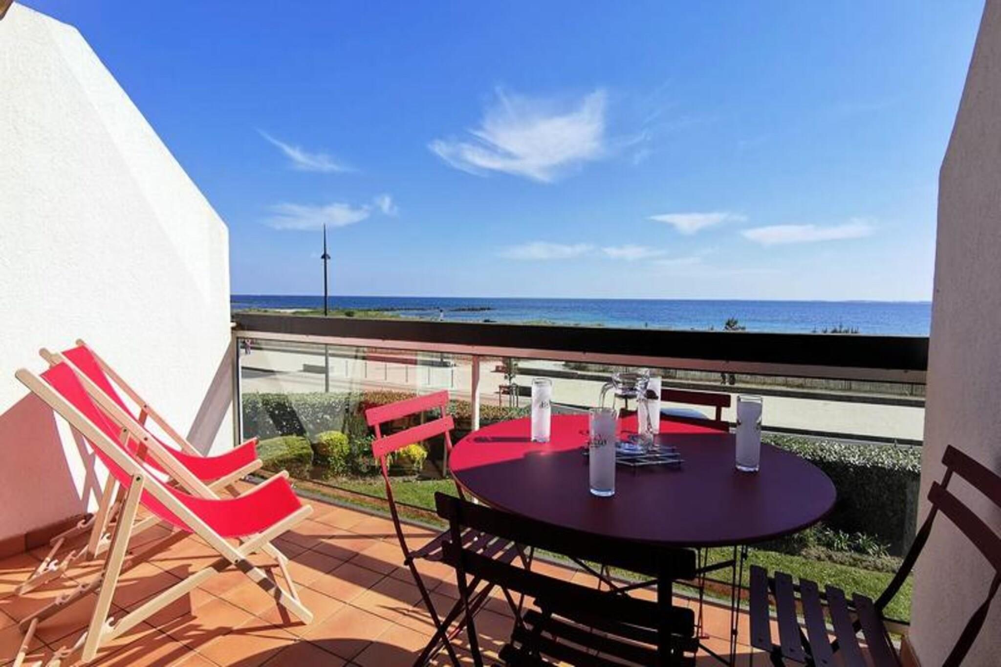 This charming studio cabin, located on the first floor of a residence facing the Grande Plage de Carnac, is ideal for up to 4 people. It offers a cozy living space with a cabin entrance that features two single bunk beds, perfect for children or extra guests. The living room includes a dining area with a table and chairs, as well as a comfortable lounge area with a TV and a Rapido sofa that converts into a double bed. Enjoy stunning sea views from the south-facing balcony, complete with garden furniture and an awning for added comfort. One pet is allowed with a small additional fee, making it a great option for travelers with furry companions. The property is conveniently located just 250 meters from a supermarket, ensuring easy access to daily essentials. It's also a short 300-meter walk to the local Tennis Club, offering recreational activities for guests. The beautiful Grande Plage de Carnac is right in front of the residence, perfect for a day of relaxation by the sea. The surrounding area features a variety of cafes and markets where you can explore local delicacies and enjoy a leisurely afternoon. Inside the apartment, you'll find a fully equipped kitchen area with a 2-burner electric hob, refrigerator, and mini-oven, making it easy to prepare meals during your stay. The bathroom includes a shower and WC. Additional services such as a parking space, linen rental, childcare equipment, and a Wi-Fi mini-box are available upon request. A consumption package is extra, except during the peak season, and optional end-of-stay cleaning can be arranged for a hassle-free departure.