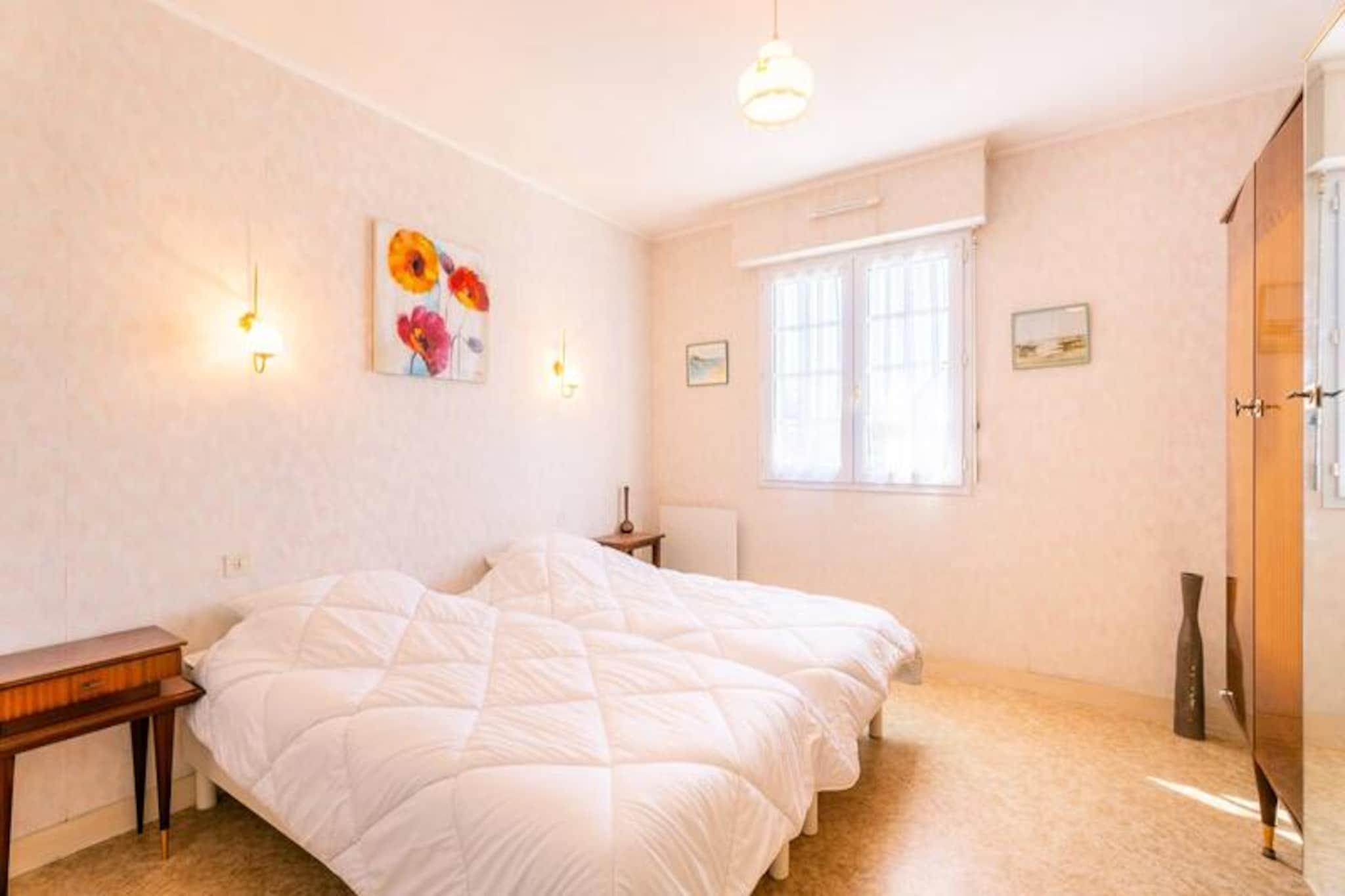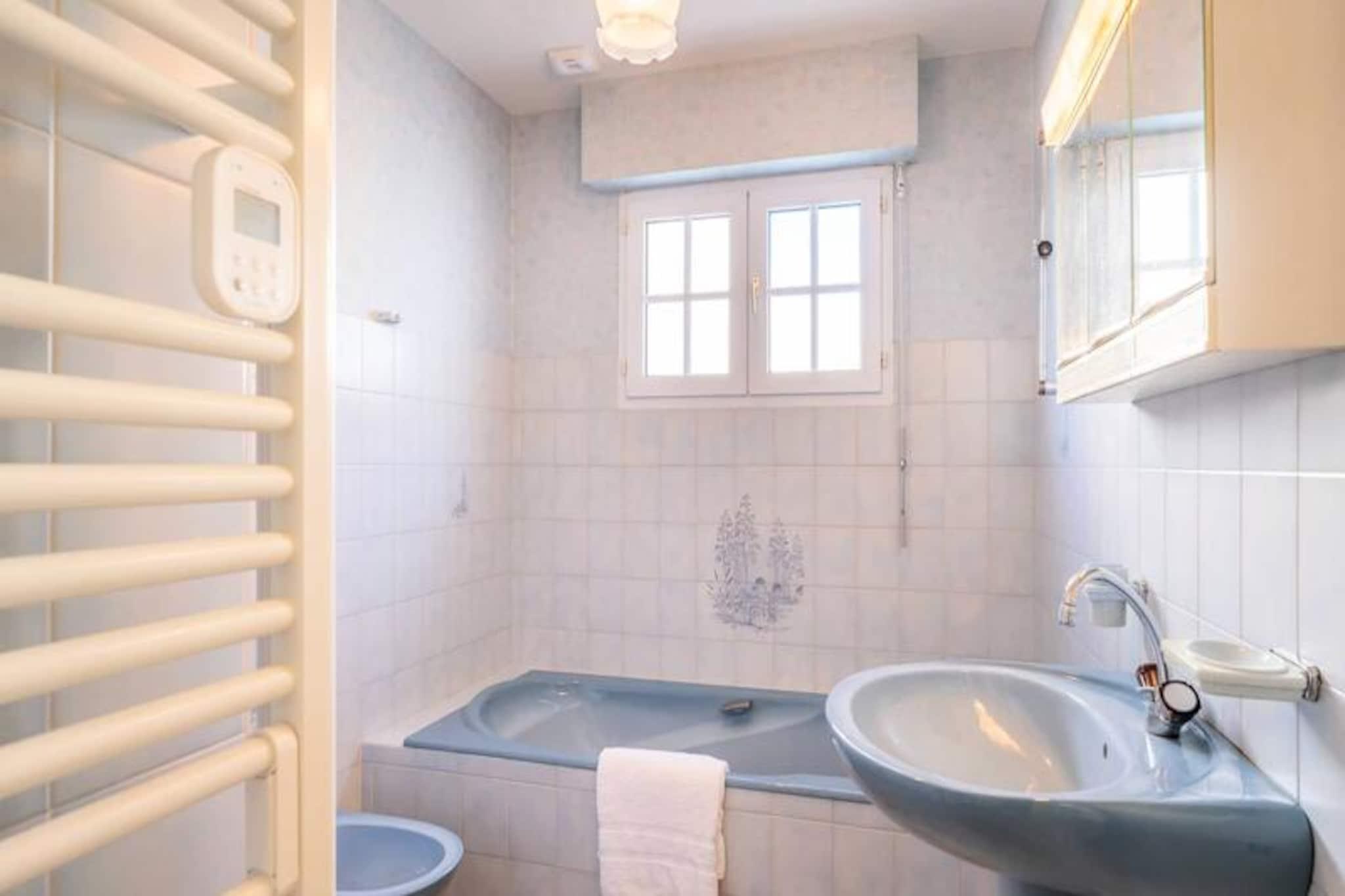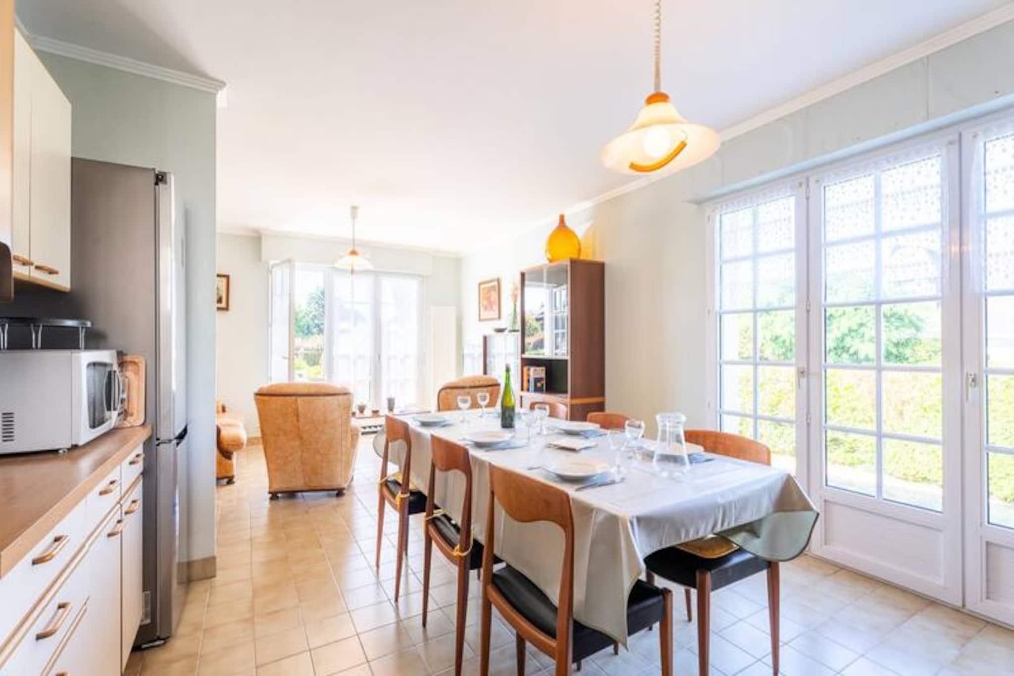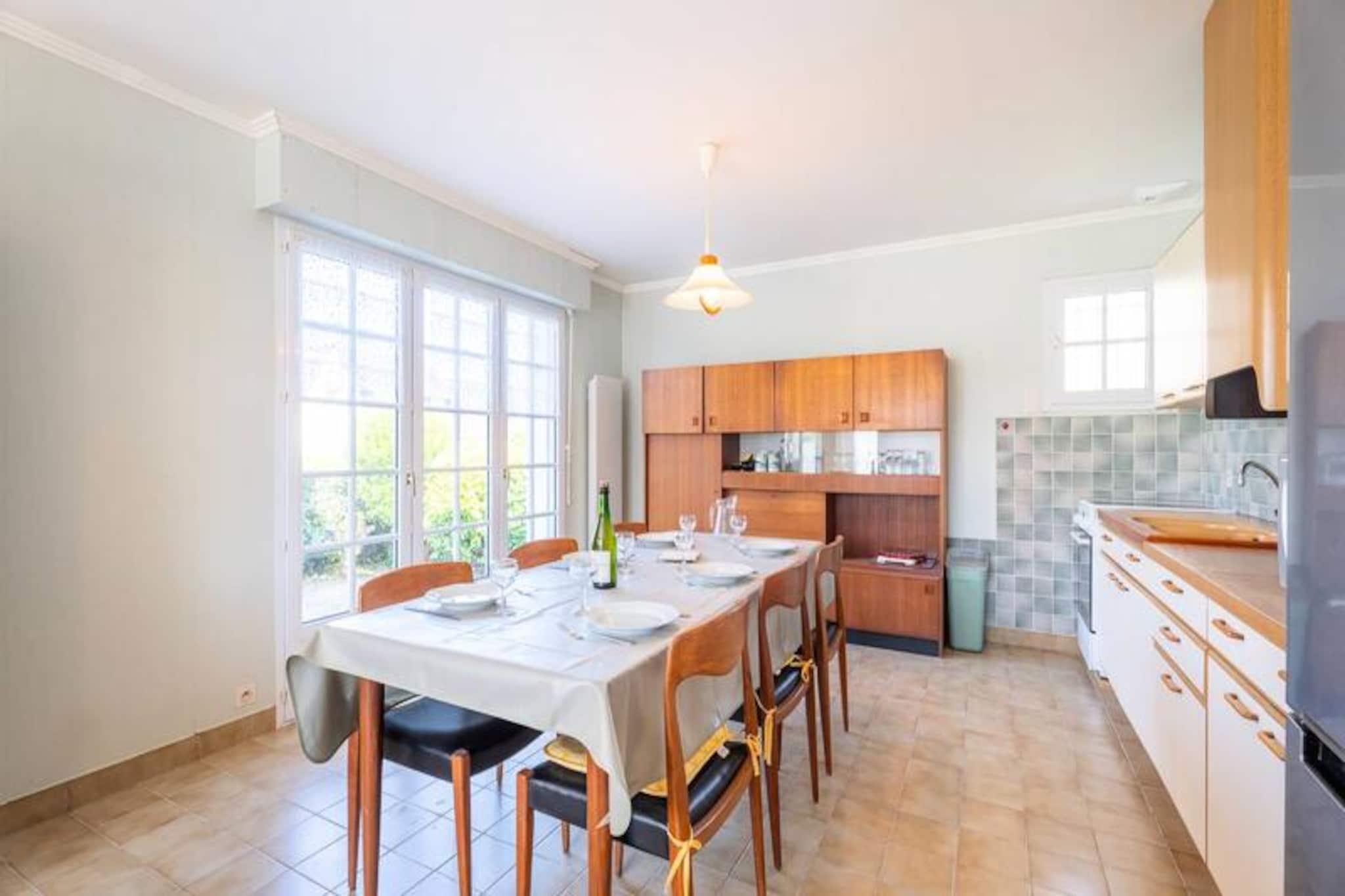 I den rolige boligenklave Clos de Kervégan, kun 1 km fra Carnacs charmerende bymidte og 2,5 km fra den fantastiske hovedstrand, tilbyder dette hus i neo-bretonsk stil et roligt tilflugtssted for op til 9 gæster. Omgivet af en lukket have er denne ejendom med 6 værelser perfekt til familier eller grupper, der søger komfort og afslapning i hjertet af Bretagne. Træd ind i et indbydende opholdsrum, hvor spisepladsen og den hyggelige stue med sofa, lænestole og tv åbner ud til en solbeskinnet sydvendt terrasse. Terrassen strækker sig problemfrit ind i den private have, komplet med havemøbler til udendørs spisning eller rolige morgener med en bog. Det åbne køkken er fuldt udstyret med moderne apparater, herunder en 4-brænder keramisk kogeplade, ovn, mikrobølgeovn og køleskab/fryser, hvilket sikrer, at du har alt, hvad du behøver for at tilberede lækre måltider. Stueetagen har også et soveværelse med to enkeltsenge, et badeværelse og et separat toilet. Ovenpå finder du tre rummelige soveværelser med dobbeltsenge og et fjerde soveværelse med en enkeltseng, alle omhyggeligt designet til afslappende nætter. Et brusebad og et ekstra toilet fuldender den øverste etage. Ejendommen inkluderer også en garage med vaskemaskine og privat parkering i gården, hvilket sikrer bekvemmelighed under hele dit ophold. Udforsk Carnacs rige historie og naturlige skønhed, kendt for sine ikoniske megalitiske linjer, sandstrande og pulserende lokale markeder. Uanset om du slentrer gennem byens centrum, dyrker vandsport langs kysten eller blot slapper af i den fredelige have, tilbyder dette hjem en ideel base for at skabe uforglemmelige minder i Bretagne.