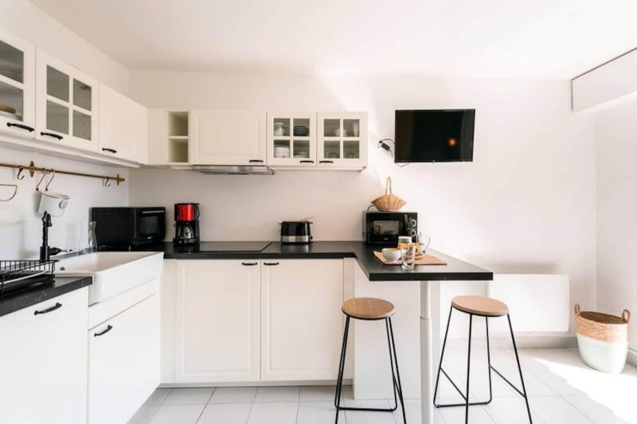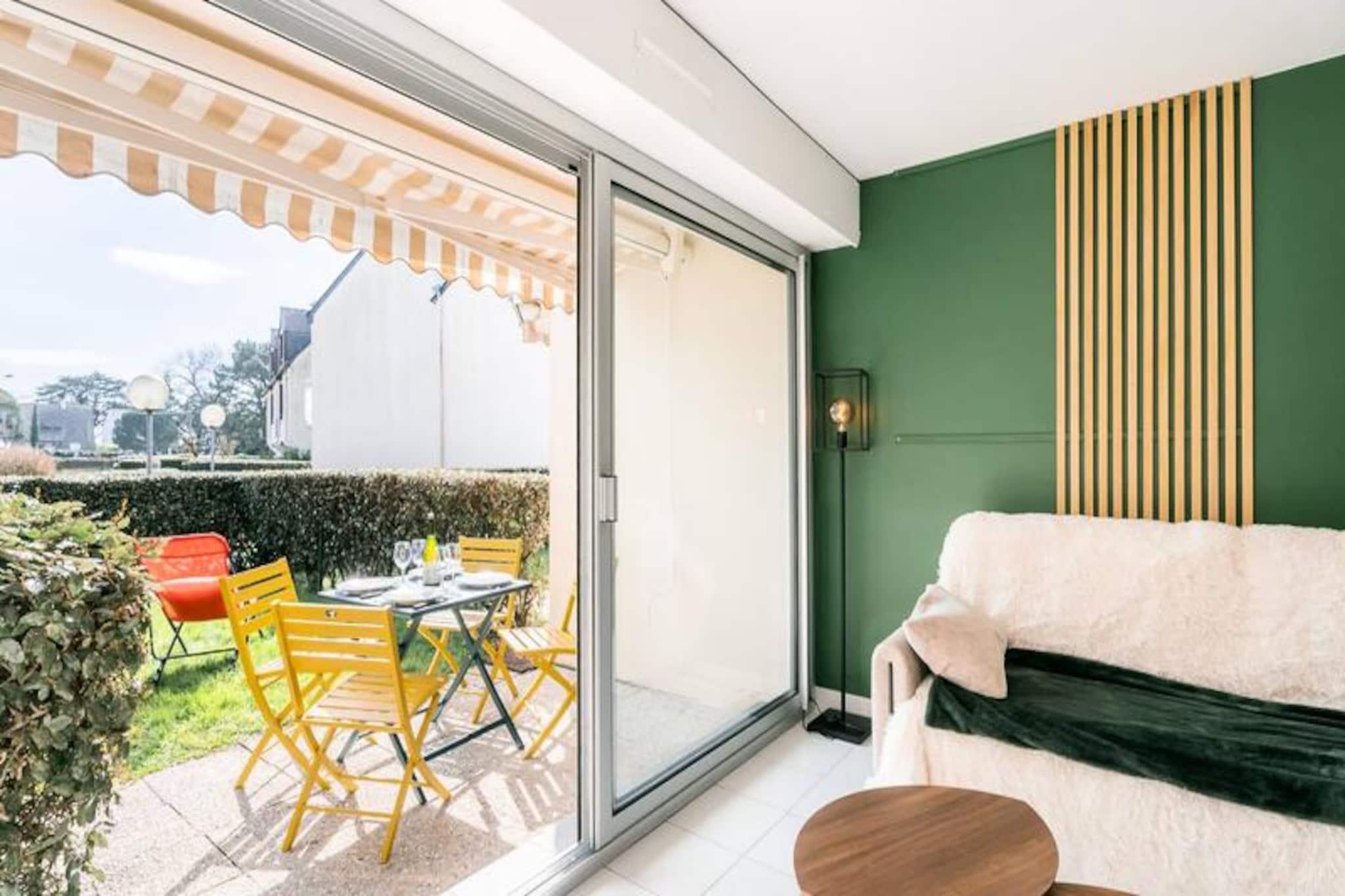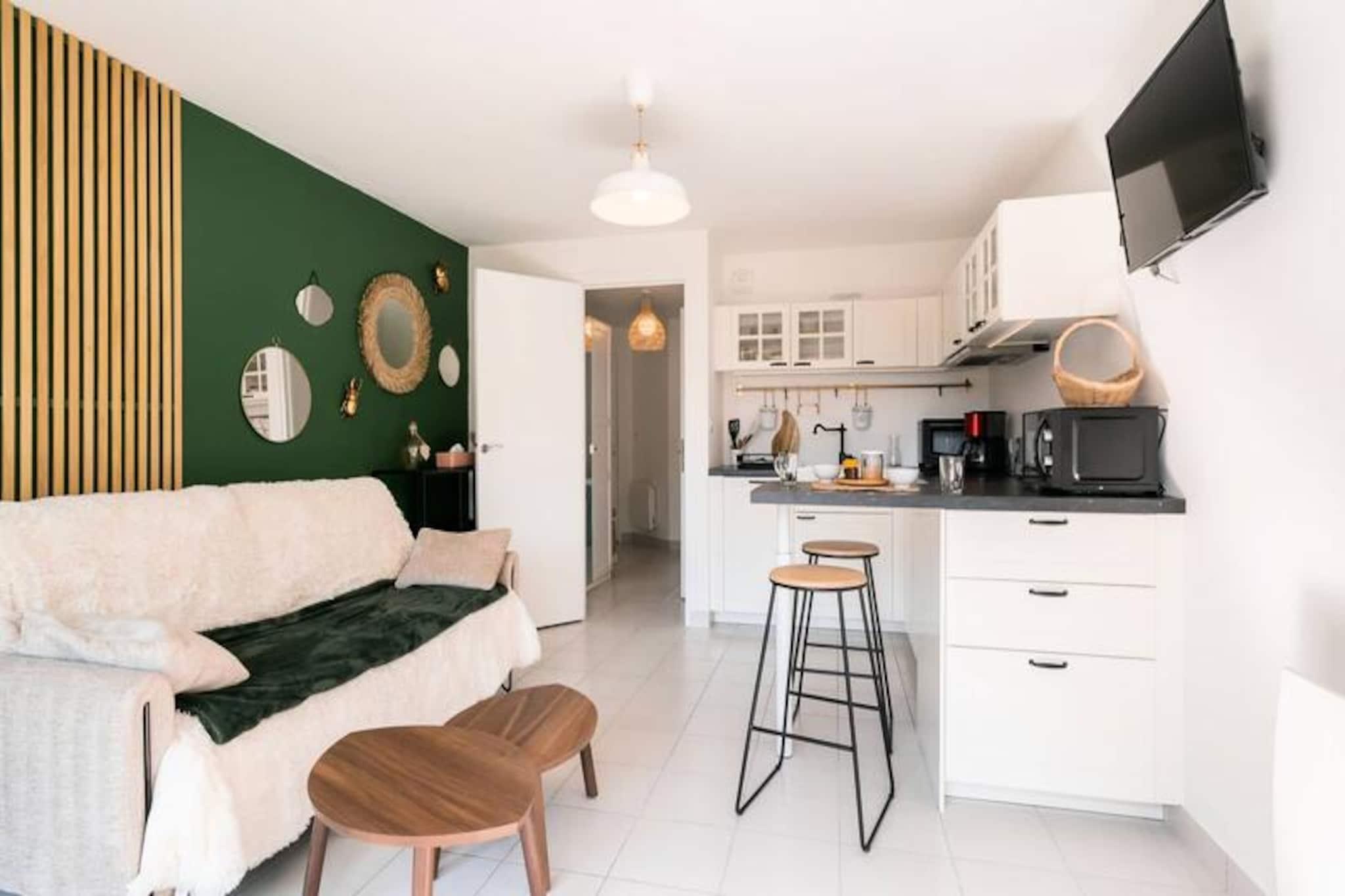 Kun en kort gåtur på 50 meter fra de fredfyldte strande Beaumer og Men-Du tilbyder denne charmerende 2-værelses lejlighed et hyggeligt tilflugtssted med et strejf af kystnær elegance. Beliggende i stueetagen af ??Résidence Les Tennis 2 har den en sydvendt terrasse, hvor du kan nyde en delvis havudsigt og havets beroligende lyde. Uanset om du nyder din morgenkaffe eller slapper af efter en dag med udforskning, er denne terrasse det perfekte sted at nyde den rolige kystatmosfære. Indenfor er lejligheden omhyggeligt designet til at maksimere komfort og funktionalitet. Stuen med dens indbydende opholdsstue og spiseplads åbner direkte ud til terrassen. En Rapido-sovesofa giver soveplads til to personer, mens soveværelset i kahytten tilbyder en hyggelig dobbeltseng, der sikrer afslappende nætter for op til fire gæster. Det åbne køkken er fuldt udstyret med moderne apparater, herunder keramisk kogeplade, miniovn, mikrobølgeovn, køleskab, fryser og opvaskemaskine, hvilket gør det nemt at tilberede måltider med friske lokale ingredienser. Badeværelset med toilet bidrager til bekvemmeligheden i dette veludstyrede rum. Beliggenheden er ideel for dem, der søger både afslapning og tilgængelighed. Med hovedstranden og et supermarked kun 600 meter væk finder du alt, hvad du behøver, inden for rækkevidde. Udforsk den maleriske kystlinje, dyrk vandsport, eller nyd blot det sydlige Bretagnes skønhed. Lejligheden har også en udpeget parkeringsplads (nr. 8) og er velkommen til et lille kæledyr, hvilket gør den til et godt valg for par, små familier eller solorejsende med pelsede venner. Uanset om du er tiltrukket af de nærliggende strandes tiltrækningskraft, charmen i det omkringliggende område eller komforten i et veludstyret feriested, lover denne lejlighed en dejlig ferie ved havet.