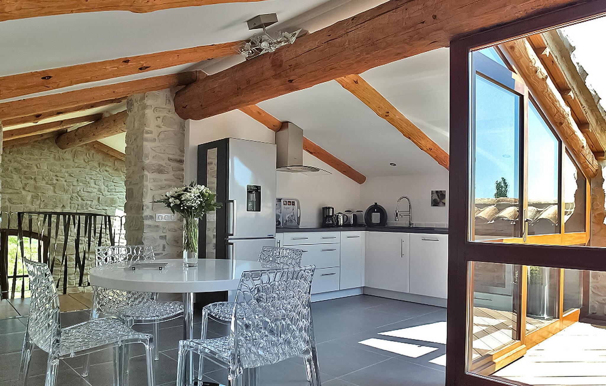 Nyd denne ferieudlejning designet til to, og lover et intimt og romantisk tilflugtssted mellem Nîmes og Montpellier. Beliggende i et tidligere kloster fra det 9. århundrede, kan denne prestigefyldte ejendom prale af seks udsøgte feriehuse, hver skræddersyet til to gæster, midt i en fredfyldt ejendom omgivet af vinmarker. Denne udlejning udstråler luksus og komfort. Det nederste niveau, der ligger på 1. sal, inviterer dig til at slappe af med stil. Beundre den blottede stenvæg, slap af på en designer-lædersofa fra Roch & Bobois, og forkæl dig selv med det gigantiske fladskærms-tv, der er synligt fra den hyggelige seng. For ekstra forkælelse kan du nyde den 2-personers indendørs jacuzzi med massagedyser og farveterapi. Gå op til det øverste niveau via en lufttrappe for at finde et veludstyret køkken. Få adgang til den charmerende terrasse, der ligger på toppen af tagene og tilbyder panoramaudsigt, et bord til udendørs spisning og to indbydende liggestole. Ud over boligen kan du udforske den fælles park med fængslende vingårdsudsigt og nyde den sikrede swimmingpools forfriskende vand, beskyttet af en alarm. Deltag i afslappet grillaften med en kulgrill og nyd venskabelige spil petanque på banen. Oplev et virkelig fortryllende feriested i denne luksuriøse udlejning, fyldt med overdådighed, komfort og betagende omgivelser. Ejendommen er beliggende mellem Nîmes og Montpellier, tæt på landsbyen Carnas, nær den middelalderlige landsby Sommières. Med 300 solskinsdage om året byder dette hjørne af paradis i den provencalske Gard på landskaber af sjælden skønhed: 30 minutter til Camargue og sandstrandene i Languedoc. Et stenkast væk afslører nationalparken Cévennes lige så spektakulære landskaber. Regionen er rig på en fantastisk historisk arv: Byen Avignon, de romerske byer Nîmes og Arles, Pont du Gard, Hertugdømmet Uzès, de historiske Languedoc-byer Montpellier, Pézenas, Aigues-Mortes, Sommières og Sauve og et væld af charmerende landsbyer at besøge. Denne ferieejendom er et ideelt udgangspunkt for at opdage Camargue, Cevennerne, Gard Provençal, Languedoc.