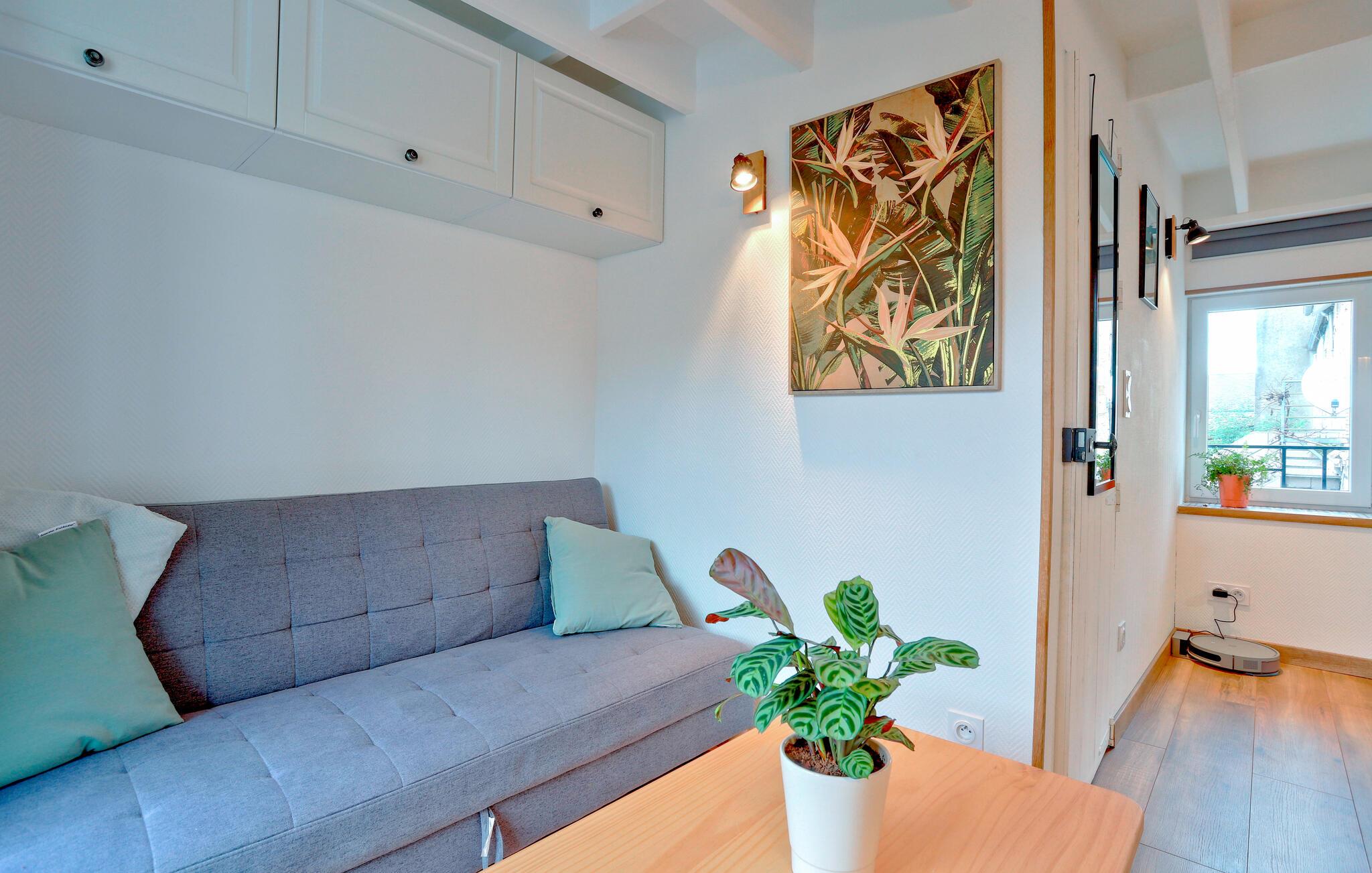 Lad jer fortrylle af den smagfulde stemning i denne moderne ferielejlighed. Lav mad i det indbydende, veludstyrede køkken og nyd stilfulde måltider i det åbne opholdsområde. Efter en begivenhedsrig dag kan I læne jer tilbage i den komfortable sofa og afslutte aftenen med et brætspil.