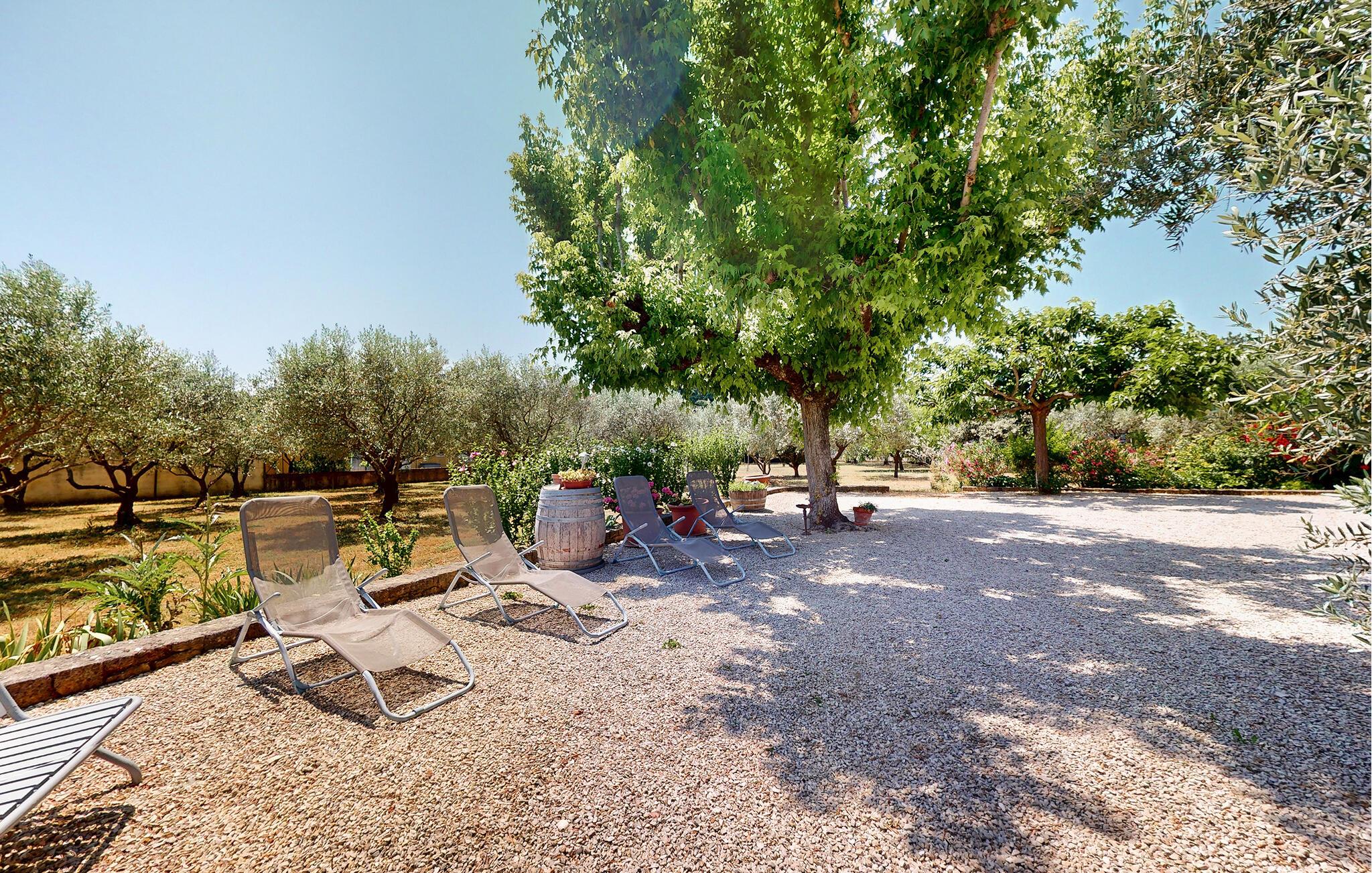 På husets førstesal bor en meget diskret beboer. Huset ligger i udkanten af den charmerende landsby Caromb, midt mellem Carpentras og Avignon. På den 2.500 m² store grund, er der blomster og olivenlunde, og her er der både smukt og fredfyldt, så glæd jer til afslappende stunder på den solbeskinnede naturterrasse med grill.