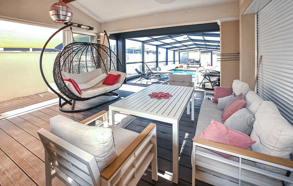 Dette rummelige og eksklusive feriehus, beliggende i rolige omgivelser, tilbyder det ideelle tilflugtssted til at tilbringe dejlige, afslappende dage sammen. Forkæl hinanden med jeres yndlingsretter, planlæg jeres aktiviteter og forkæl jer selv med nogle forkælende øjeblikke i saunaen eller spabadet efter en begivenhedsrig dag.