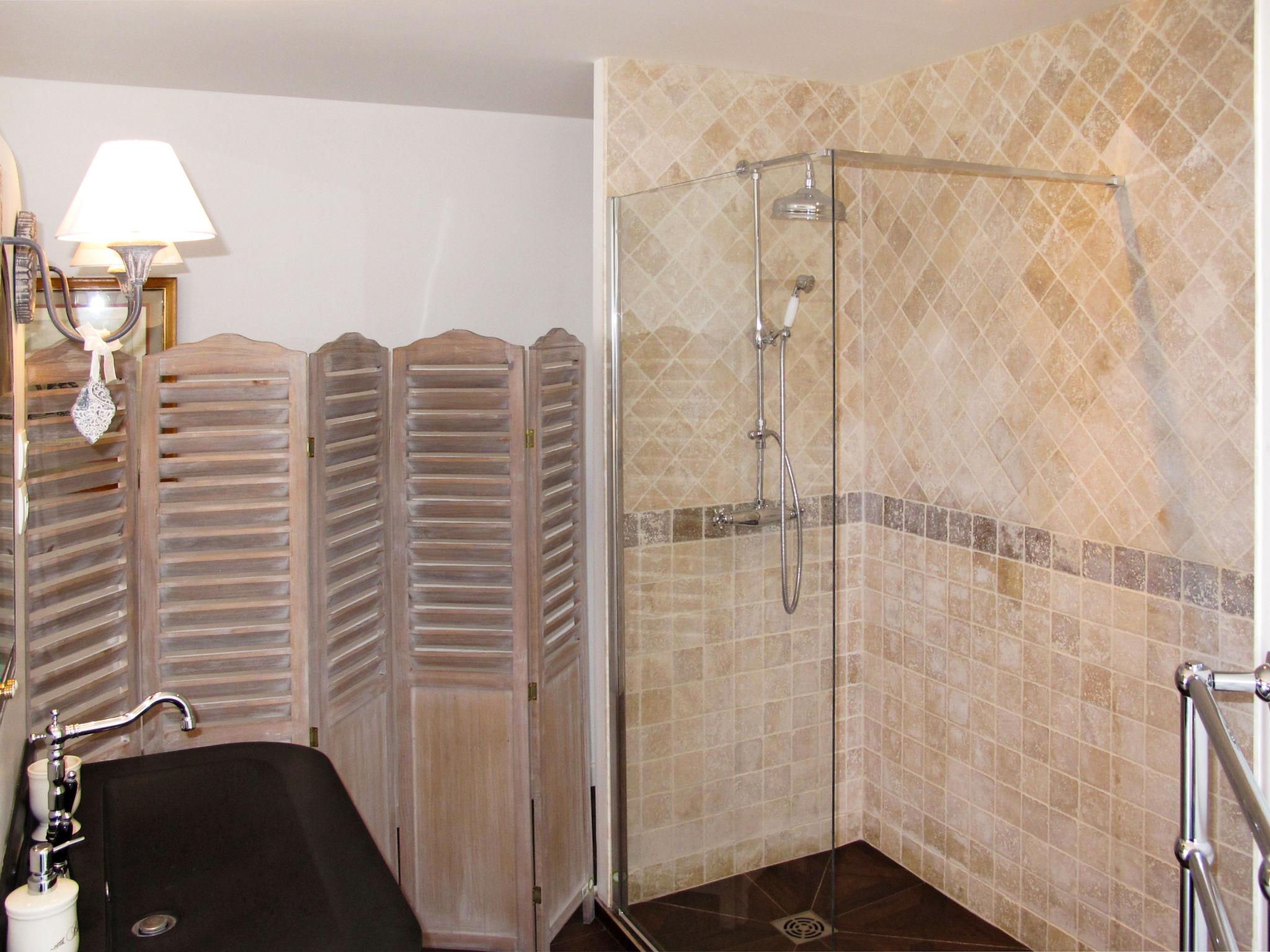 Beautiful single-family house "Rose", renovated in 2014. 5 km from the centre of Carqueiranne, 10 km from the centre of Hyères, 27 km from the centre of Toulon, on a slope, in the residential district, 4 km from the sea, 4 km from the beach. Private: property 1'500 m2 (fenced) with lawn and wildlife garden, swimming pool kidney shaped (9 x 5 m, depth 110 - 210 cm, seasonal availability: 01.Jan. - 31.Dec.). Outdoor shower. In the house: burglar alarm system. Parking (for 4 cars), single garage. Shop 3 km, bus stop 1.6 km.