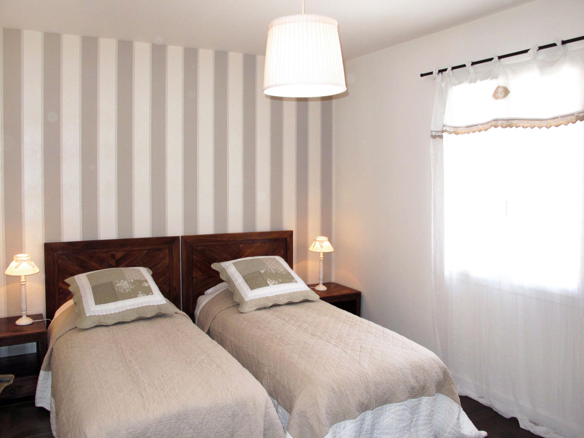 "Rose", 6-room house 165 m2 on 2 levels, south facing position. Tasteful furnishings: living/dining room with dining table and satellite TV. Exit to the terrace. 1 room with 1 french bed (160 cm), shower and air conditioning. Exit to the terrace. 1 room with 1 french bed (160 cm), shower. Open kitchen (oven, dishwasher, 3 induction hot plates, toaster, kettle, microwave, electric coffee machine). Exit to the terrace. Sep. WC. Upper floor: 1 room with 1 french bed (160 cm), air conditioning. Exit to the balcony. 2 rooms, each room with 2 beds. Sep. WC, bath/shower/WC, double hand-basin. Electric heating. Terrace partly roofed. Terrace furniture, electric barbecue, deck chairs. View of the sea. Facilities: washing machine, dryer, safe. Internet (WiFi, free). Maximum 1 pet/ dog allowed.