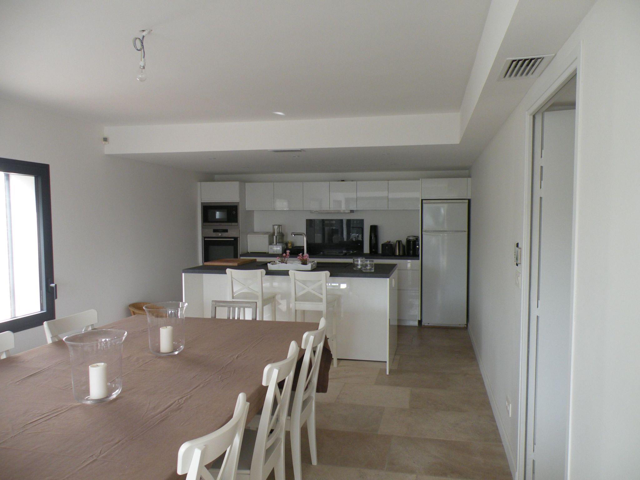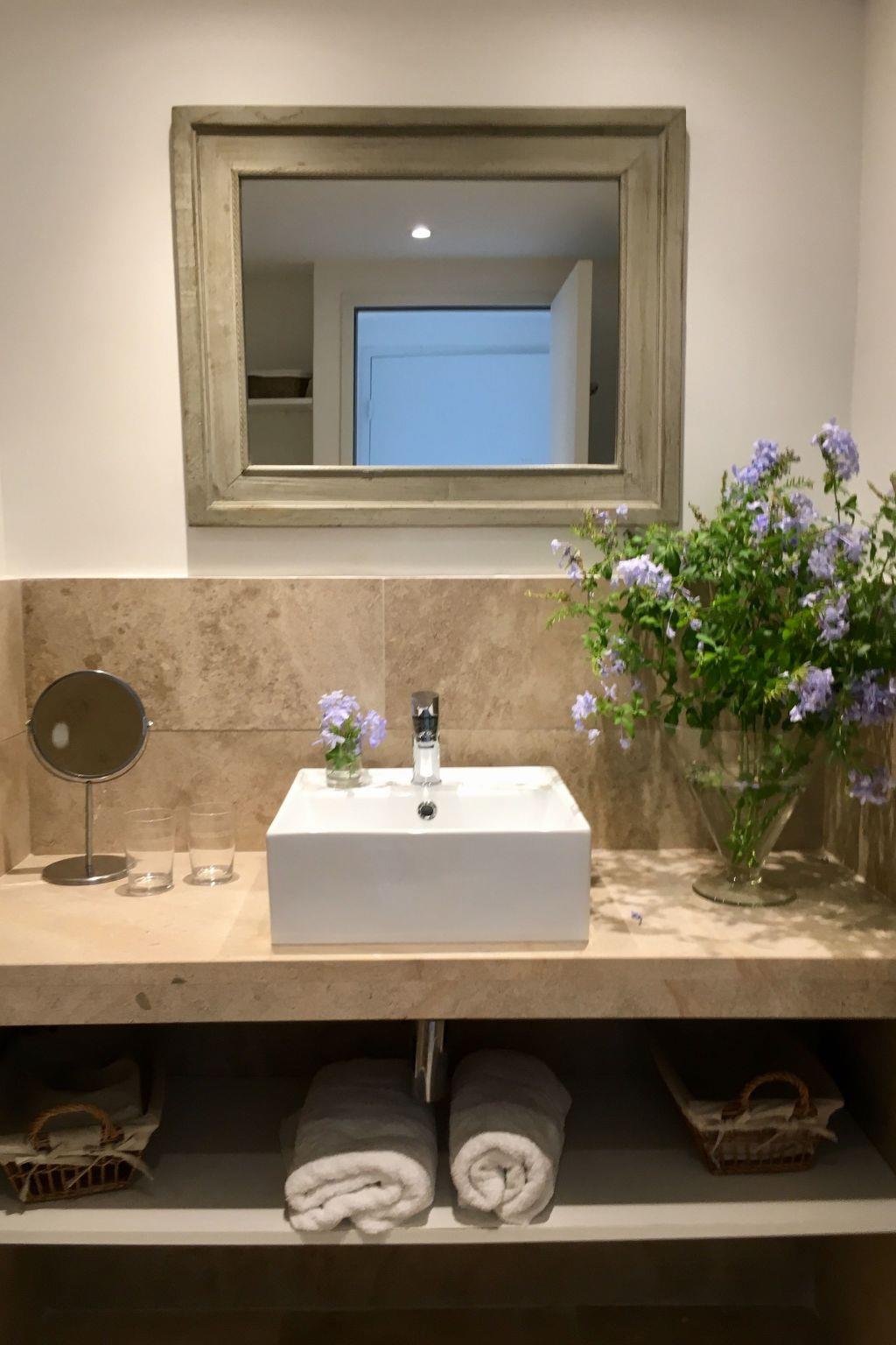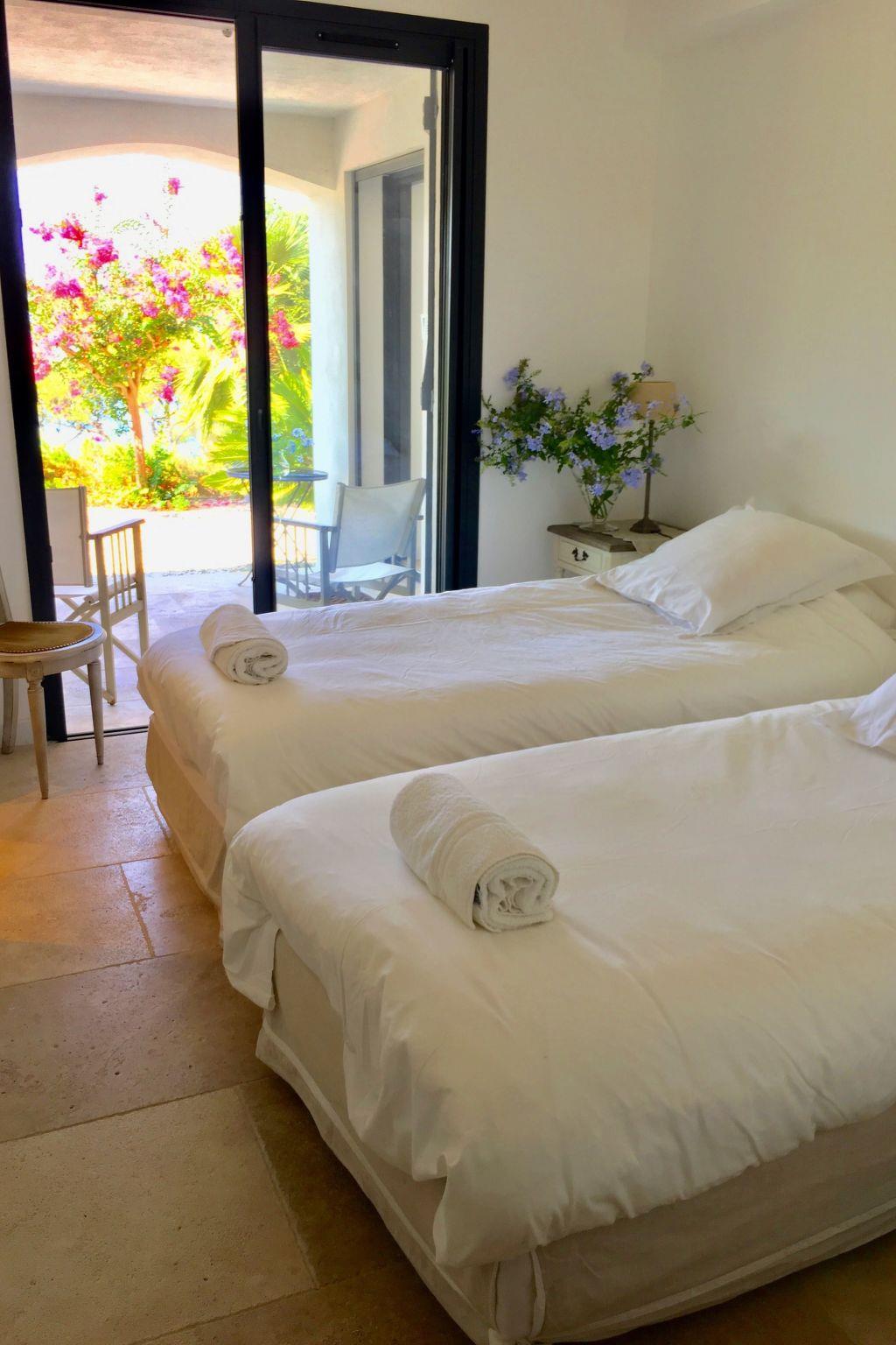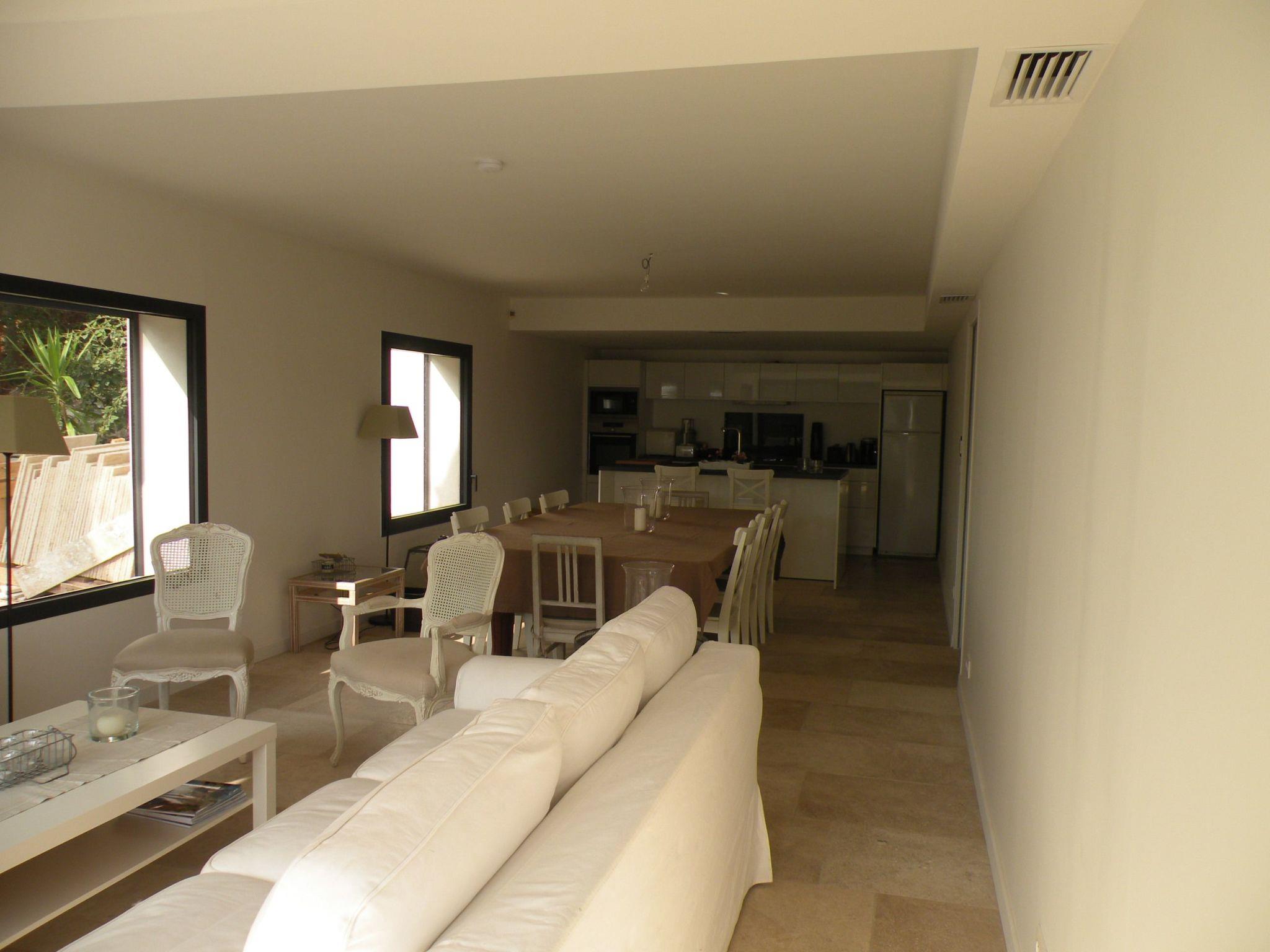 The interior of the villa's ground-floor flat is equipped for maximum comfort. It comprises 3 bedrooms sleeping up to 6 people, 3 bathrooms, 2 separate WCs, and benefits from modern facilities such as roller shutters, flat-screen TV, DVD player and Wi-Fi internet access. Reversible air conditioning with individual programming for each room will add to your comfort whatever the season. The open-plan kitchen is fully equipped with an American-style fridge, dishwasher, extractor hood, electric oven and microwave, providing everything you need to prepare your meals just like at home.