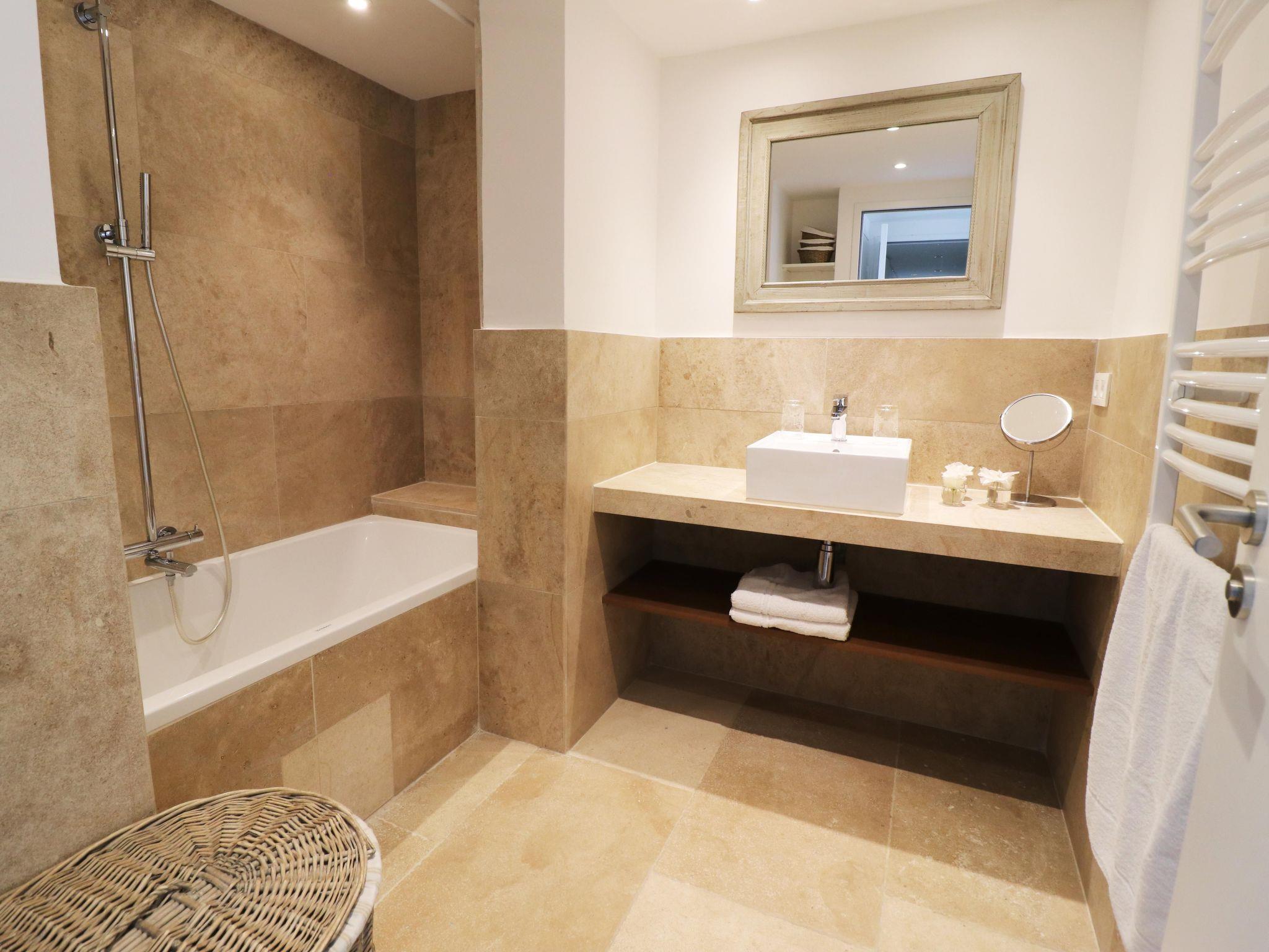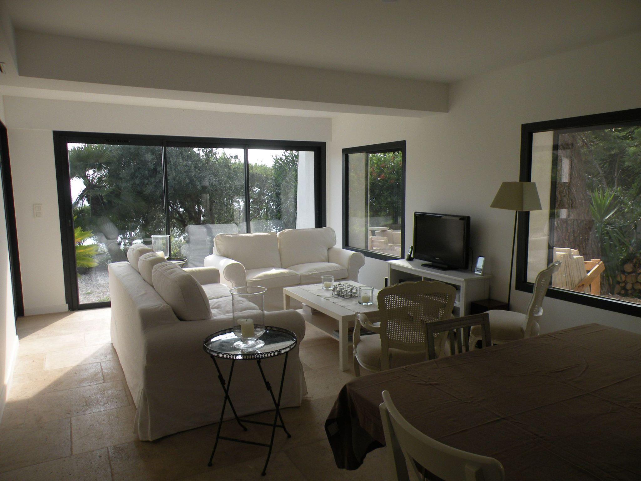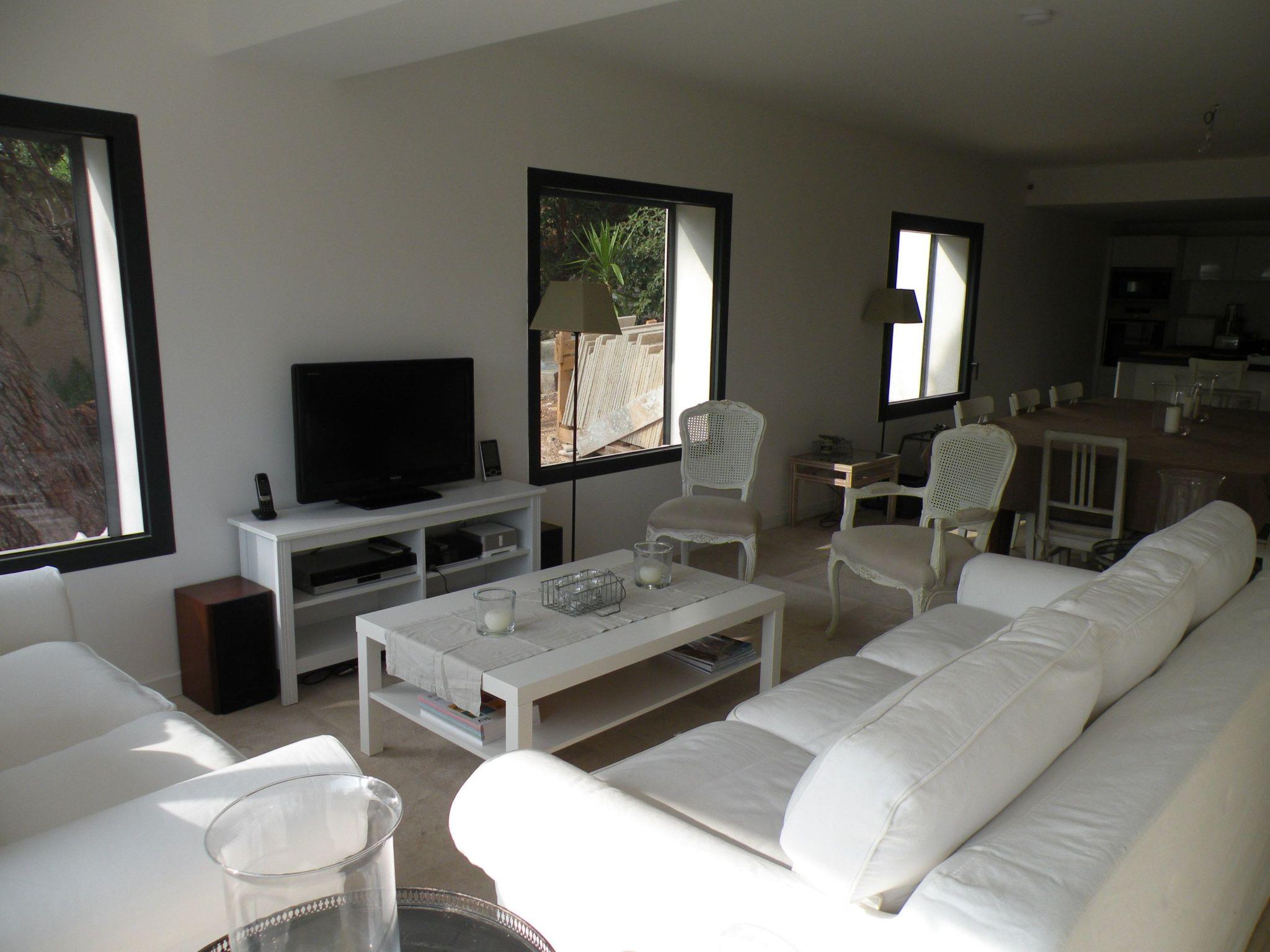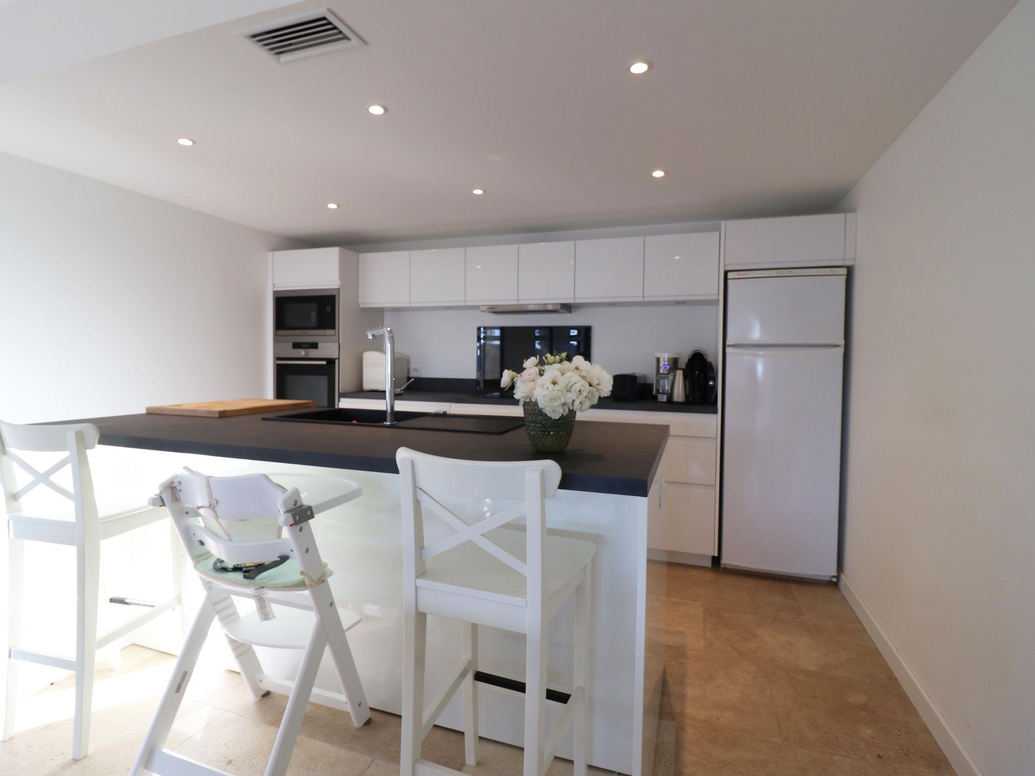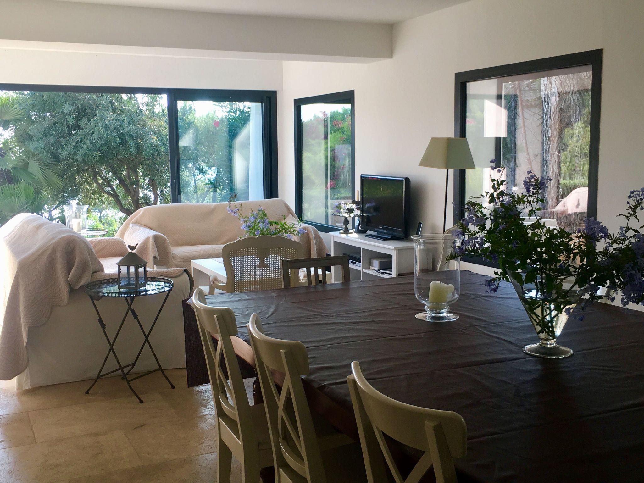 The interior of the villa's ground-floor flat is equipped for maximum comfort. It comprises 3 bedrooms sleeping up to 6 people, 3 bathrooms, 2 separate WCs, and benefits from modern facilities such as roller shutters, flat-screen TV, DVD player and Wi-Fi internet access. Reversible air conditioning with individual programming for each room will add to your comfort whatever the season. The open-plan kitchen is fully equipped with an American-style fridge, dishwasher, extractor hood, electric oven and microwave, providing everything you need to prepare your meals just like at home.