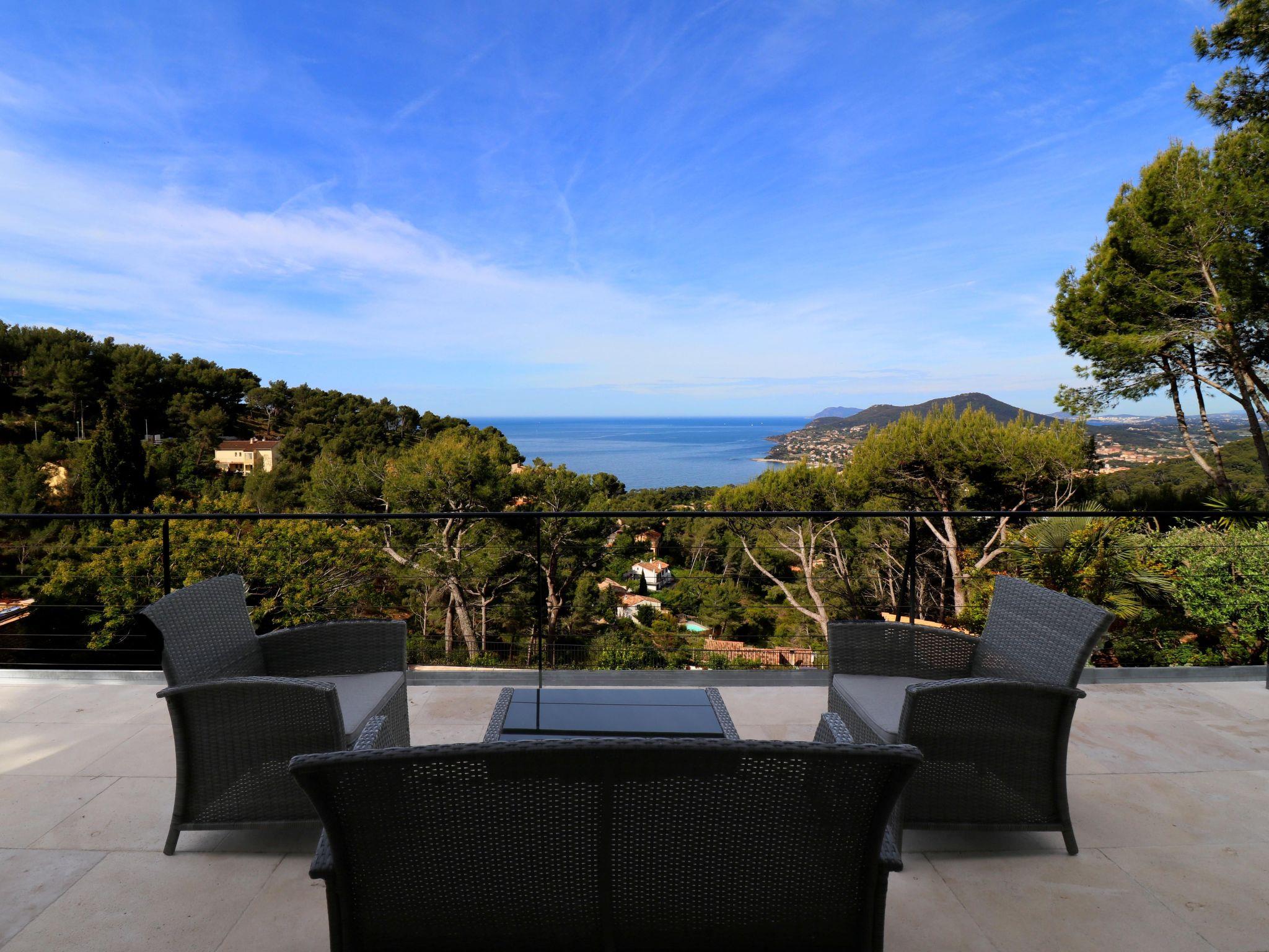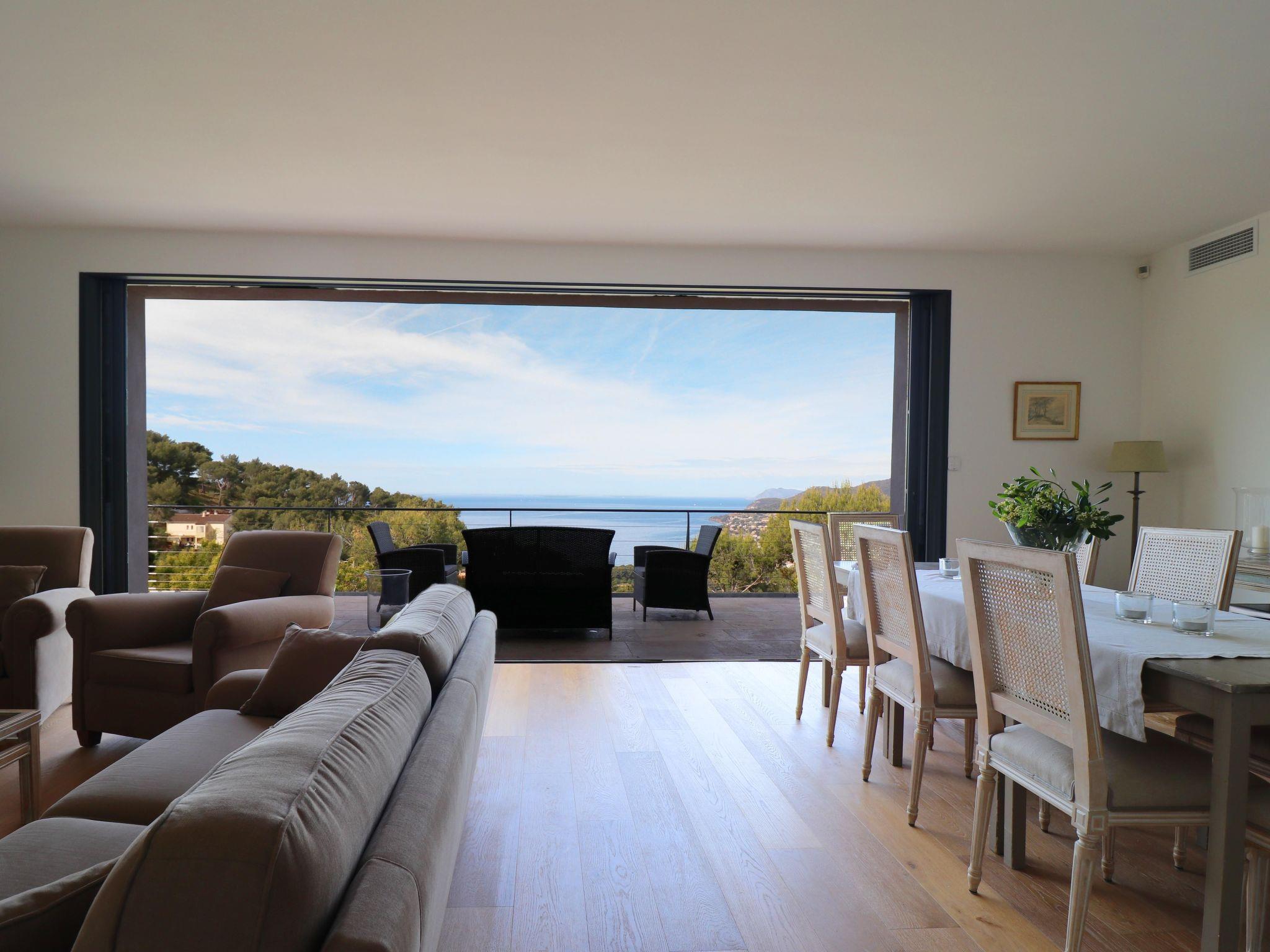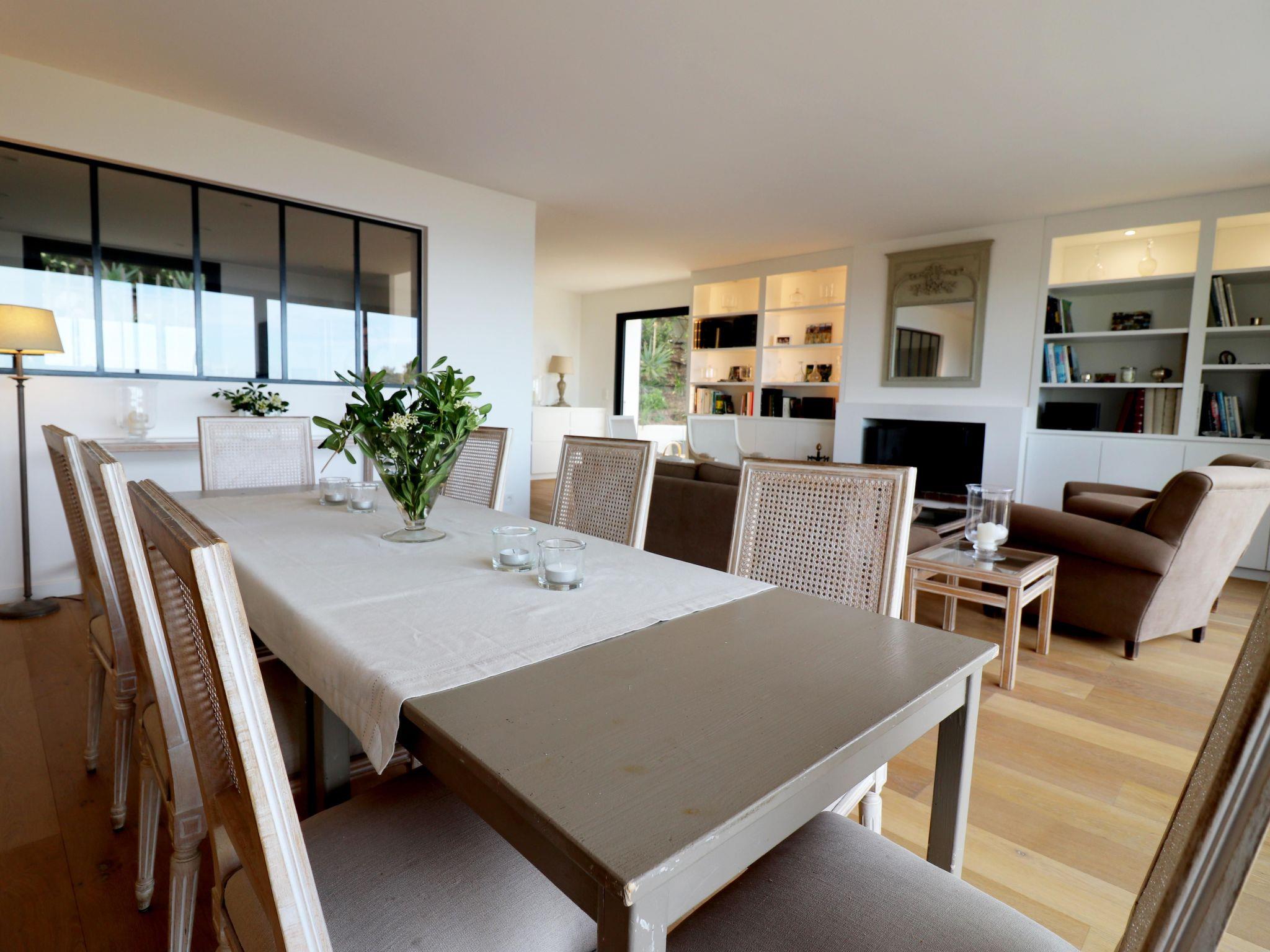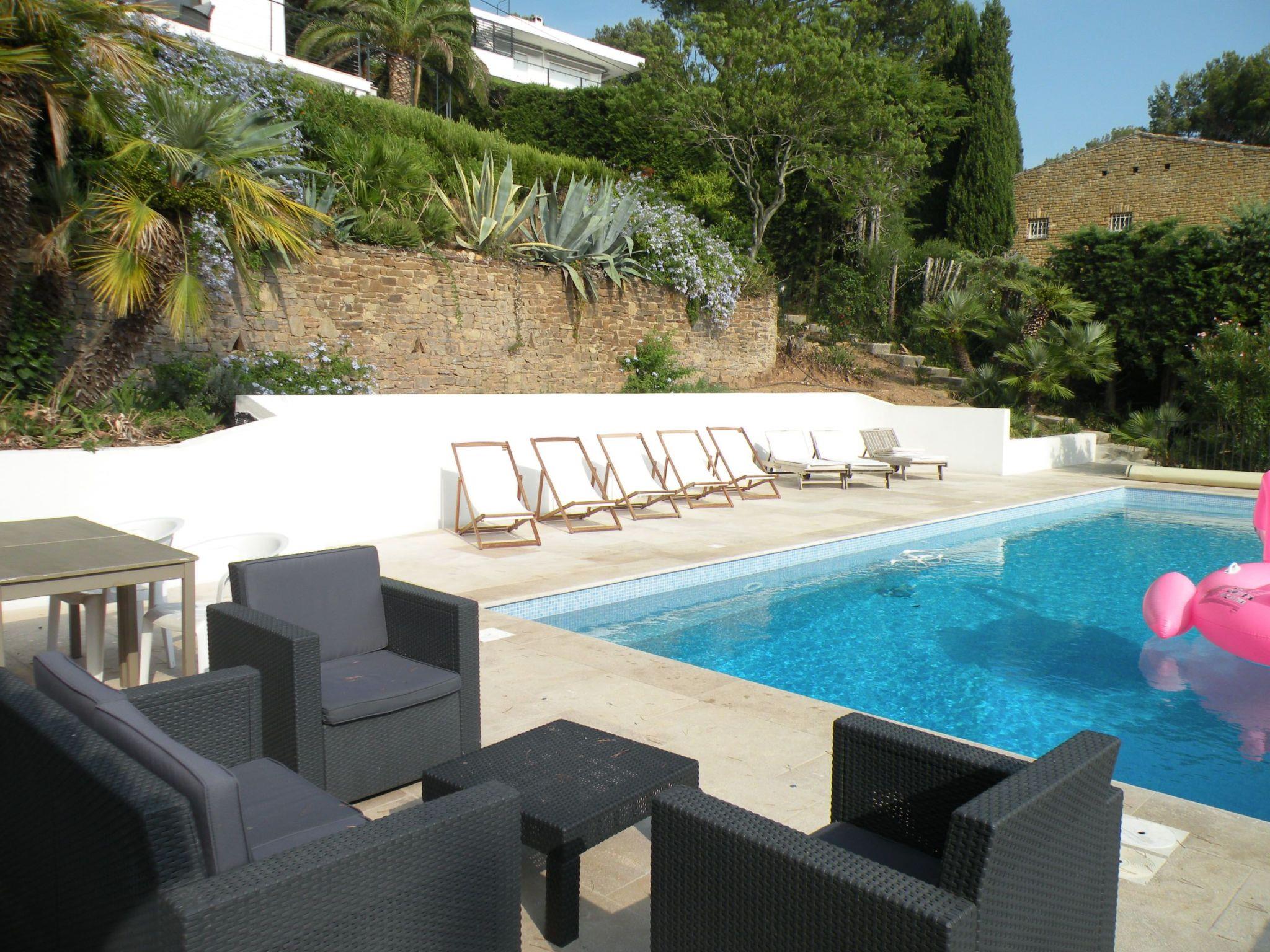 Outside, the villa offers a magnificent 60 m² heated swimming pool, surrounded by a fenced area with deckchairs for relaxing in the sun, as well as a pool house equipped with a kitchen, including plancha, fridge, sink and dishwasher. There's also an outdoor terrace with a teak dining area for 6 to 10 people, where you can enjoy meals with family or friends in front of an exceptional panorama. And don't forget the petanque court for some leisure time in the heart of the 1,700 m² garden.
