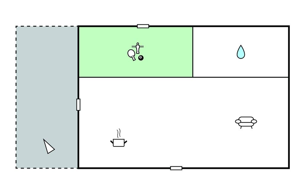 Spisestue 26m2 - 2 Sovepladser. (Sofa, madras eller lignende).