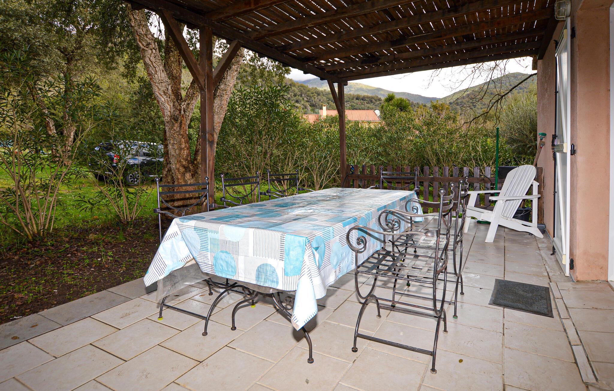 Tilbring en ubekymret pause i dette roligt beliggende hus på Korsika, kun få minutters kørsel fra Bastia Lufthavn. Det dobbelthus tilbyder masser af privatliv og er ideelt for par eller små familier. Slap af i den enkelt designede opholdsstue med praktiske møbler, en komfortabel sofa og et tv. Tilbered dagens måltider i det åbne køkken med den store arbejdsplads. Nyd udsigten over de grønne områder gennem vinduerne, eller brug den lyse spiseplads til fælles morgenmad.
