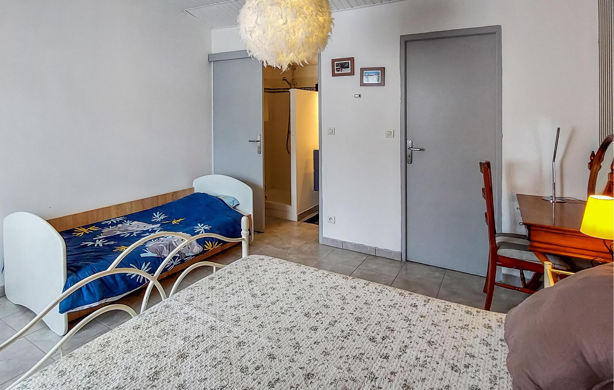 Dette hyggelige feriehus lægger op til en varieret ferie for parret eller den lille familie tæt ved den rolige badesø Lac de Clarens. Nyd afslappede måltider, planlæg jeres aktiviteter ved det indbydende spisebord, og slap af i den åbne stue efter en aktiv dag udendørs.