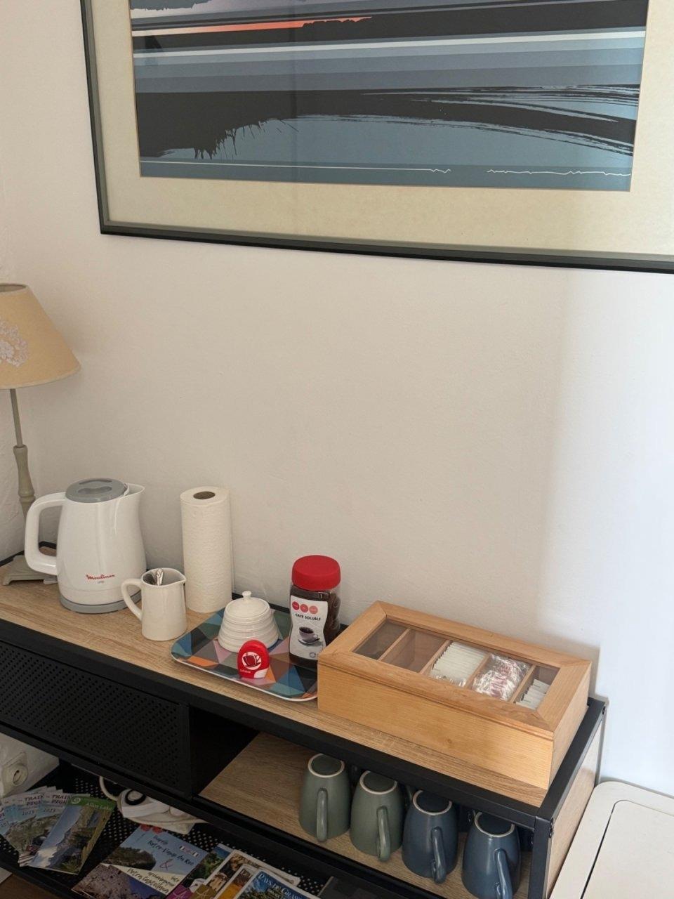 Wir servieren ein reichhaltiges Frühstück. Sie können zwischen verschiedenen 4 bis 6 Aufstrichen wählen;Jambon bouilli, Käse, Cerealien, Joghurt, frisches Obst. Es gibt Kaffee, Tee, Milch und Orangensaft, französisches Baguette, und Croissant