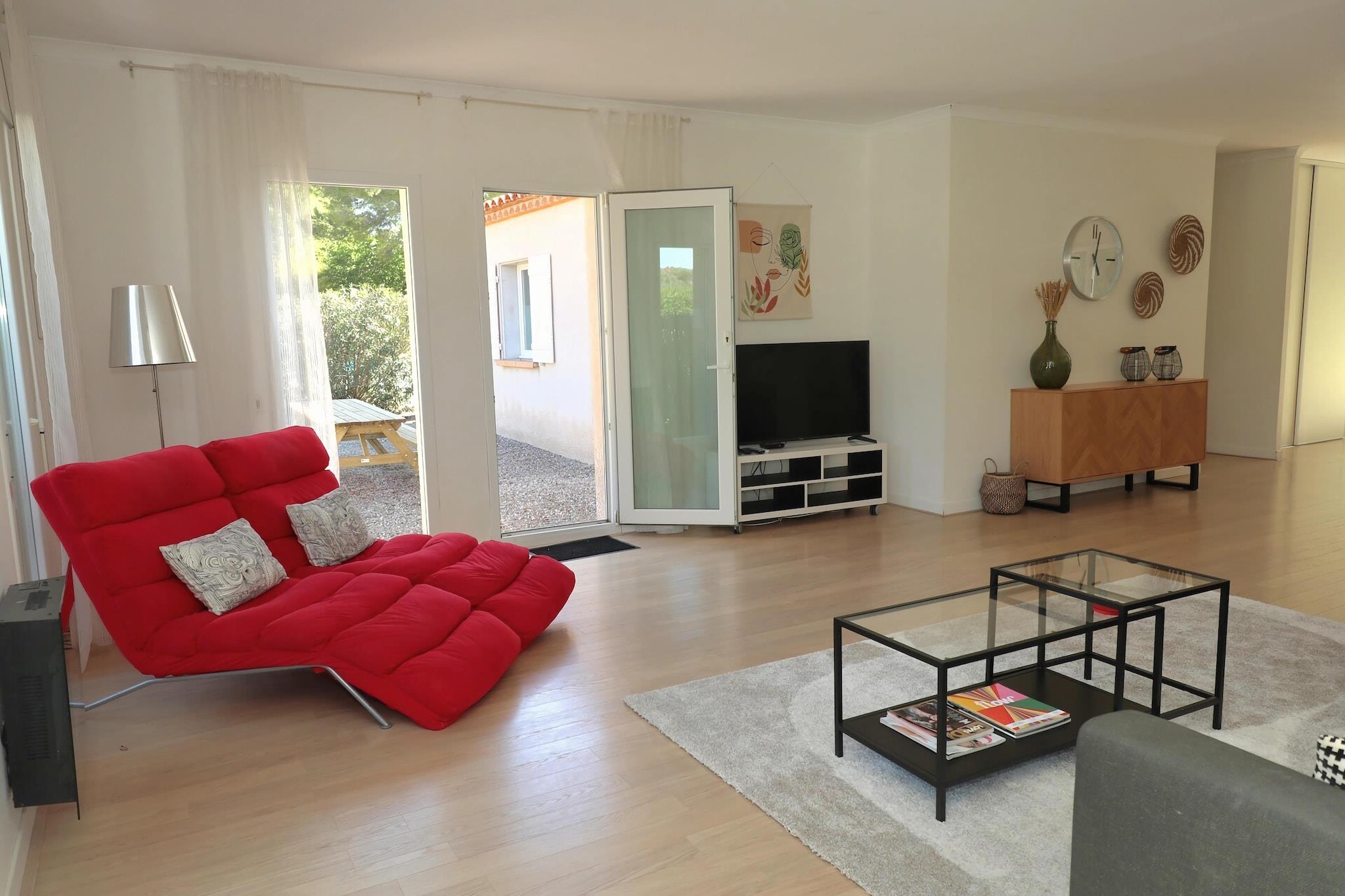 Denne luksuriøse, moderne villa er perfekt til familier med børn eller en gruppe venner. Den rummelige bolig har Wi-Fi, smart-tv og en dejlig sydvendt have med pool, trampolin og legeredskaber. Castelnau d'Aude producerer lækre vine, og en gåtur gennem vinmarkerne kan absolut anbefales. 3 km væk ligger landsbyen La Redorte, hvor du finder et supermarked og et lækkert bageri. Kun 10 minutters kørsel væk ligger Canal du Midi og rekreationssøen Lac de Jouarres. Den middelalderlige landsby Minerve og slottet La Cité i Carcassonne er også et besøg værd, ligesom nærliggende landsbyer som Assignan, Collioure og Lagrasse. Derudover findes der adskillige vandrestier og cykelruter i regionen. Den rummelige villa med komfortable soveværelser tilbyder masser af privatliv. Den er fuldt indhegnet og derfor ideel til ferier med hunden. I haven er der et dejligt studie til 2 personer, som har aircondition, eget tekøkken, badeværelse og sovesofa. Omkring den opvarmede swimmingpool er der dejlige solterrasser med grill, liggestole og et loungesæt. Har du en elbil? Intet problem, der er en privat ladestation til rådighed. Carcassonne lufthavn ligger 39 km væk.
