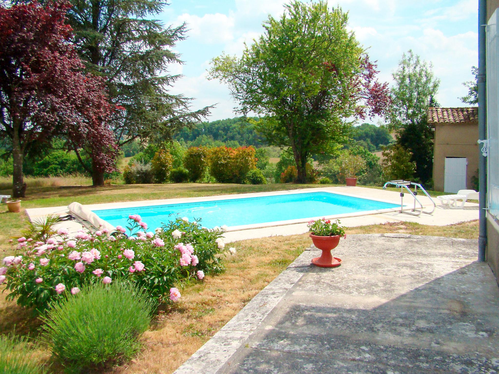 Cosy country house "La Gaubide". In a hamlet 4.5 km from the centre of Castillonnès, 26 km from the centre of Bergerac, 35 km from the centre of Villeneuve-sur-Lot, 10 km from the lake, 5 km from the river. For shared use: natural state property 4 ha. Private: property 2'500 m2, trees, meadow, swimming pool (8 x 4 m, depth 106 - 180 cm, seasonal availability: 25.Apr. - 03.Oct.) with shutter cover. Terrace. In the house: table football. Parking at the house on the premises. Shop 5 km, supermarket 7 km, bus stop "Plaisance" 3.5 km, bathing lake "Lougratte" 10 km. Golf course (18 hole) 20 km, tennis 5 km, riding stable 5 km, fishing possibilities 3 km. Nearby attractions: Villeneuve-sur-Lot 30 km.