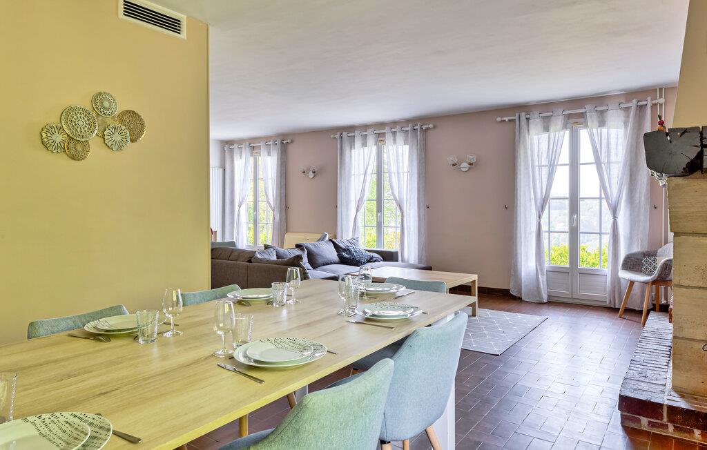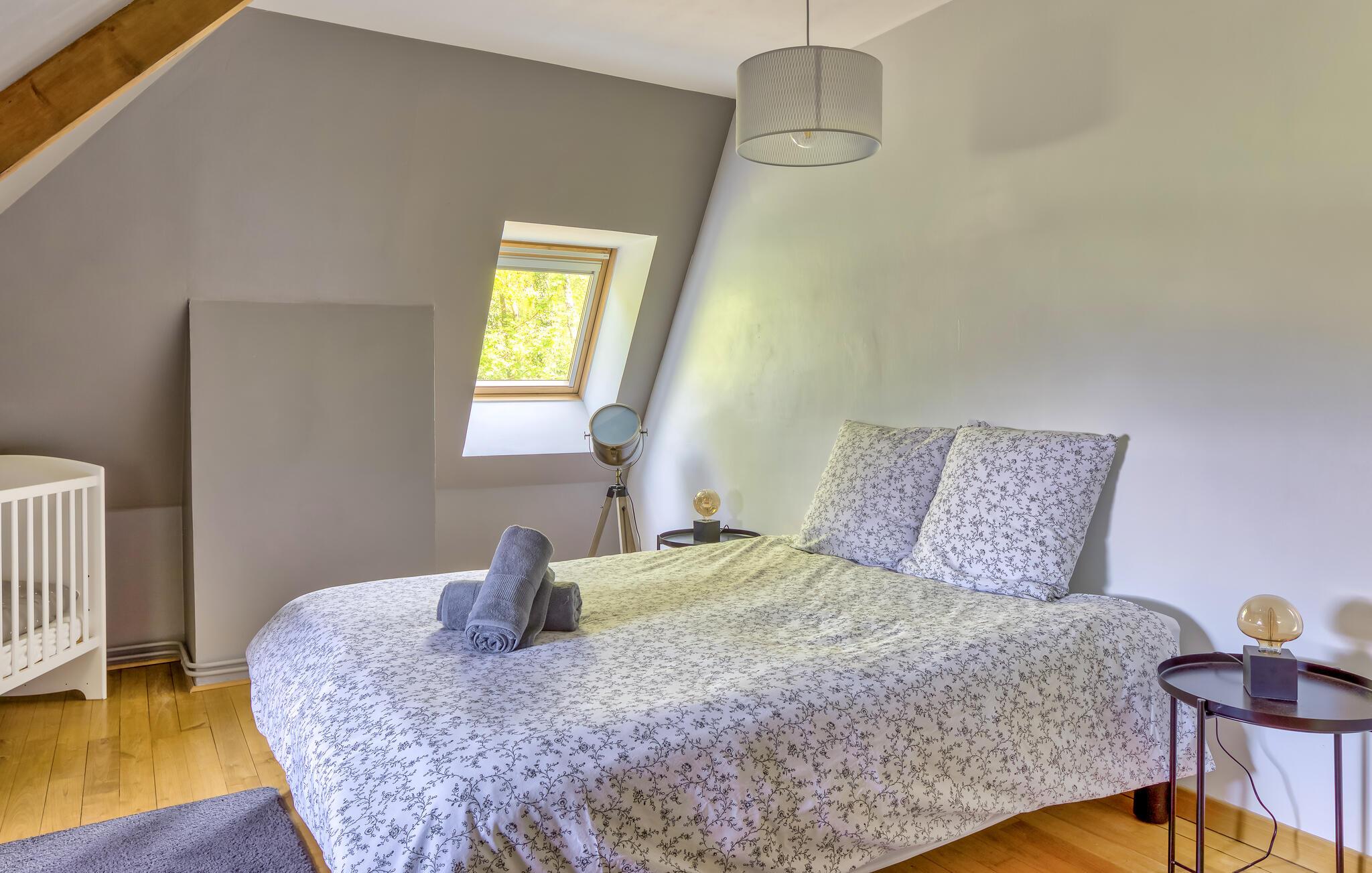 Velkommen til dette rummelige hjem, hvor I kan tilbringe afslappende dage med venner eller familie i hjertet af Normandiets landskab. Glæd jer til hyggelige stunder i den hyggelige spisestue og stemningsfulde aftener ved brændeovnen. Spil bordfodbold, nyd den fredelige atmosfære med en god bog, og planlæg jeres aktiviteter med et glas vin i den behagelige sofa.
