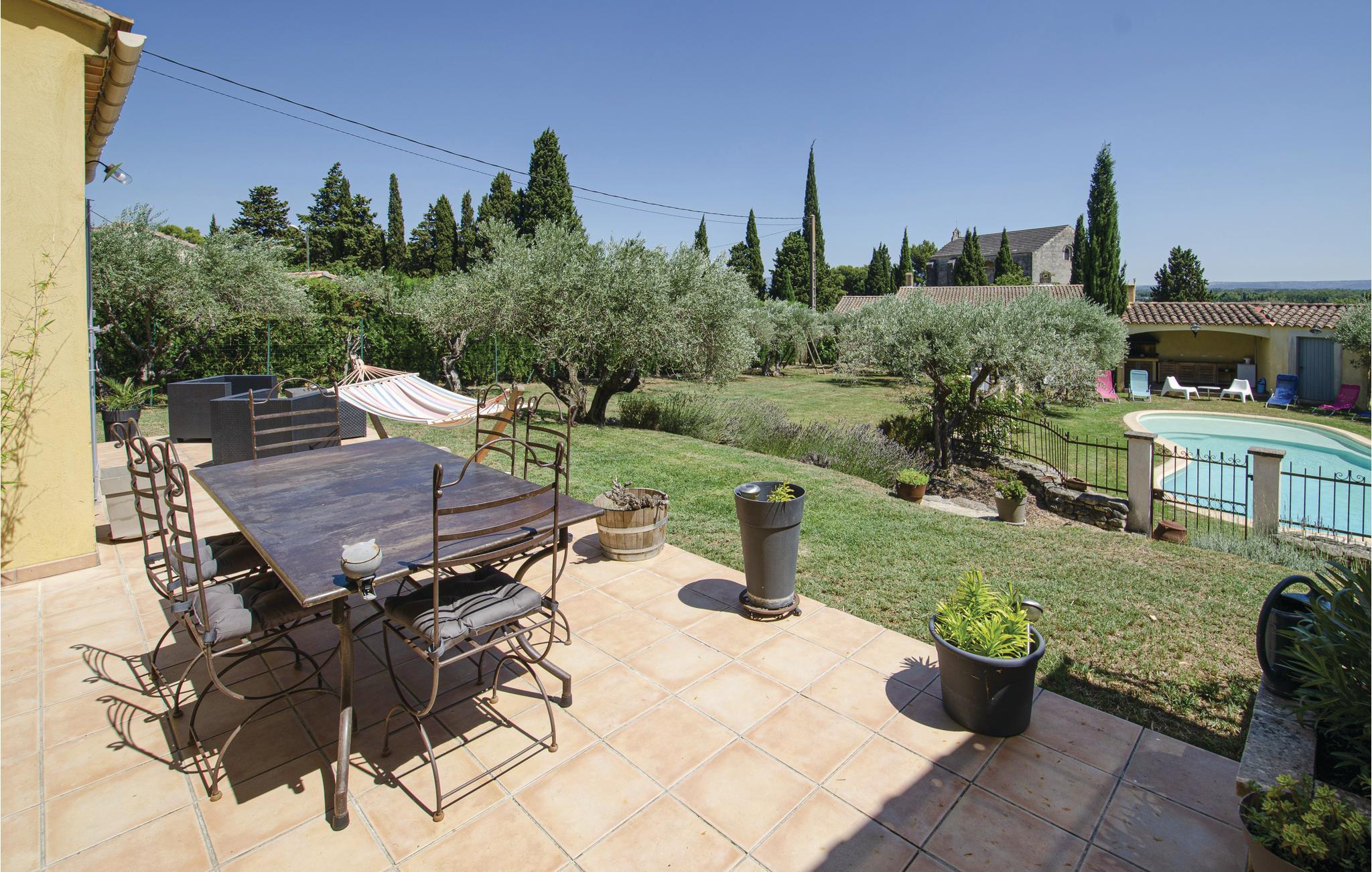 Glæd jer til en ferie i afslapningens tegn! Dette smukke feriehus med pool og plads til op til otte personer ligger ved landsbyen Caumont i Vaucluse. På den lukkede havegrund med oliventræer kan I hygge jer på den solrige terrasse med swimmingpool og integreret spa. I kan også spille bordtennis eller slappe af i hængekøjen. Efter en lang dag kan I lave med på grillen ved poolhuset. Husets indretning er indbydende og hyggelig, og gennem det moderne køkken kan I gå videre ud på terrassen og nyde udsigten over Luberon. I Caumont-sur-Durance kan I vandre på den markerede sti med panoramaudsigt over Mont Ventoux og Alpillerne. Snyd ikke jer selv for at opleve Avignon, Île de la Barthelasse, klippeformationen Rocher des Doms og L'Isle-sur-la-Sorgue. Denne charmerende by er hjemsted for det typiske provencalske marked samt flotte antikviteter og pyntegenstande.