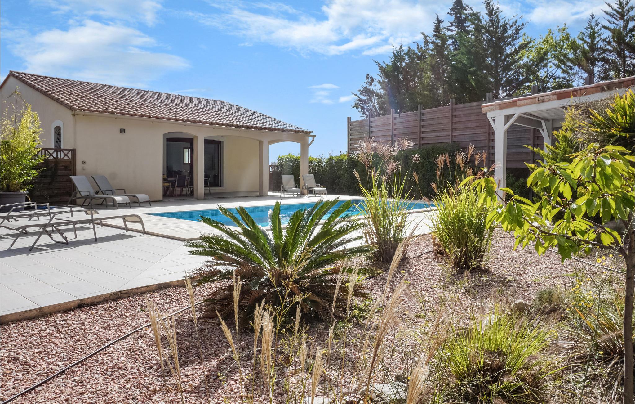 Dette skønne feriehus har som noget specielt sin egen private pool og ligger i Caunes-Minervois, i Departement Aude, 21 km fra den skønne by Carcassonne. Der er klimaanlæg i hele huset og den ugenerte pool kan opvarmes mod betalig og så benyttes både for- og eftersommer. Den er forsynet med automatisk overdækning. Villaen er moderne og meget lys og rummer tre soveværelser, alle med eget badeværelse. Fra altanen på første sal er der en skøn udsigt over Minervois landskaber. Huset ligger på en bjergside i de Sorte Bjerge smyger sig smukt ind i landskabet, hvor der er en høj grad af privatsfære. Caunes-Minervois er en skøn middelalderby, der kun ligger få skridt fra huset med mange butikker, cafeer og en legeplads.