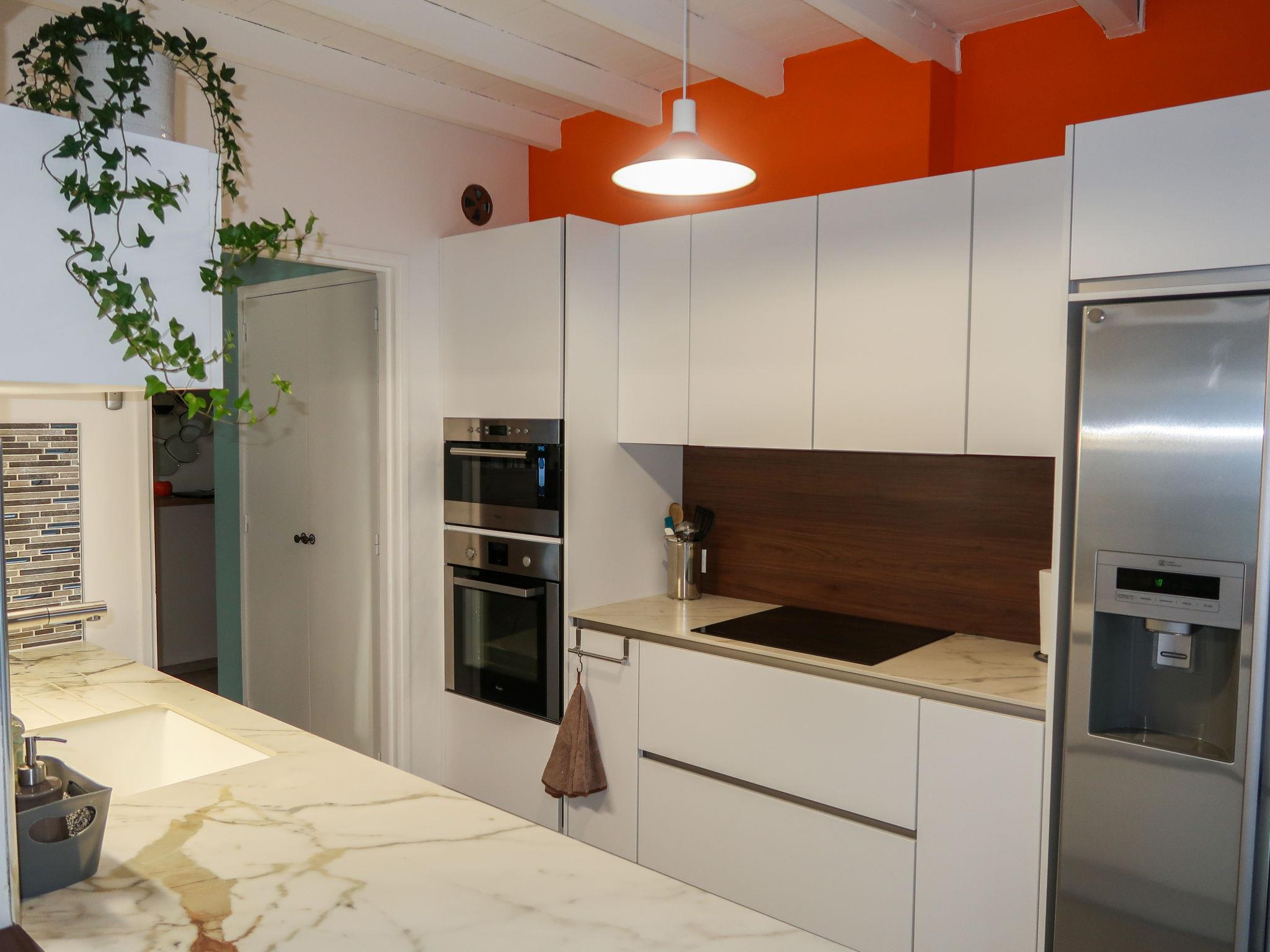 "Luberon Vidauque", 4-room house 135 m2. Renovated in 2012, modern and tasteful furnishings: living/dining room with open-hearth fireplace (only for decoration), dining table and TV. Exit to the terrace. 1 room with 1 french bed (160 cm, length 200 cm), shower/WC and TV. 1 room with 1 french bed (160 cm, length 200 cm), TV. 1 room with 1 french bed (160 cm, length 200 cm), TV. Exit to the terrace. Billiard room. Open kitchen (oven, dishwasher, 4 induction hot plates, toaster, kettle, microwave, freezer, electric coffee machine). Exit to the terrace. Bathroom, sep. WC, double hand-basin. Electric heating, air-conditioning. Terrace partly roofed, south facing position terrace roofed, east facing position. Terrace furniture, barbecue, deck chairs (6). Facilities: washing machine, iron. Internet (WiFi, free). Maximum 1 pet/ dog allowed.