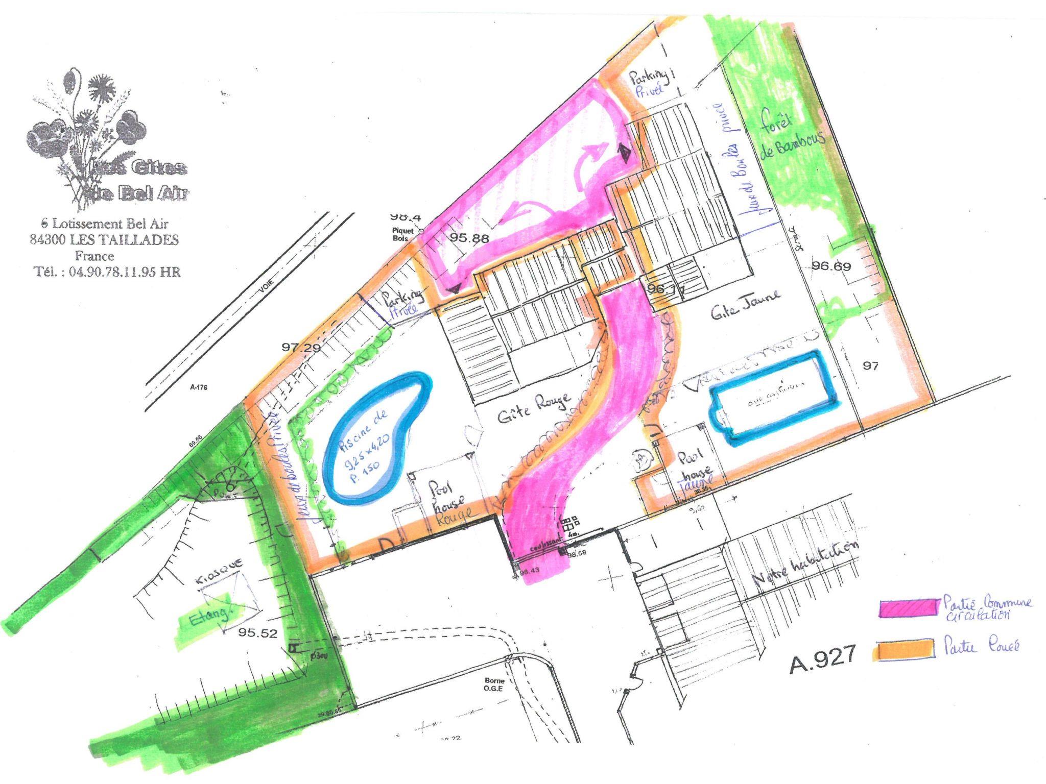 4500 M² estate consisting of 3 Villas with 3 double-secured private swimming pools and an adjoining 600 M² pond shared by the 3 Villas. Our 2 gîtes have been open since 2005 and we have 4-star and 4-clevacances accreditation, with full equipment for both the Red and Yellow gîtes. Les TAILLADES is 2.5 km from CAVAILLON, 12 km from L'Isle sur la Sorgue and 30 km from Apt. Aix is 30 minutes away by motorway, Avignon TGV station is 25 minutes away and Marseille-Provence airport is 40 minutes away. Taillades is in the Parc Régional Naturel du Luberon, on the edge of the cycle route (Euro-vélo Secteur 8) and near the market town of Coustellet, 3 km from exit 25 of the Autoroute du Soleil (A 7).