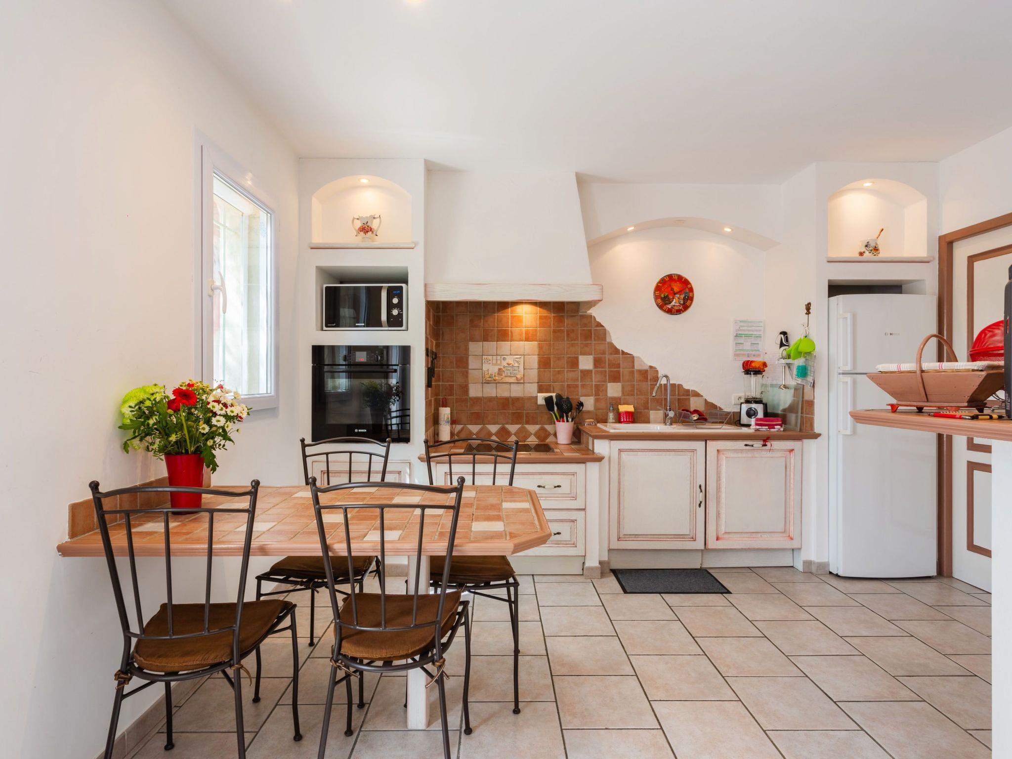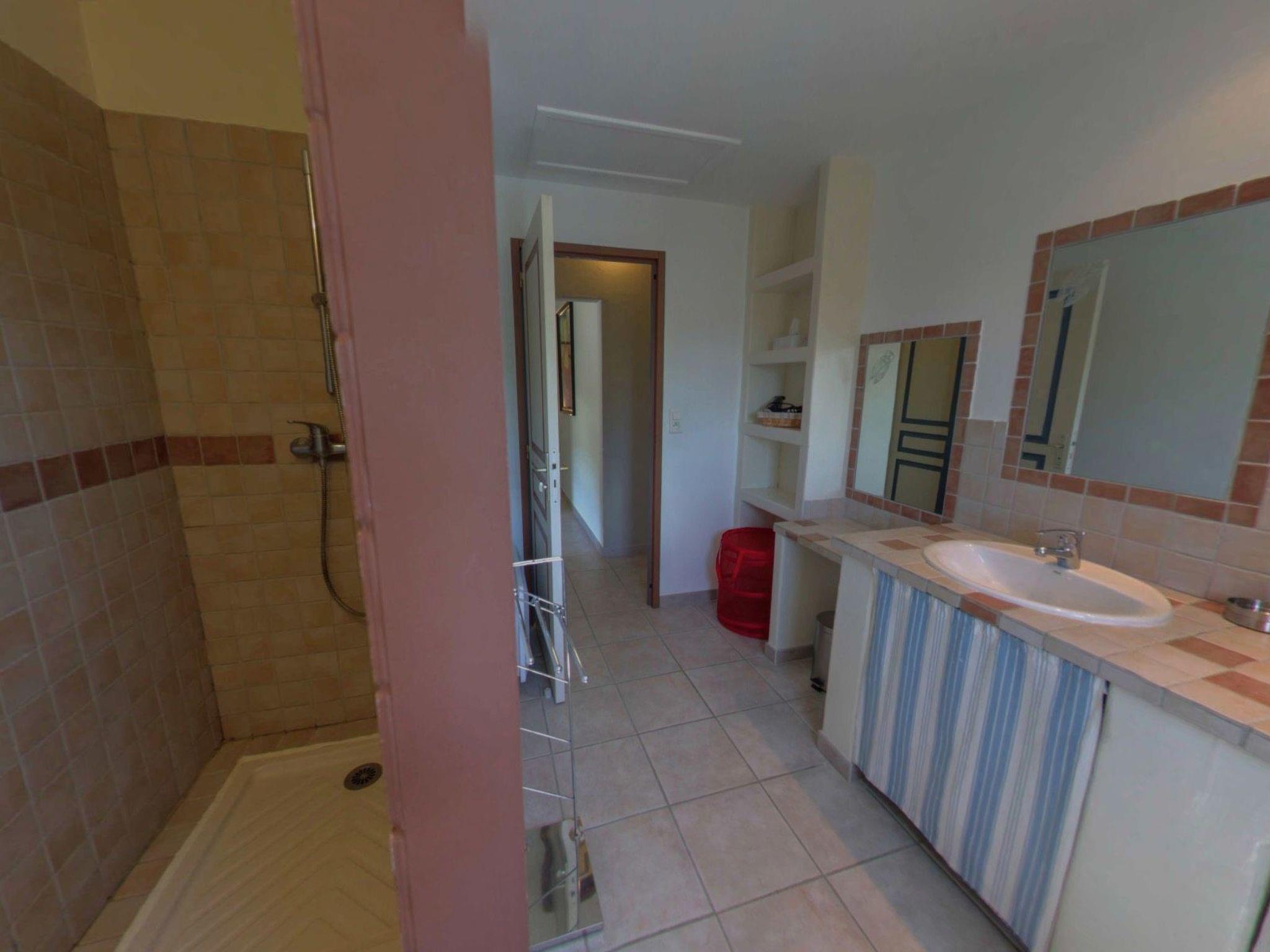 The red gîte is surrounded by greenery. The swimming pool is doubly secured by an alarm and a fence, with standardised access.