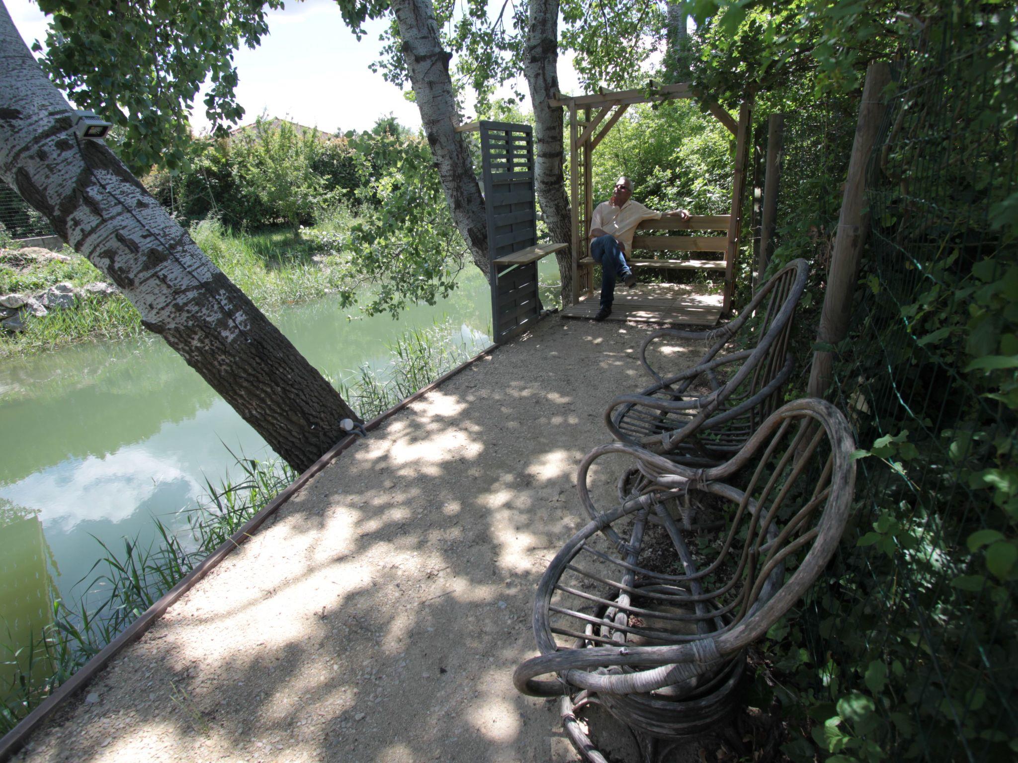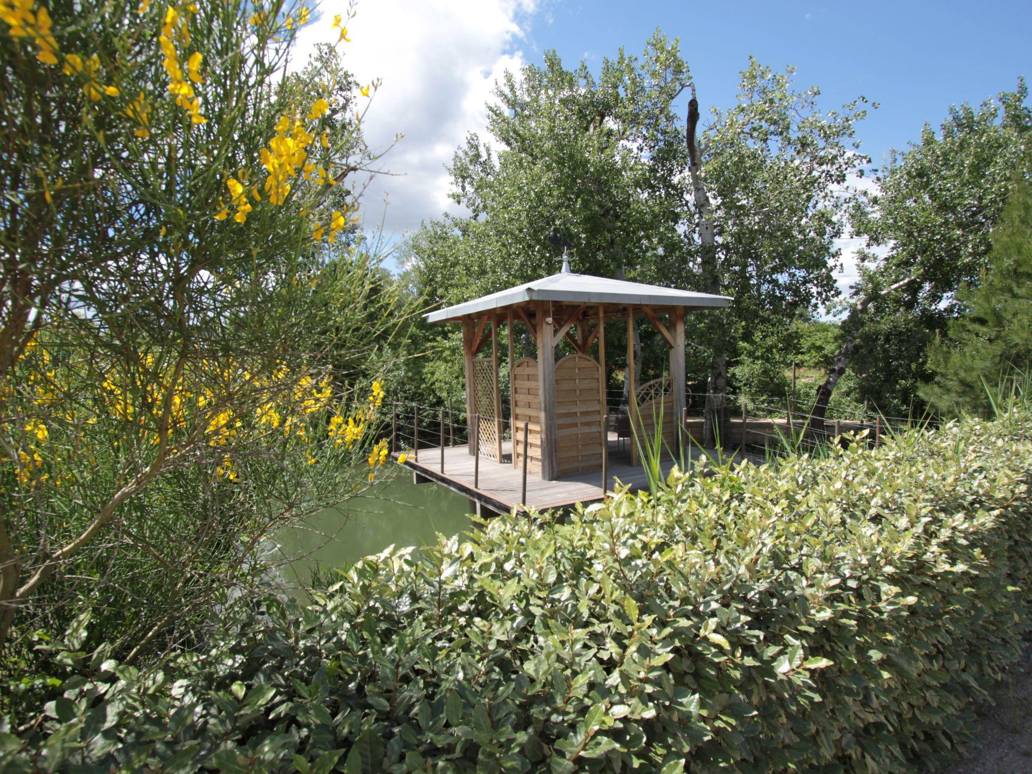 Only the red gîte has direct access to the pond and its wooden kiosk on the water. A small wooden bridge leads to a wooded area where you can take some time out;