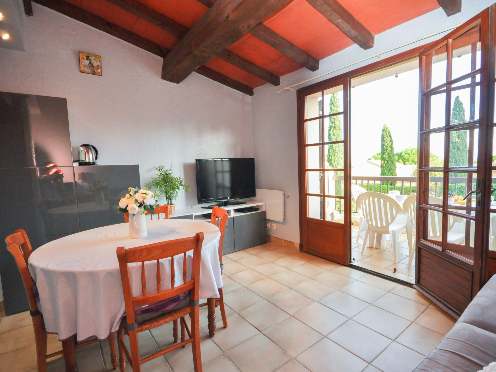 2-room apartment 35 m2 on 2 levels on 1st floor, south facing position. Beautiful furnishings: living/dining room with 1 double sofabed (140 cm, length 190 cm), TV. Exit to the terrace. Kitchenette (mini-oven, dishwasher, 3 induction hot plates, toaster, kettle, microwave, electric coffee machine, Capsules for coffee machine (nespresso) extra). Shower, sep. WC. Upper floor: (spiral staircase), 1 room with sloping ceilings, ceiling height 215 - 175 cm with 1 french bed (160 cm, length 200 cm), electric heating. Terrace 8 m2. Terrace furniture. Partial view of the sea. Facilities: washing machine, hair dryer. Internet (WiFi, free). Parking space n 8. Please note: maximum 1 pet/ dog allowed. Smoke alarm.